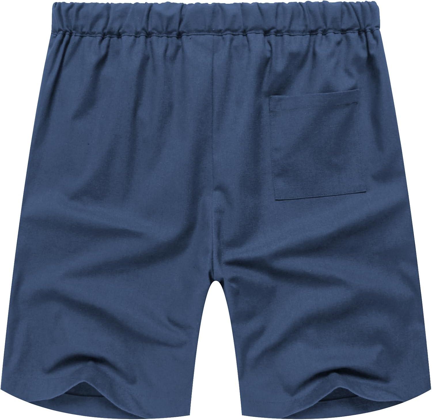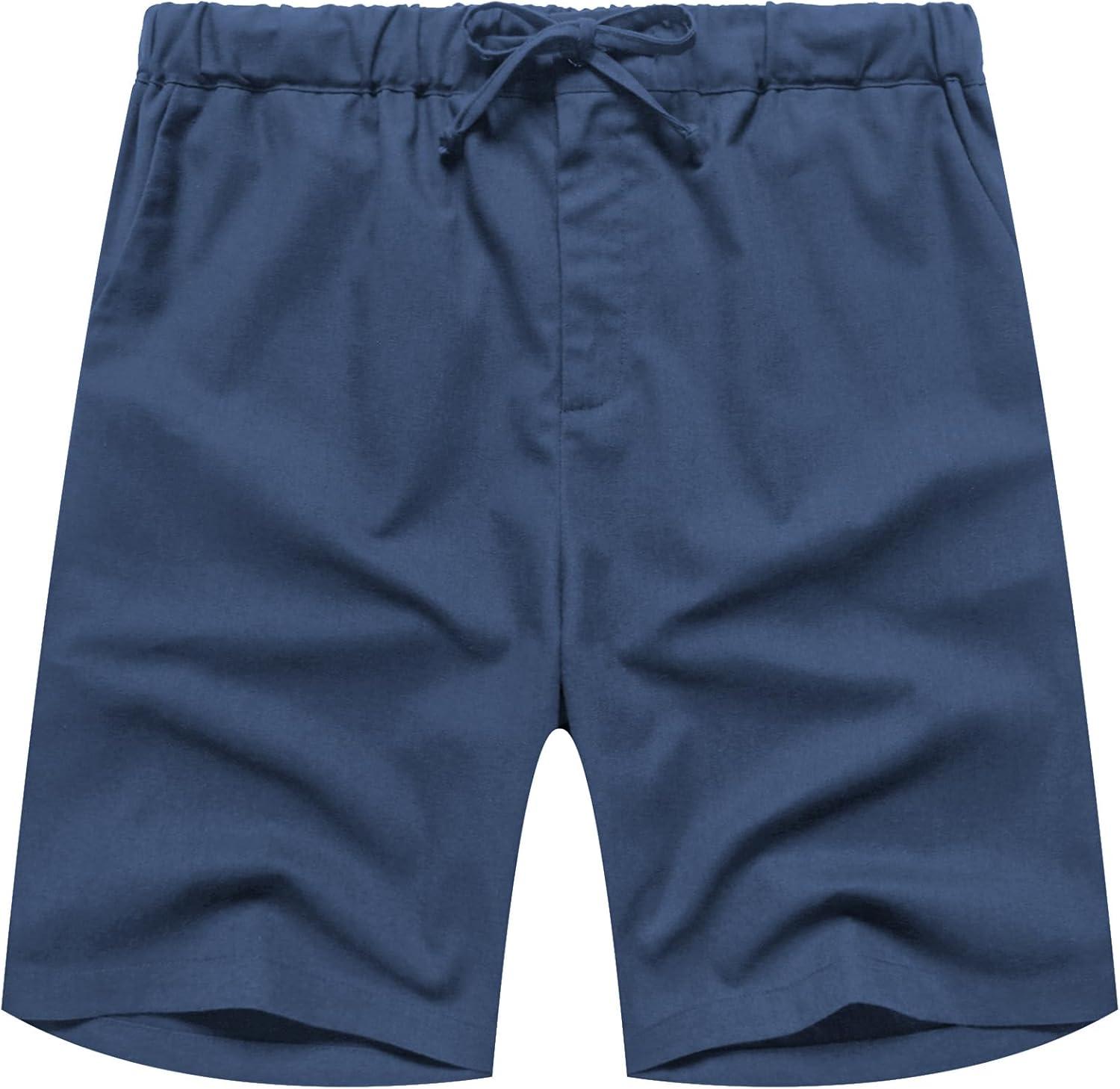 COOFANDY Mens Linen Shorts Elastic Waist Drawstring Casual Summer Beach Shorts(Denim Blue)