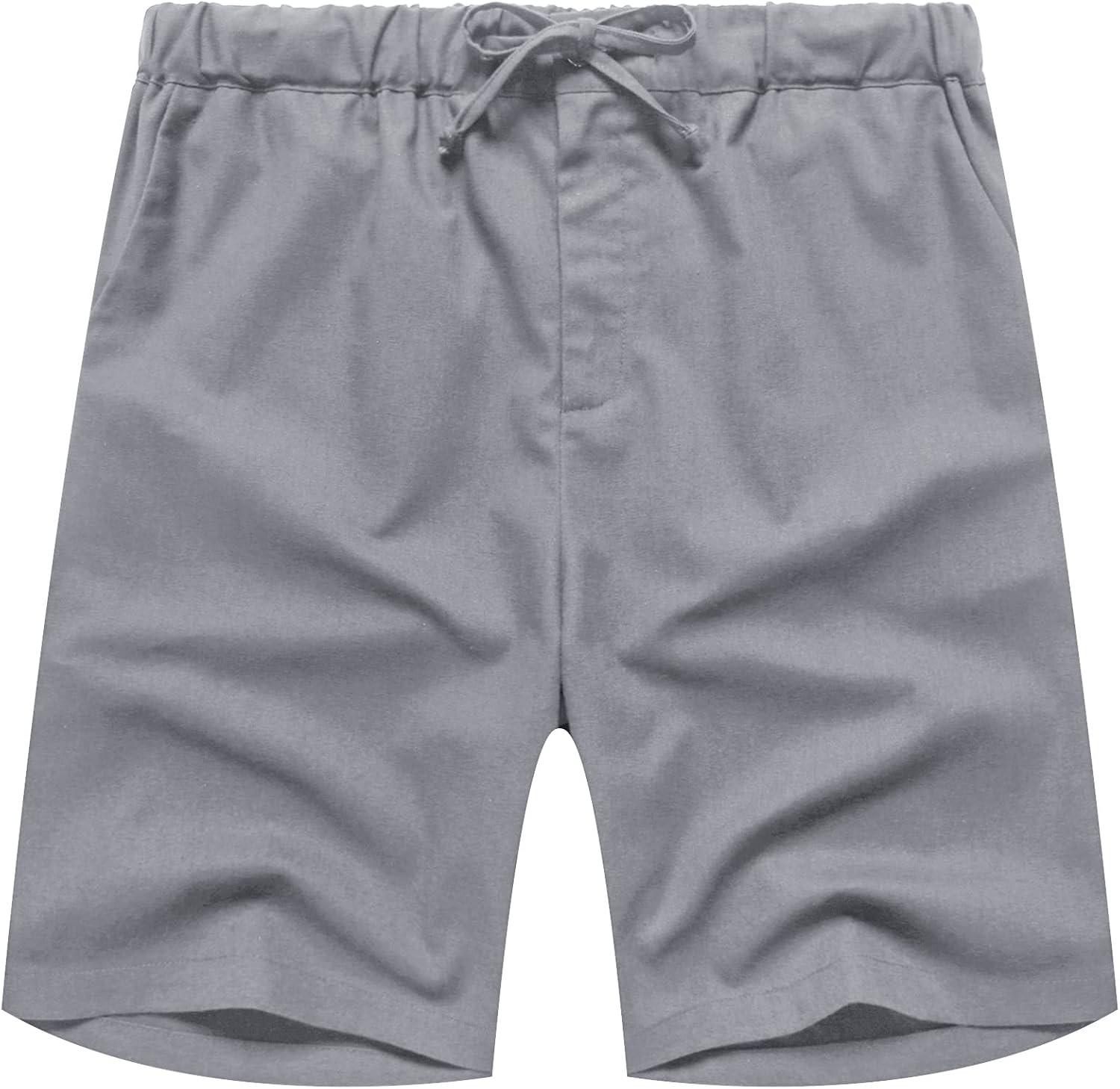 COOFANDY Mens Linen Shorts Elastic Waist Drawstring Casual Summer Beach Shorts(Light Gray)