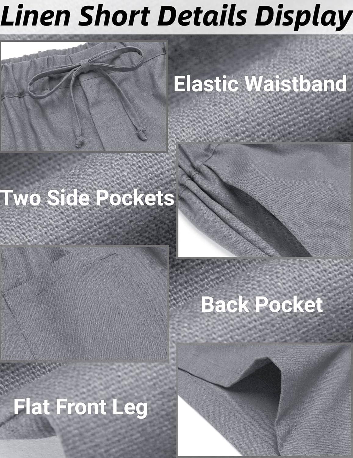 imageCOOFANDY Mens Linen Shorts Elastic Waist Drawstring Casual Summer Beach ShortsLight Gray