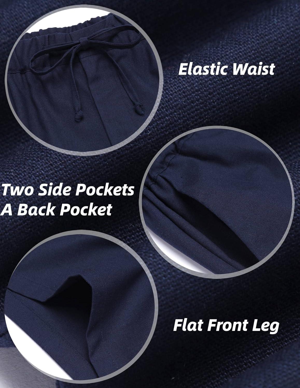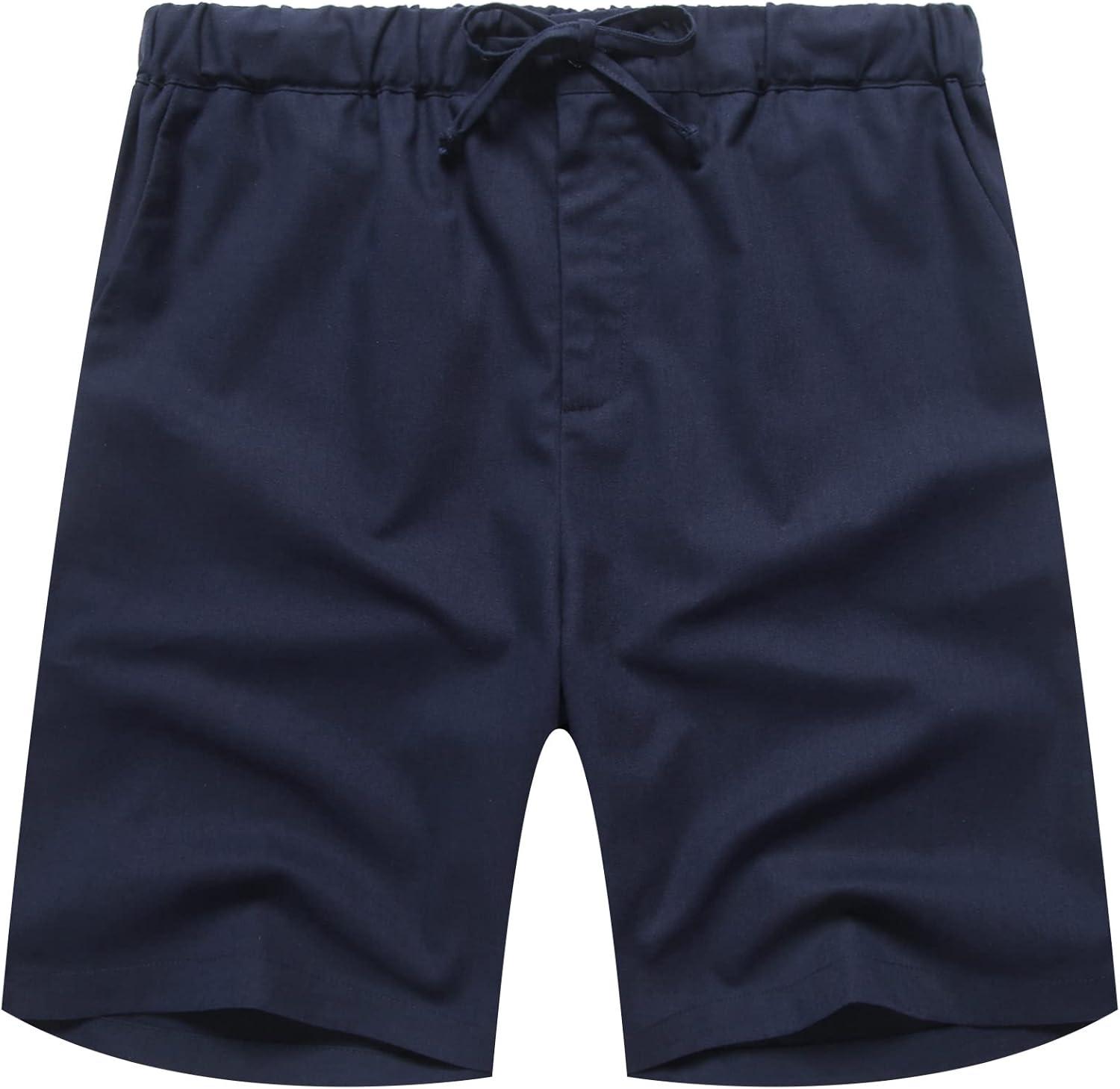 COOFANDY Mens Linen Shorts Elastic Waist Drawstring Casual Summer Beach Shorts(Navy Blue)