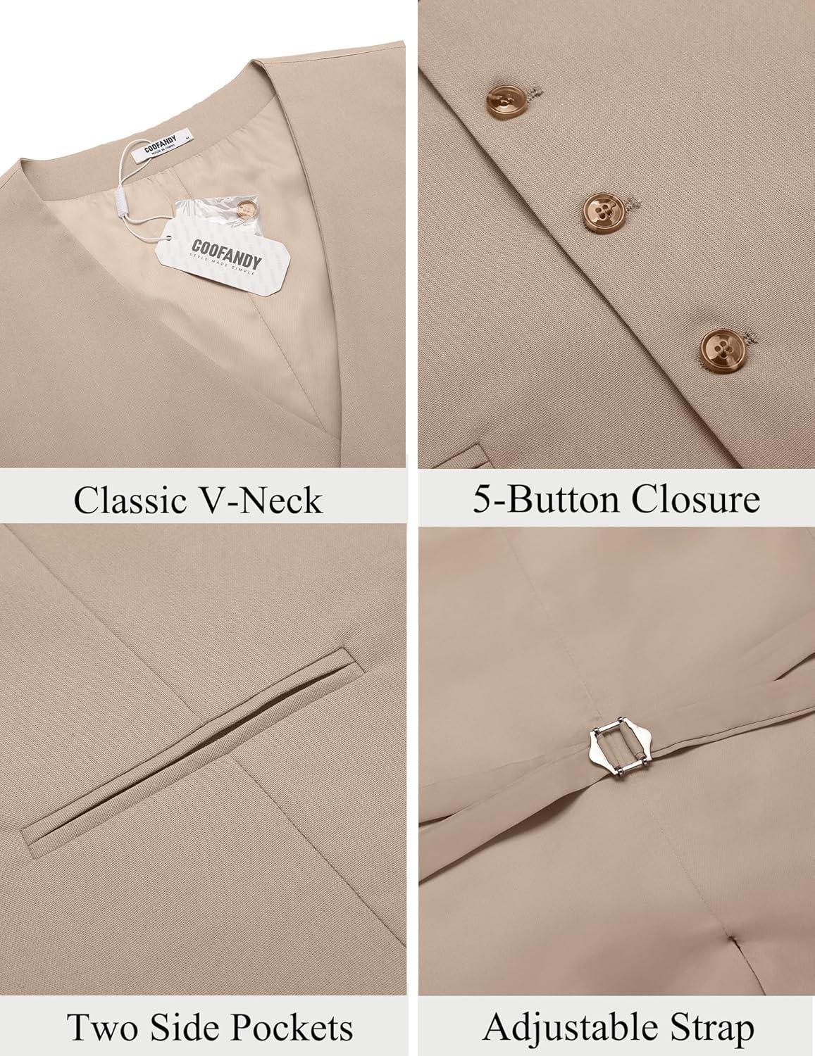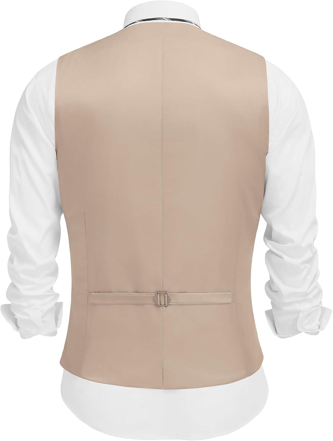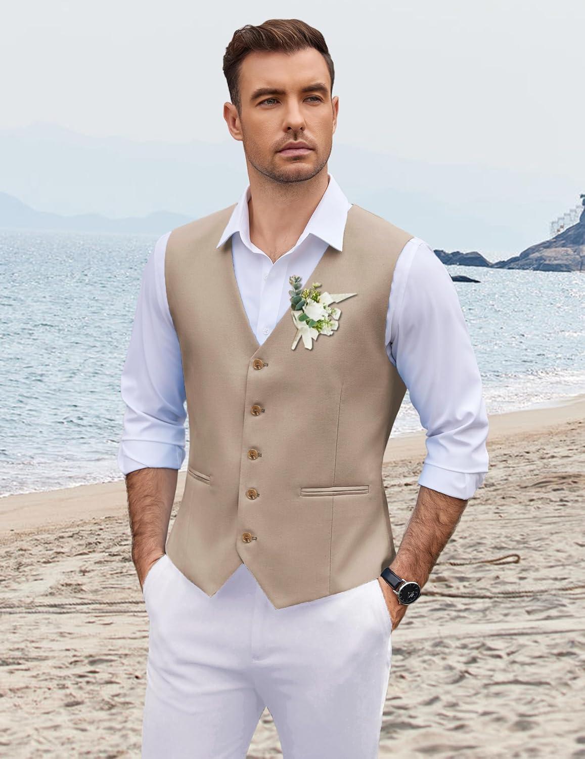 COOFANDY Men’s Linen Vest Casual Linen Slim Fit Suit Vests Dress Waistcoat Wedding Business Prom(Khaki)