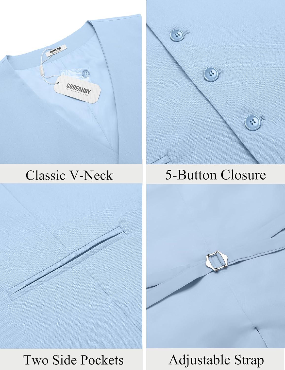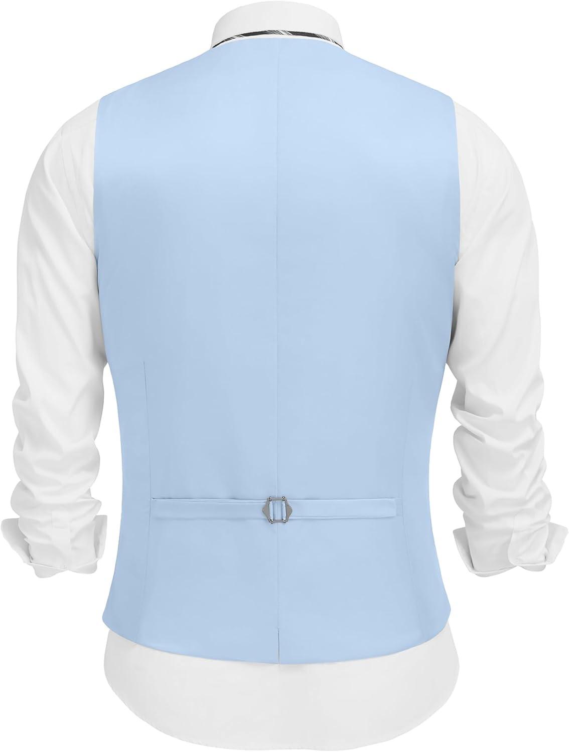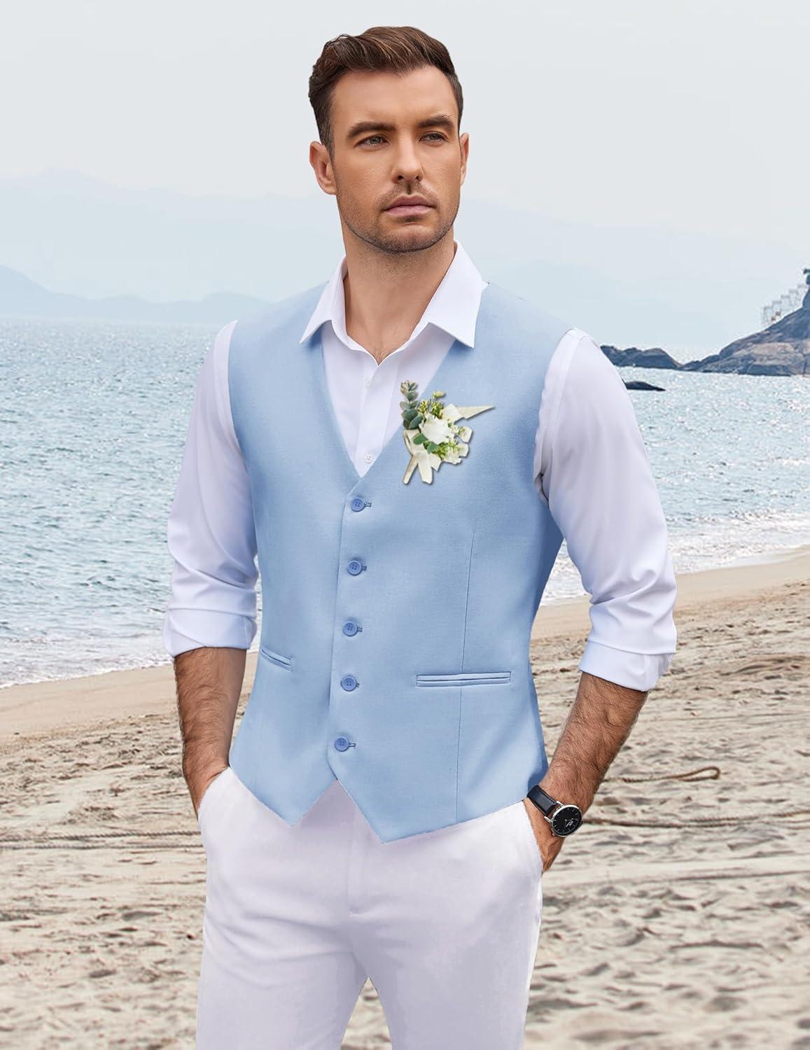COOFANDY Men's Linen Vest Casual Linen Slim Fit Suit Vests Dress Waistcoat Wedding Business Prom(Light Blue)
