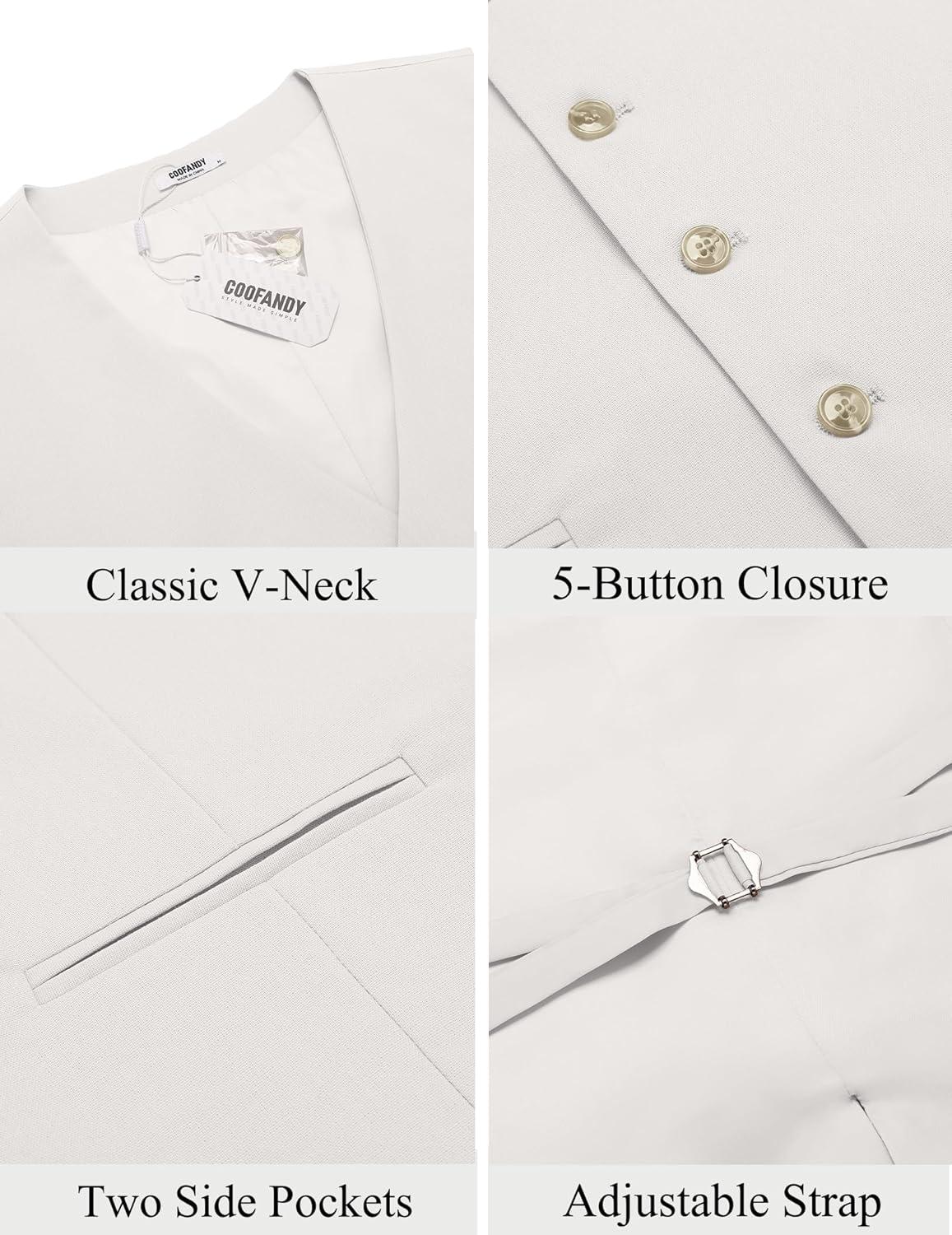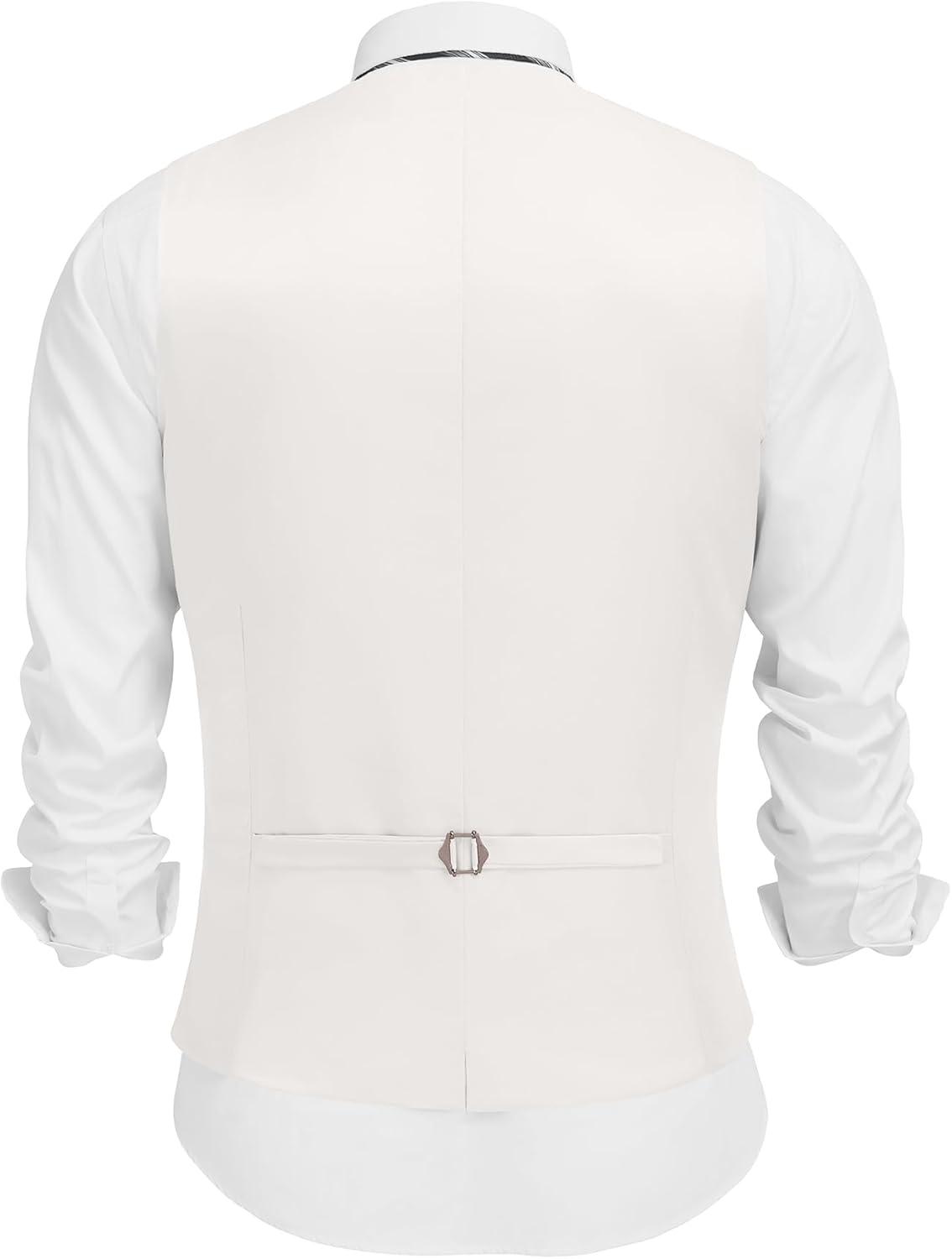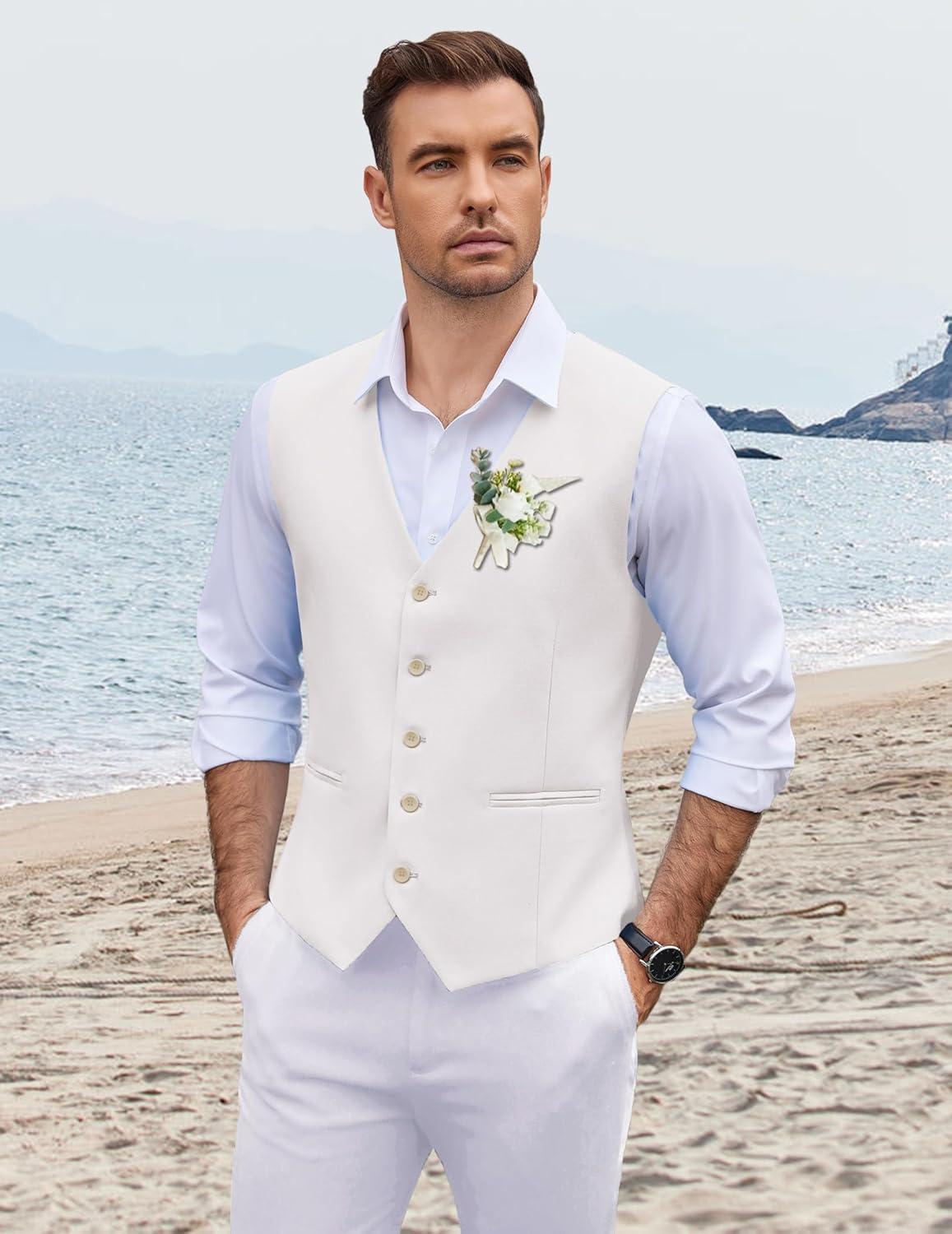COOFANDY Men’s Linen Vest Casual Linen Slim Fit Suit Vests Dress Waistcoat Wedding Business Prom(White)