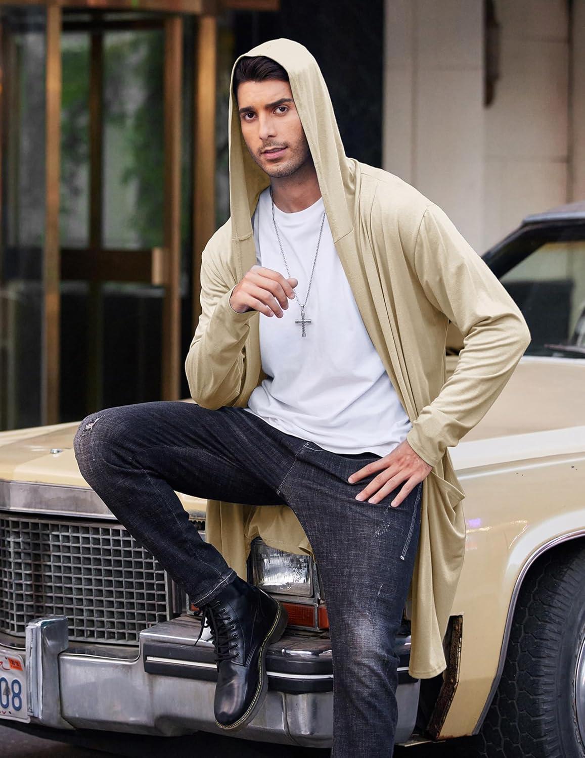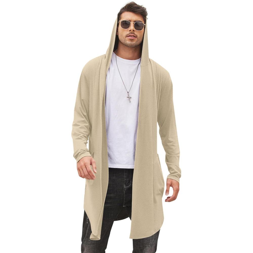 Get up to 60% off on COOFANDY Men’s Long Hooded Cardigan Shawl Collar Lightweight Open Front Drape Cape Overcoat with Pockets(Khaki) styles during our winter sale event.