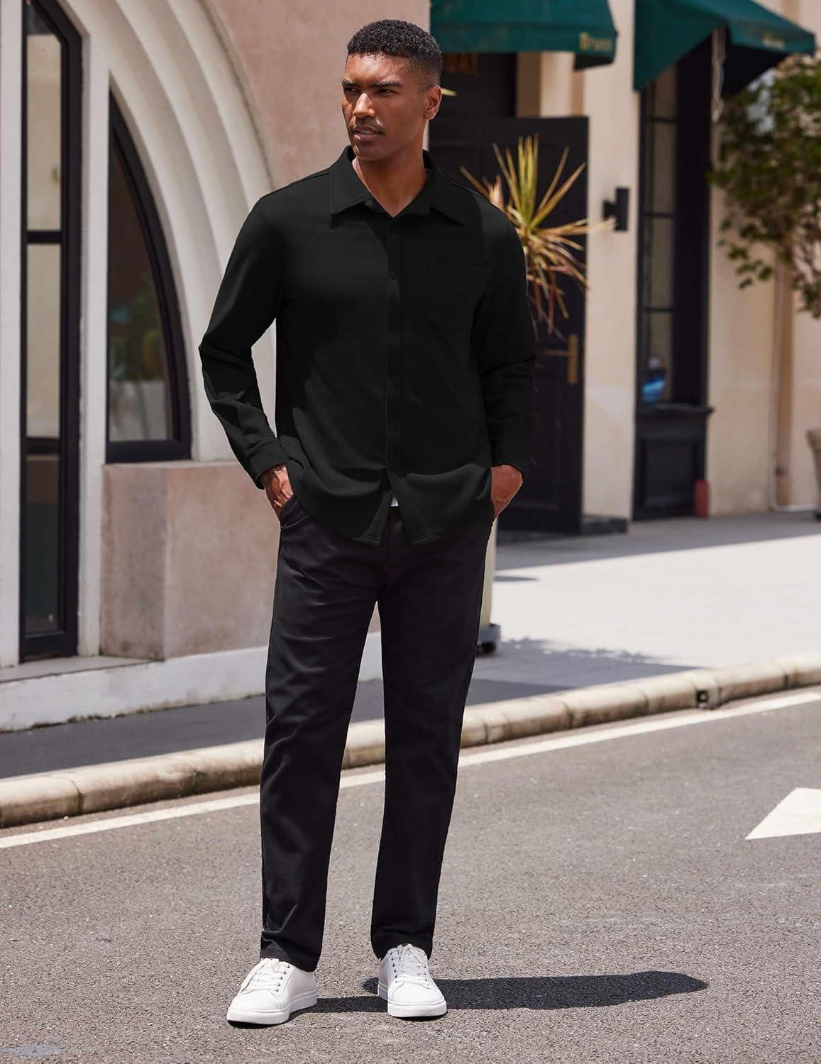 COOFANDY Men's Long Sleeve Button Down Shirt Casual Lightweight Shacket Spring Fall Shirt Jacket Overshirt with Pockets(Black)