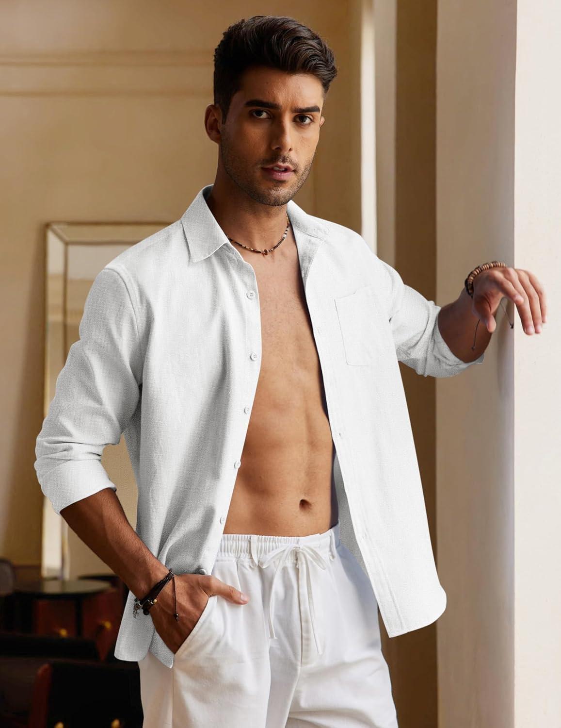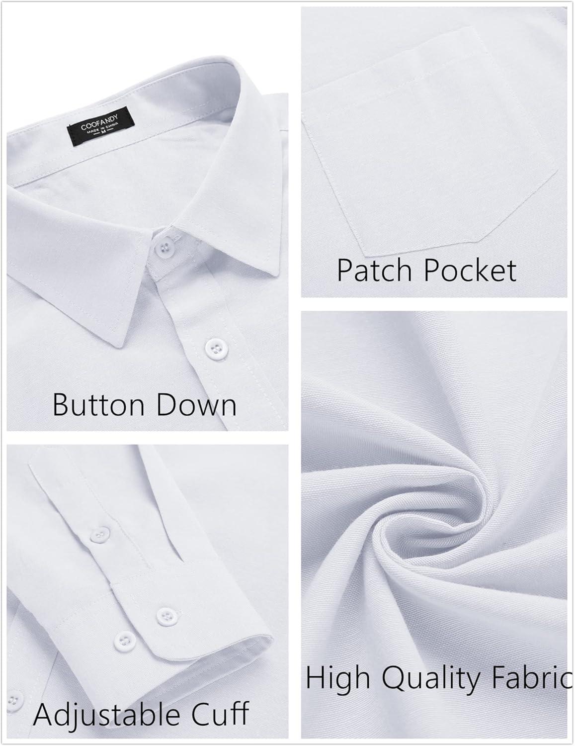 COOFANDY Men’s Long Sleeve Button Down Shirt Casual Untucked Regular-Fit Oxford Dress Shirts(White)