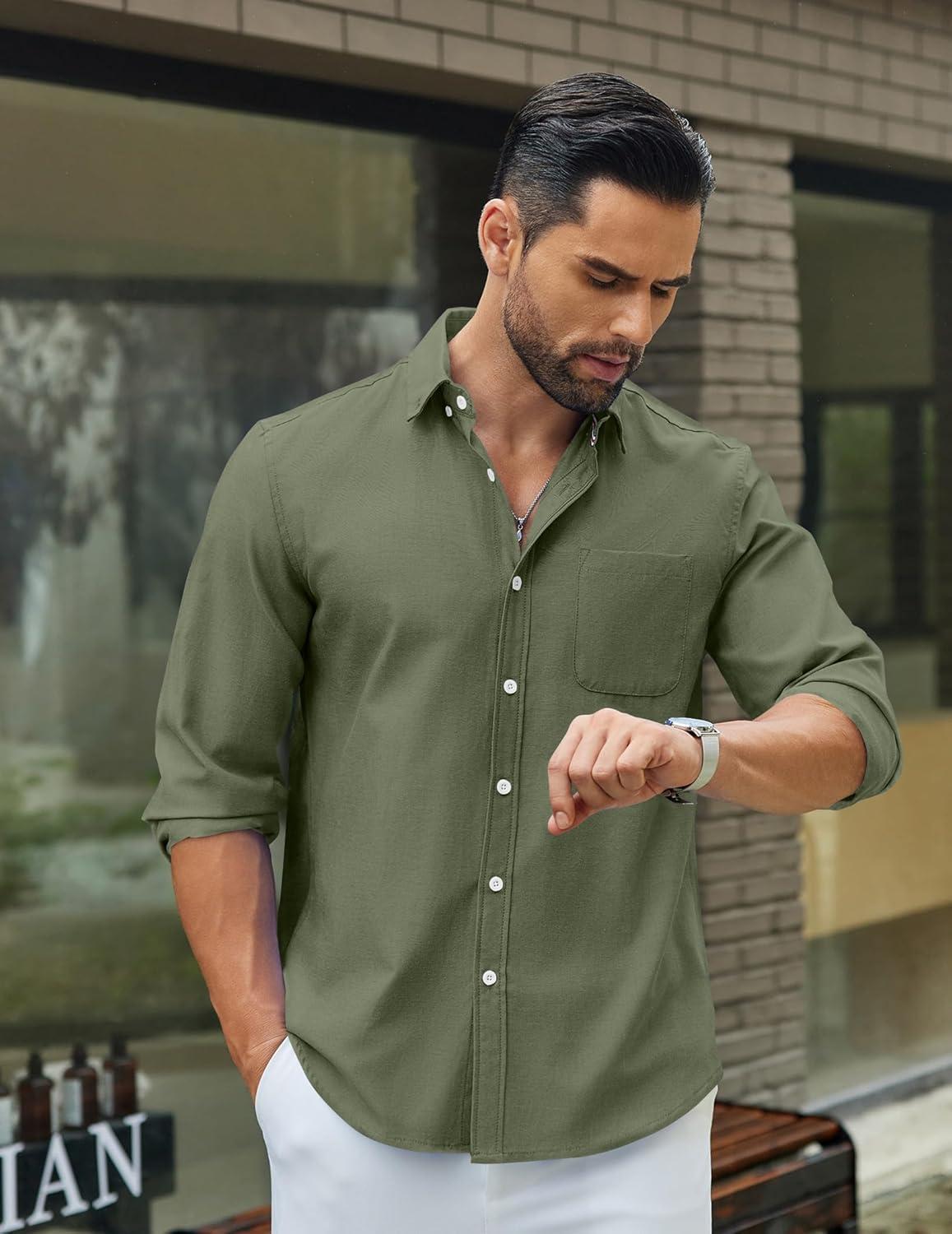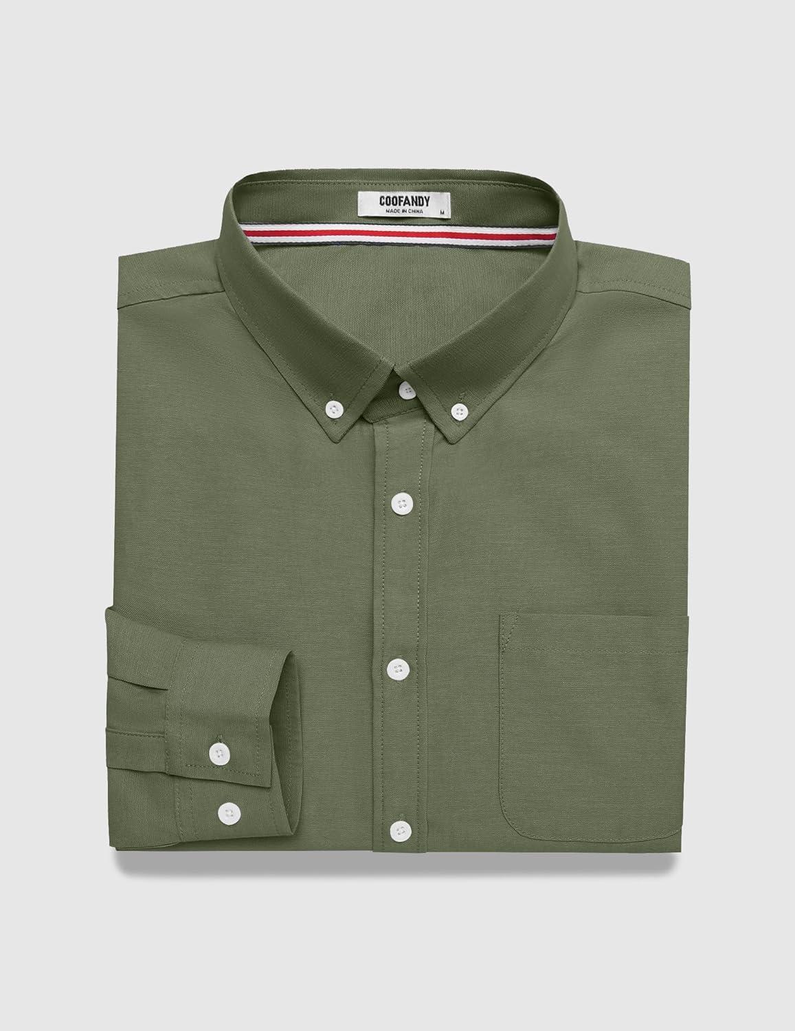 COOFANDY Mens Long Sleeve Button Down Shirt Casual Untucked Shirts for Men Oxford Dress Shirts(Army Green)