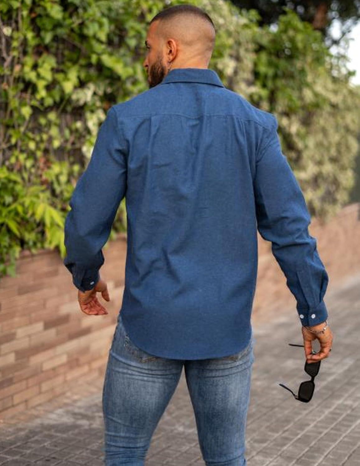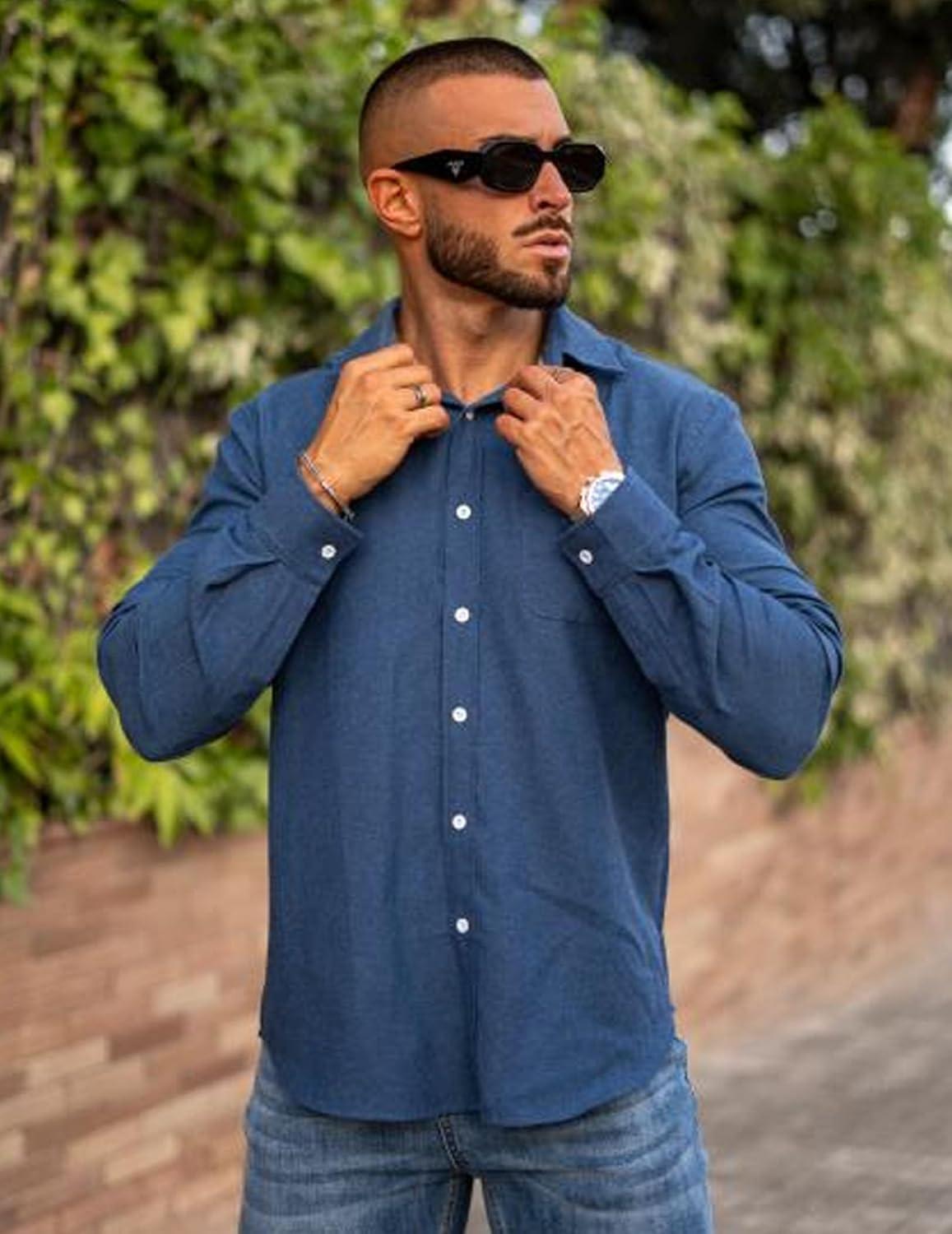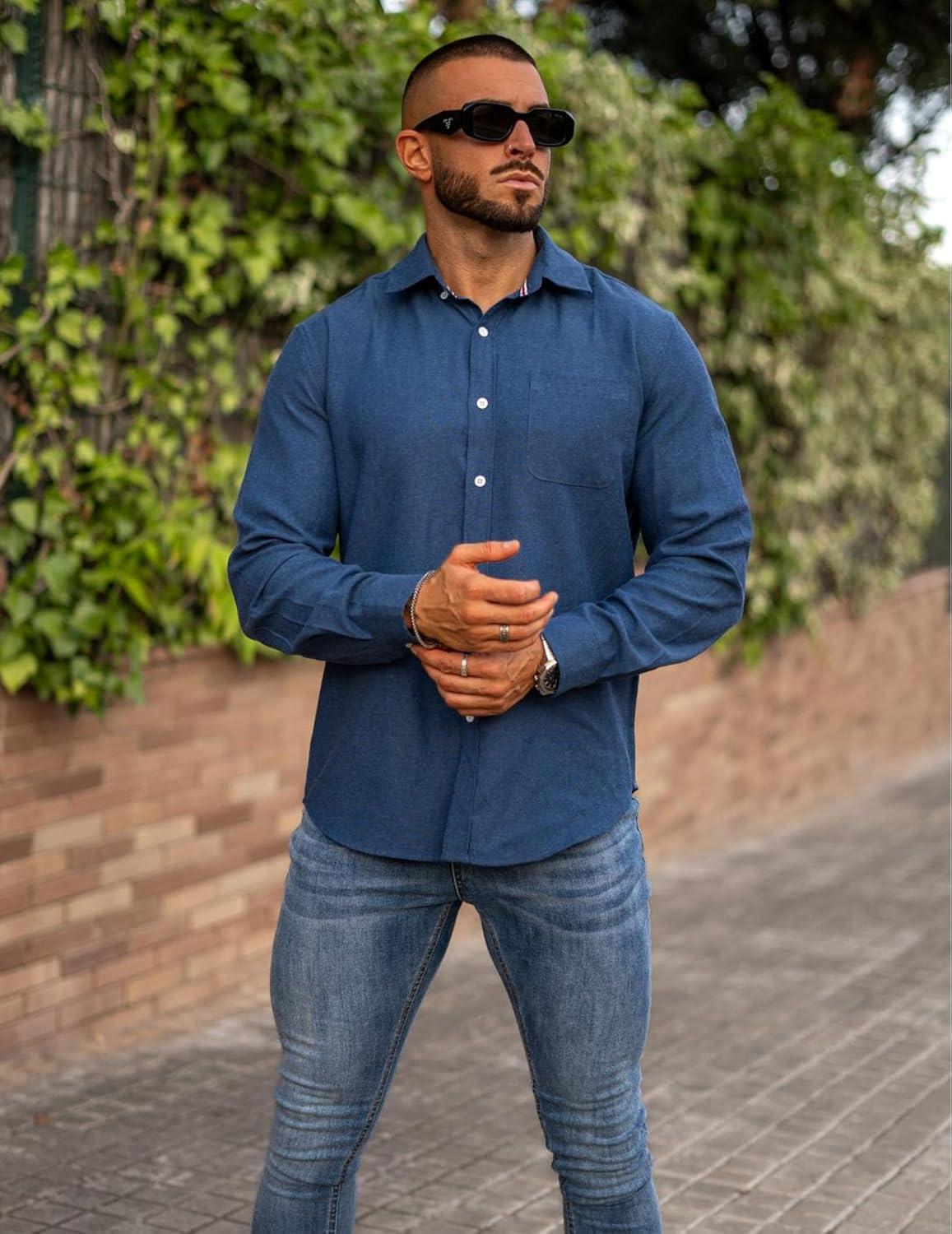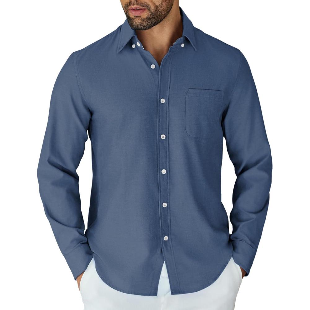 COOFANDY Mens Long Sleeve Button Down Shirt Casual Untucked Shirts for Men Oxford Dress Shirts(Denim Blue)