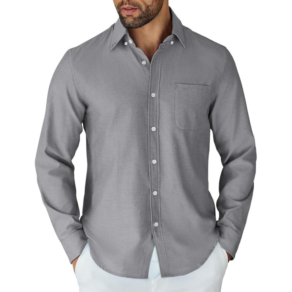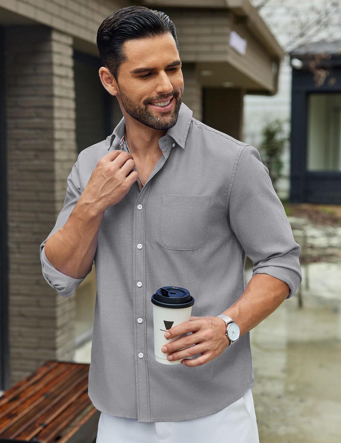 COOFANDY Mens Long Sleeve Button Down Shirt Casual Untucked Shirts for Men Oxford Dress Shirts(Gray)
