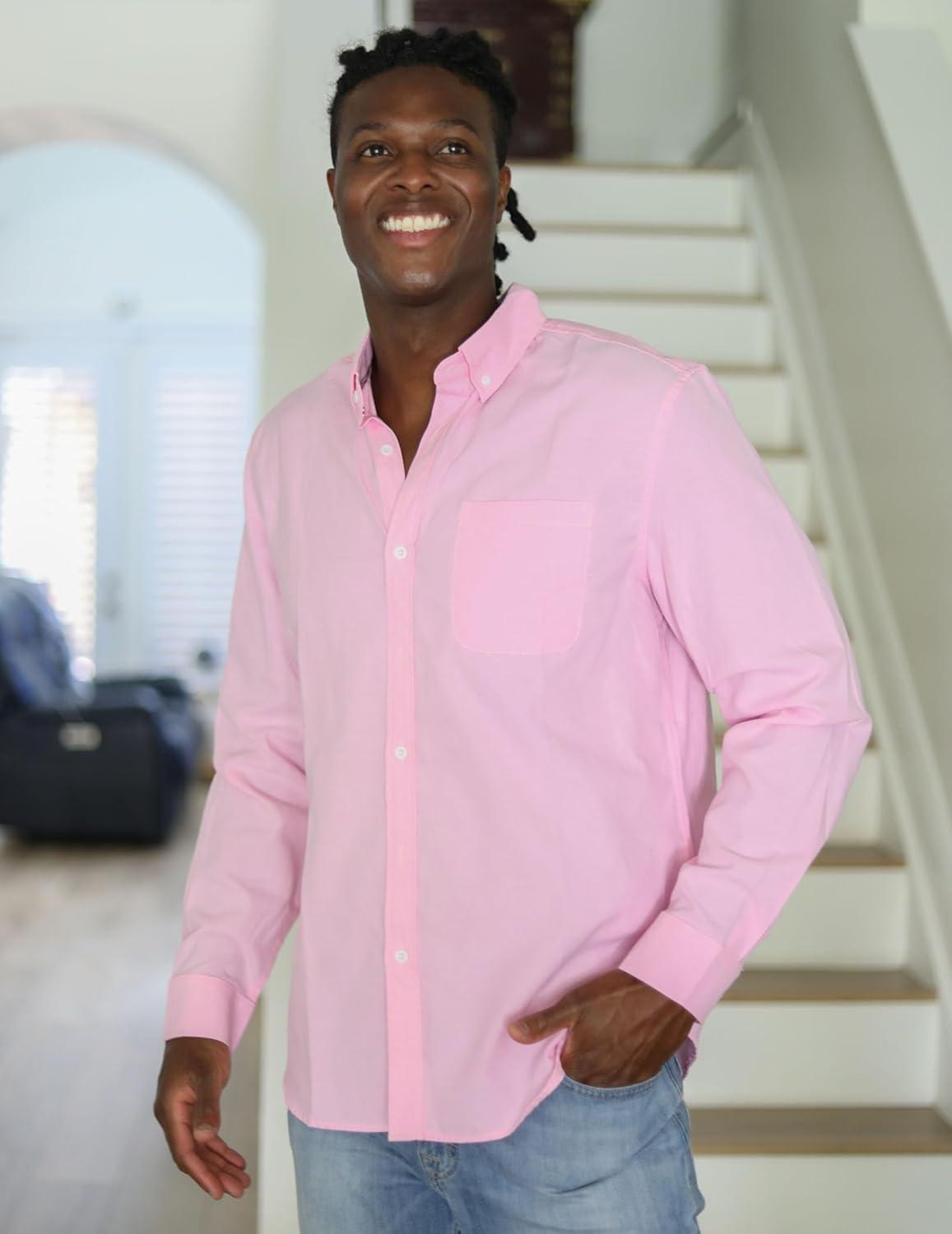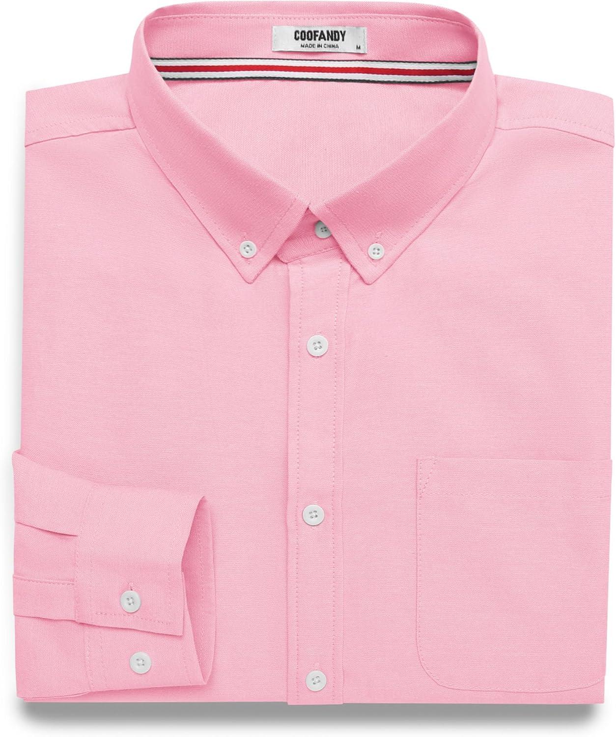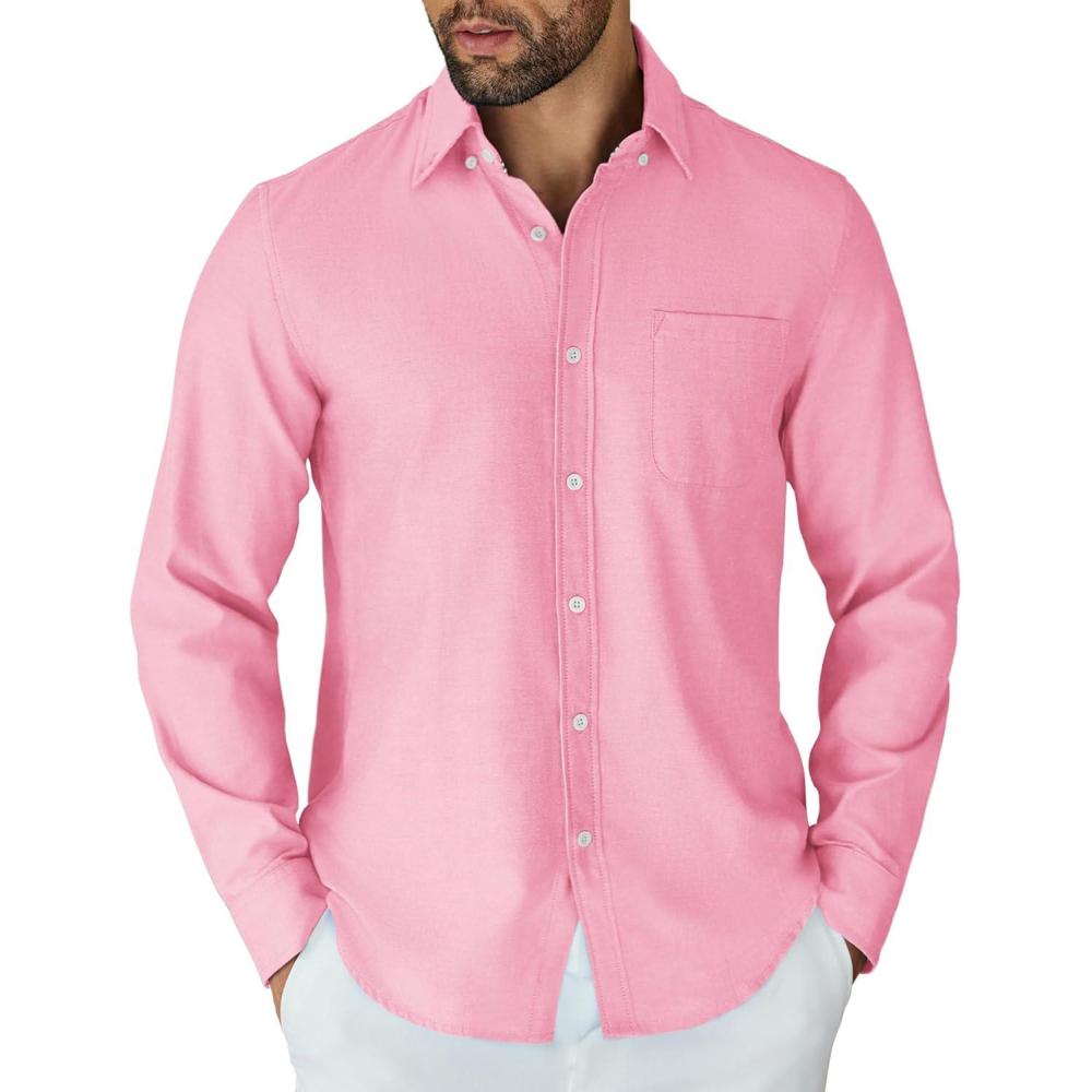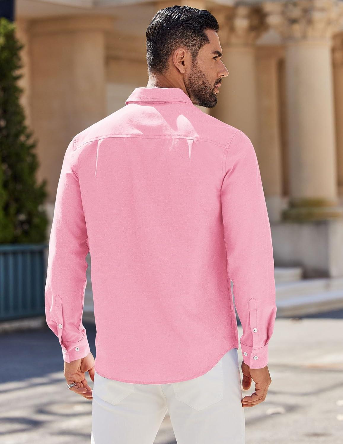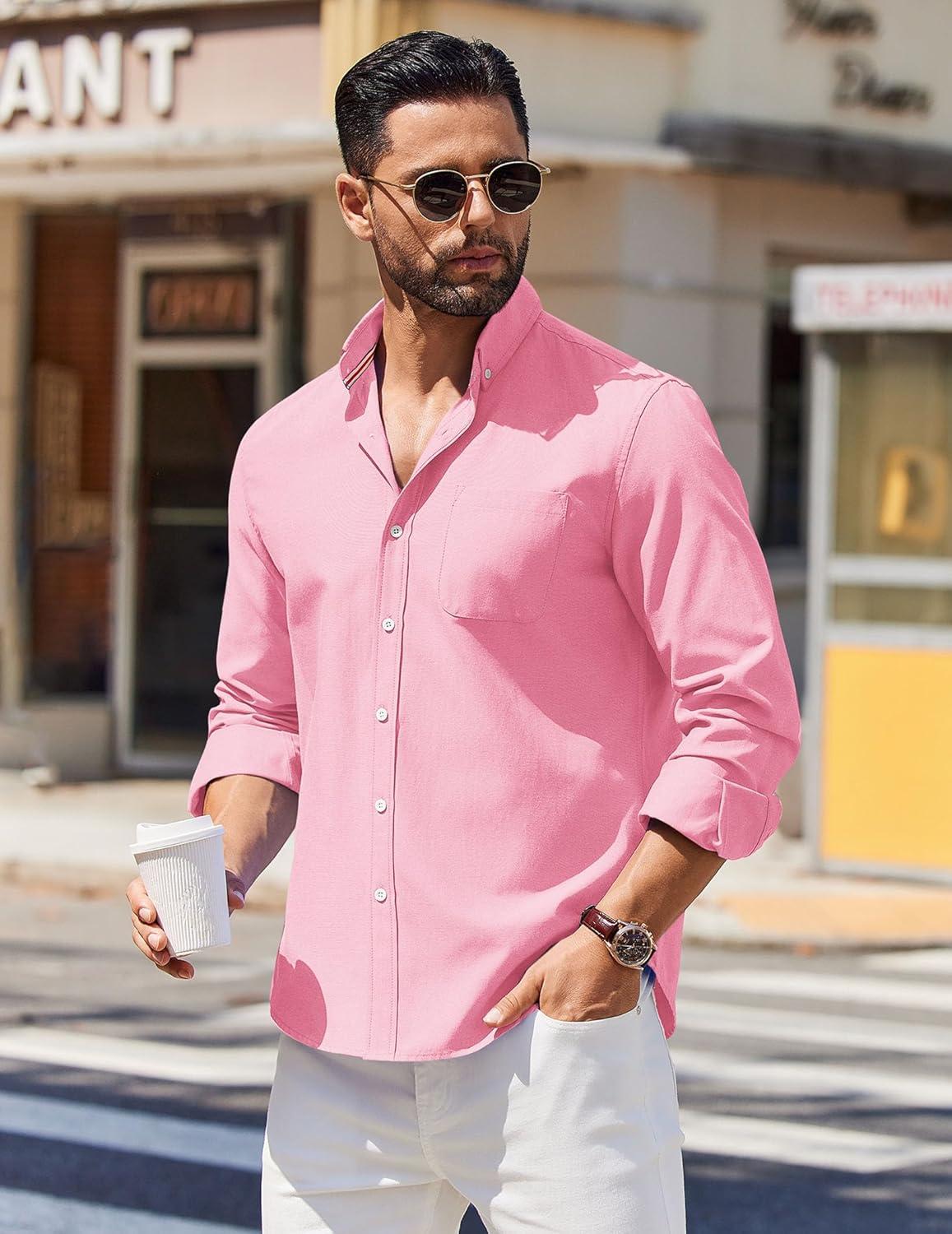 COOFANDY Mens Long Sleeve Button Down Shirt Casual Untucked Shirts for Men Oxford Dress Shirts(Pink)