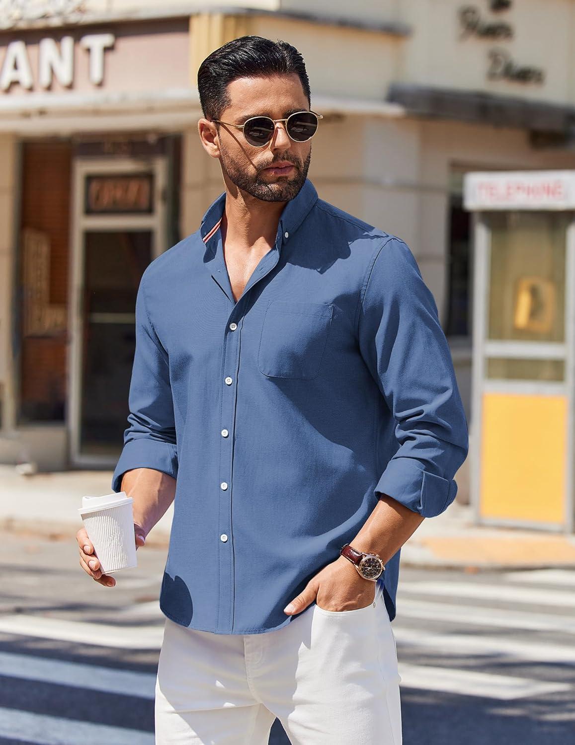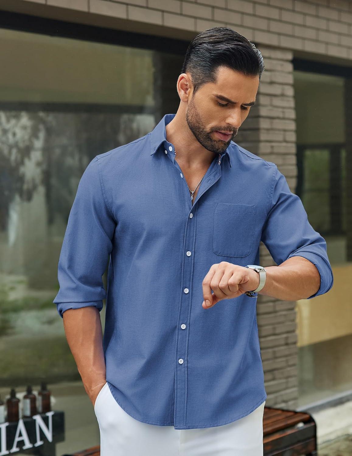 COOFANDY Mens Long Sleeve Button Down Shirt Casual Untucked Shirts for Men Oxford Dress Shirts(Royal Blue)