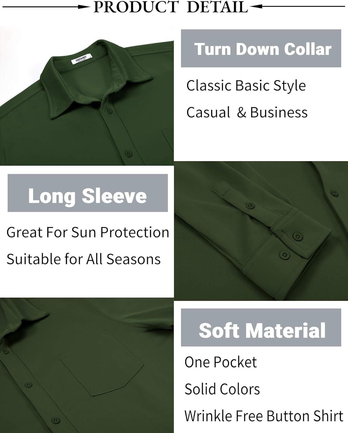 imageCOOFANDY Mens Long Sleeve Button Down Shirt Wrinkle Free Casual Shirt for Men Untucked Shirts with Pocket for WeddingArmy Green