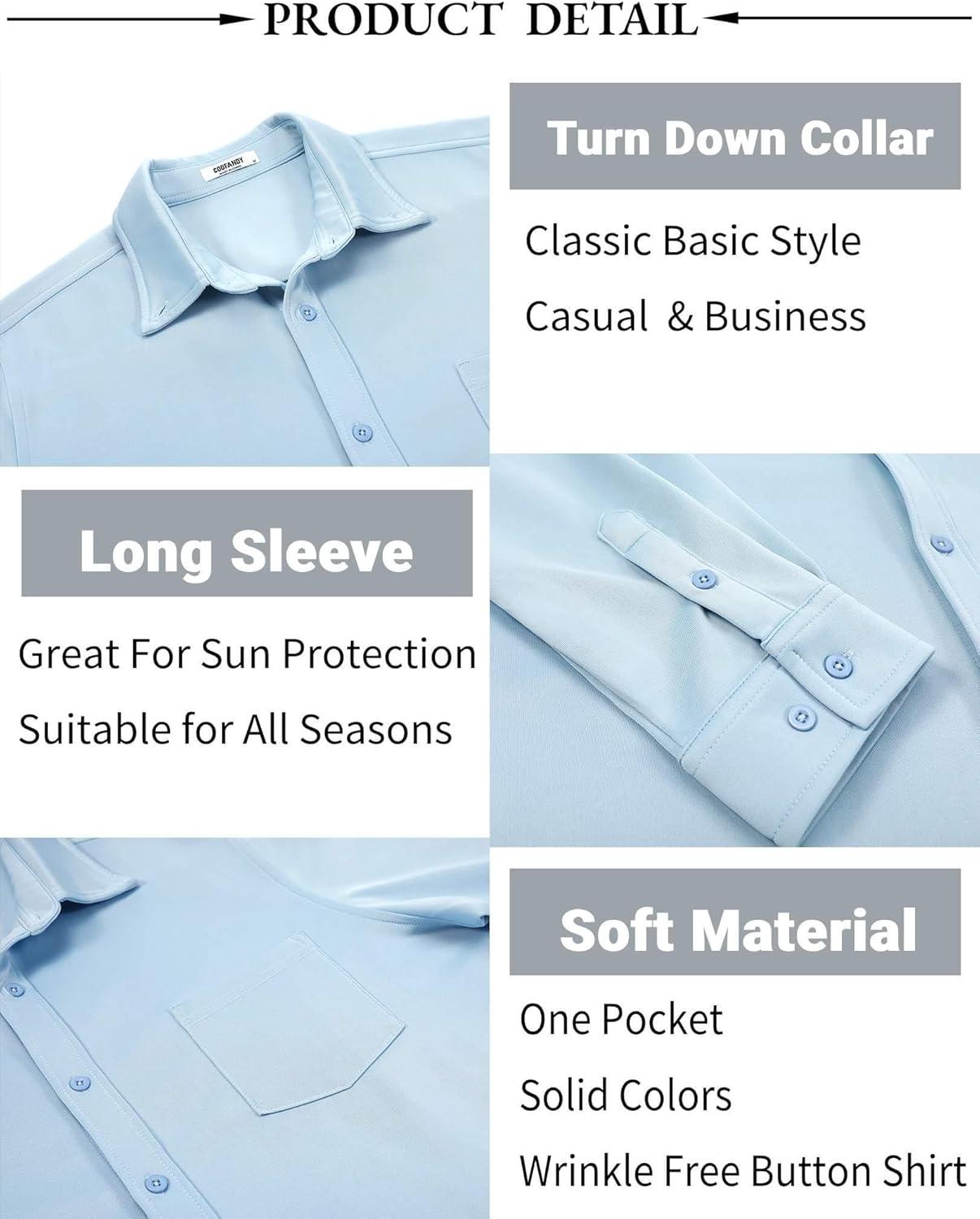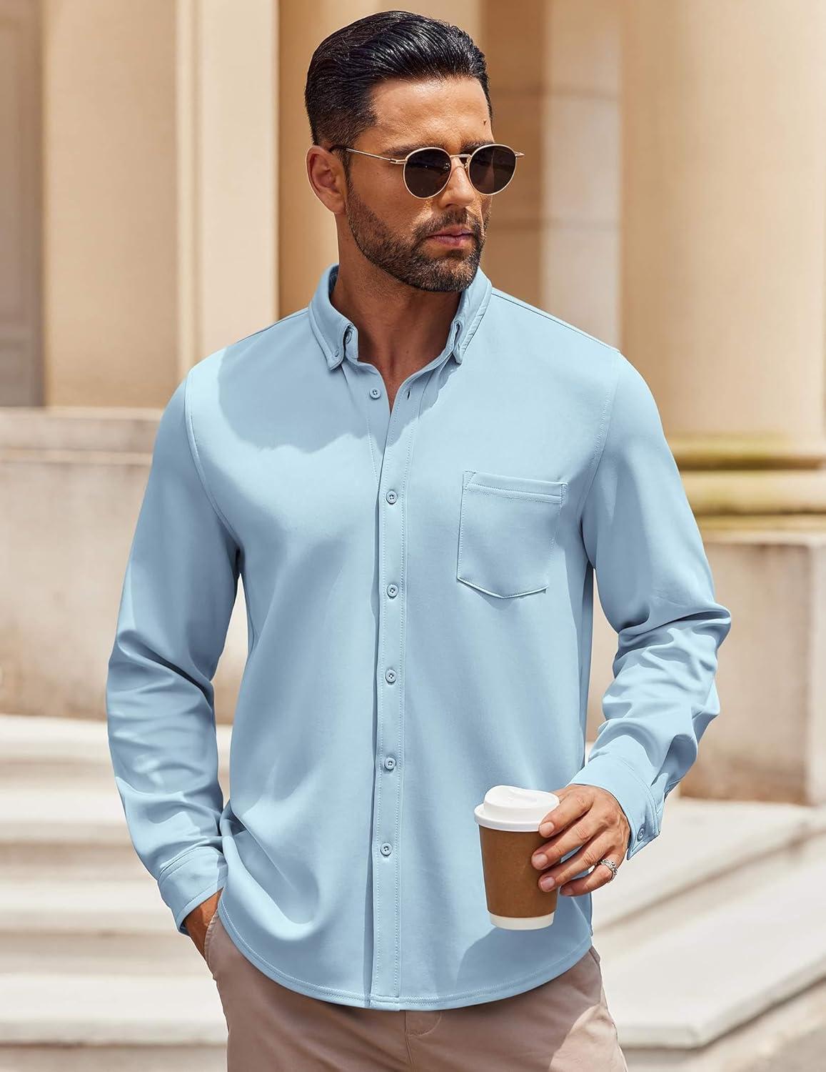COOFANDY Mens Long Sleeve Button Down Shirt Wrinkle Free Casual Shirt for Men Untucked Shirts with Pocket for Wedding(Clear Blue)