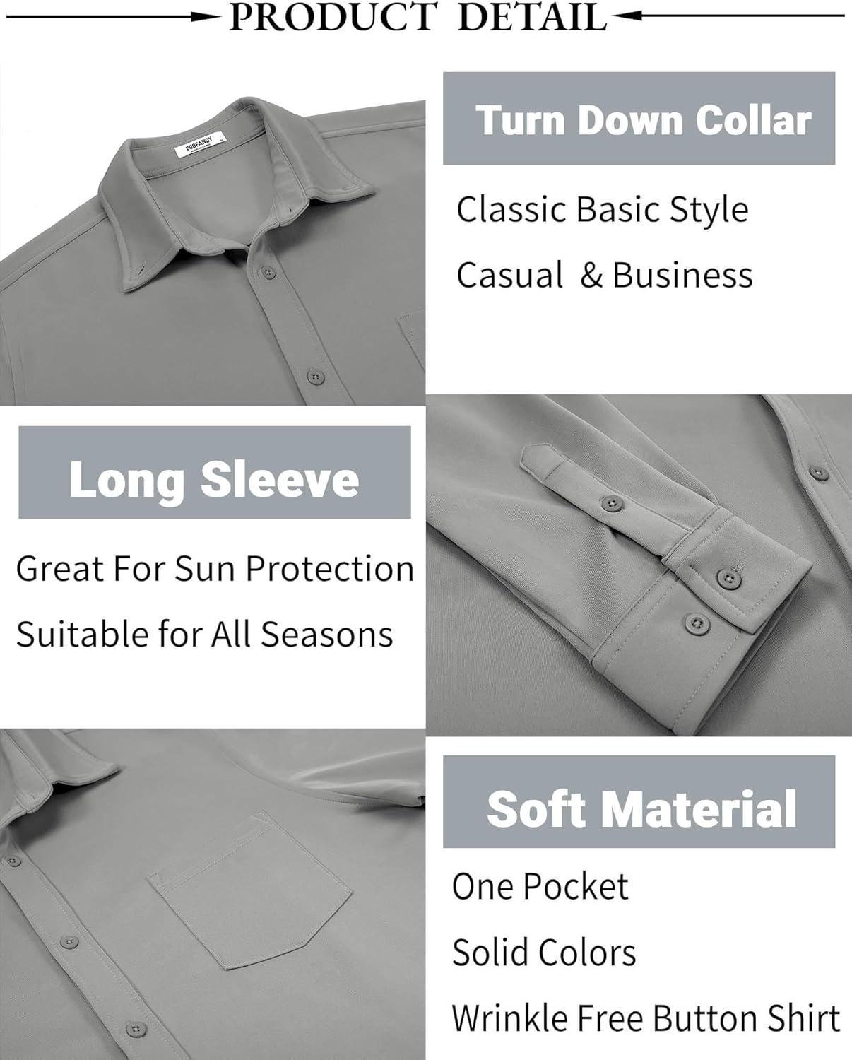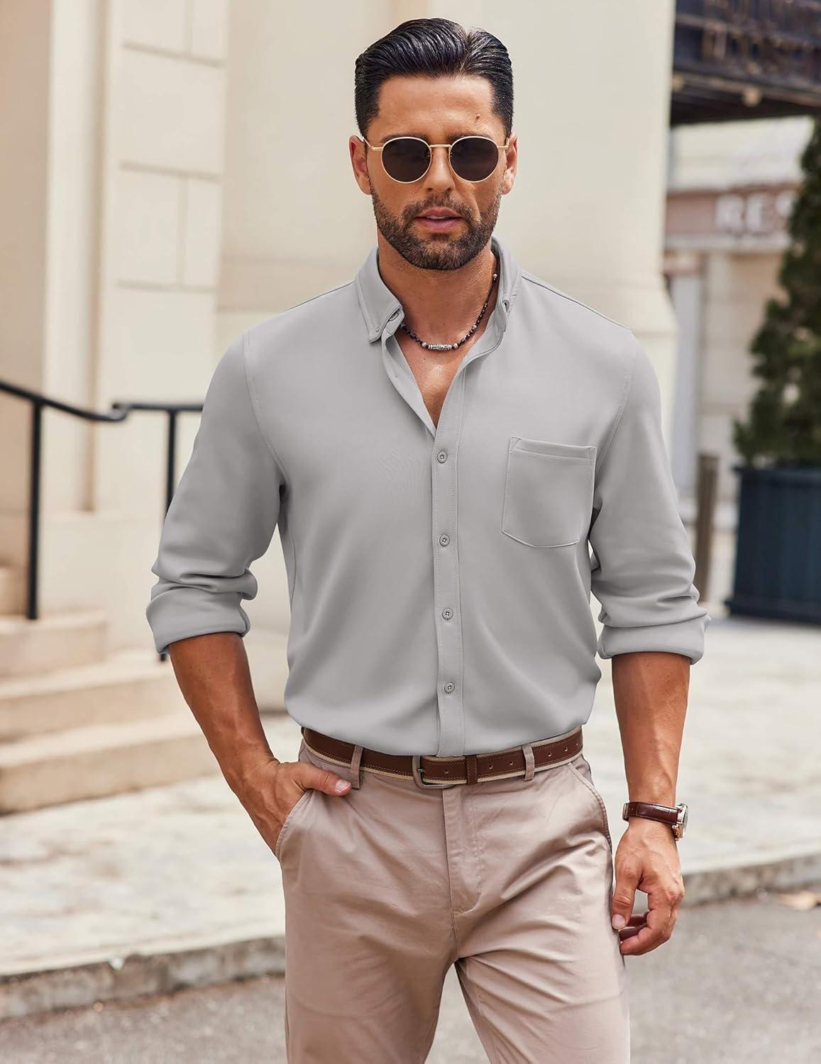 COOFANDY Mens Long Sleeve Button Down Shirt Wrinkle Free Casual Shirt for Men Untucked Shirts with Pocket for Wedding(Light Grey)