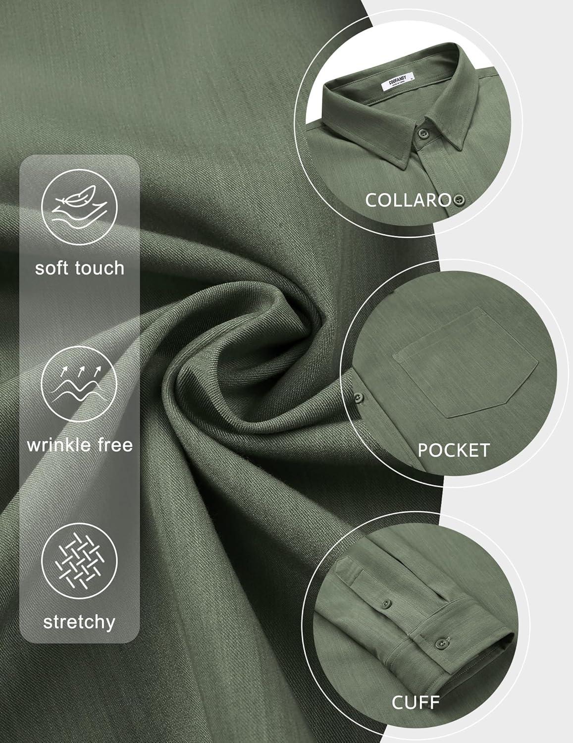 COOFANDY Men's Long Sleeve Button Down Shirt Wrinkle Free Untucked Dress Shirt Casual Denim Shirt(Army Green)