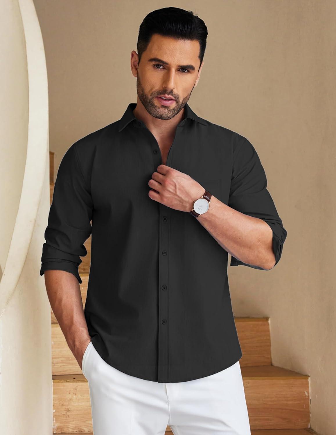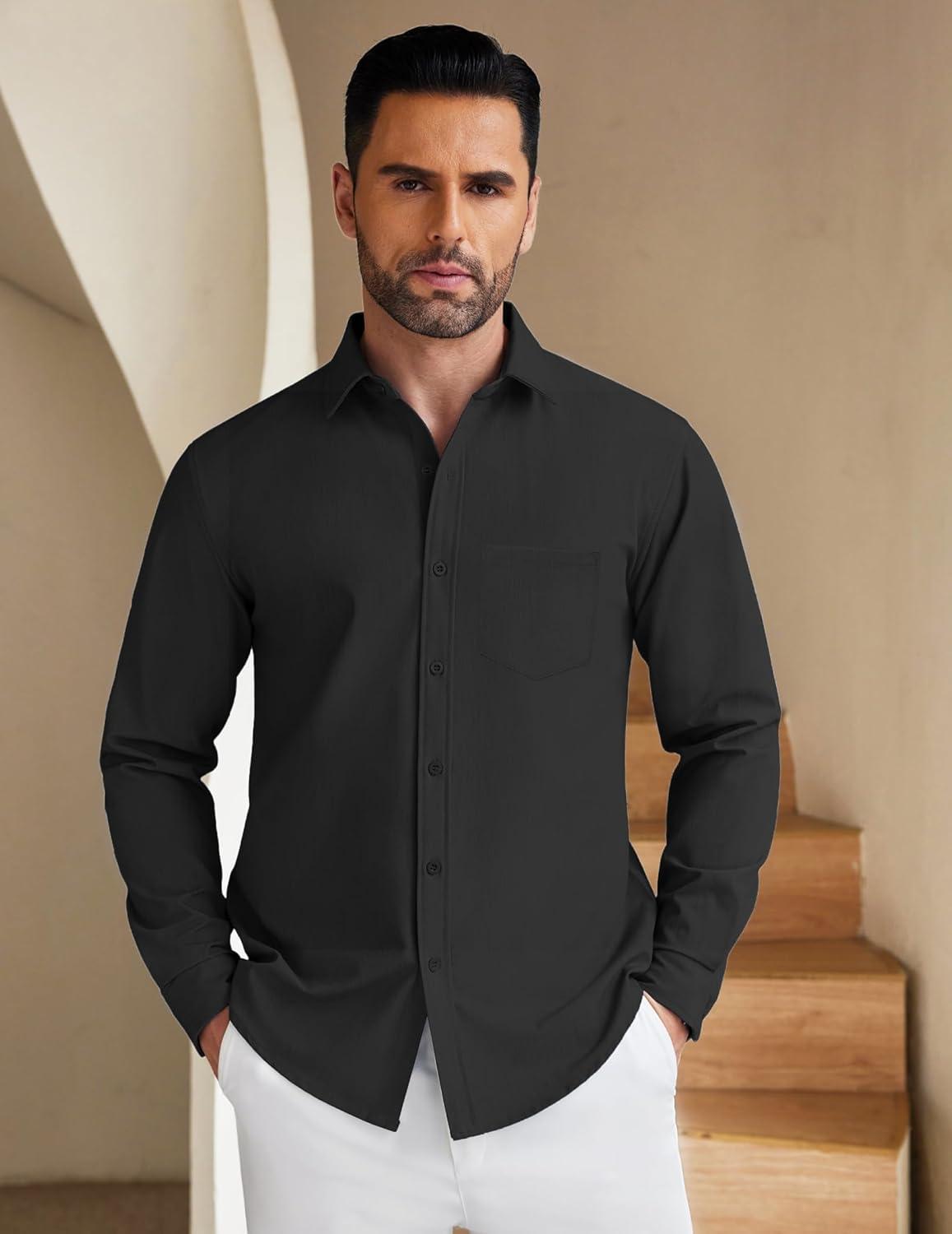 COOFANDY Men's Long Sleeve Button Down Shirt Wrinkle Free Untucked Dress Shirt Casual Denim Shirt(Black)