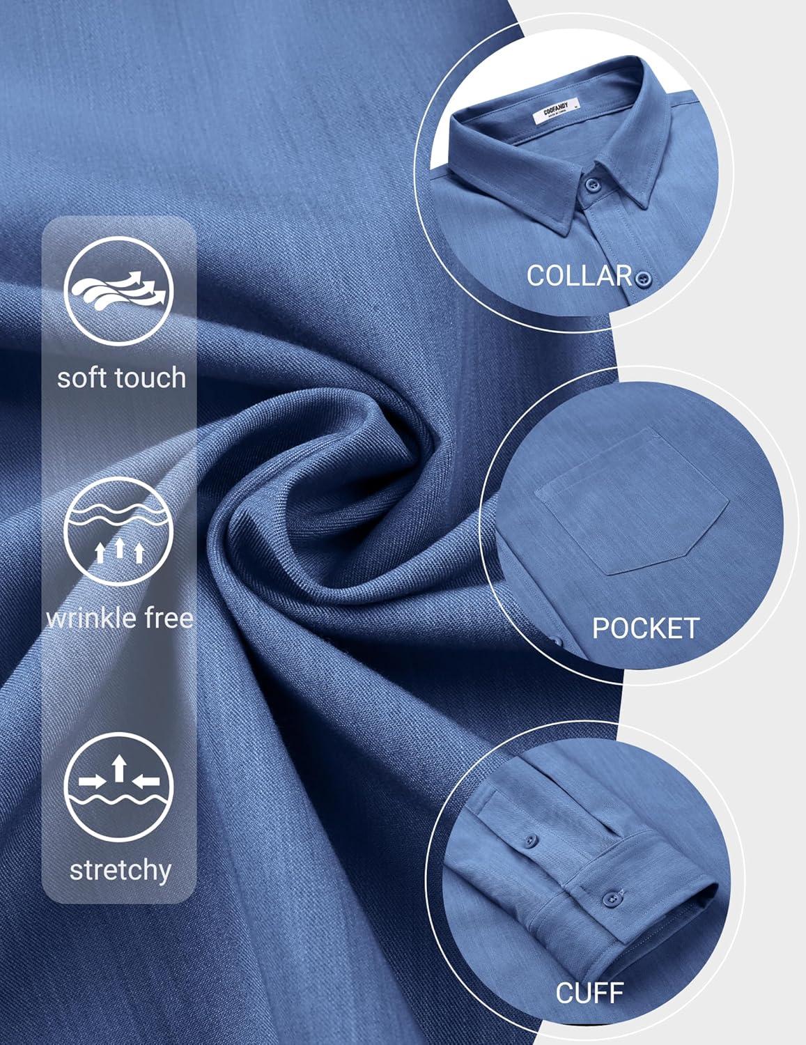 COOFANDY Men's Long Sleeve Button Down Shirt Wrinkle Free Untucked Dress Shirt Casual Denim Shirt(Blue)