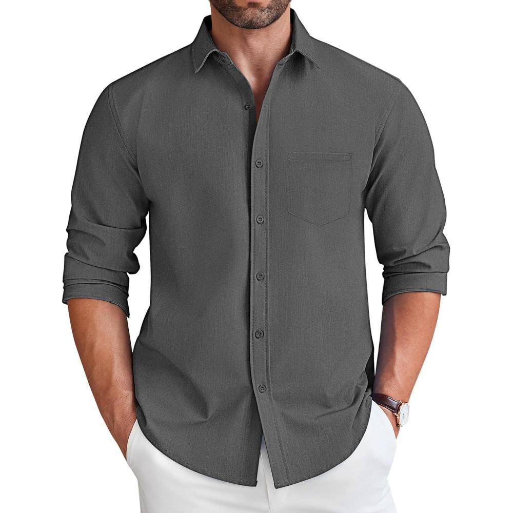 COOFANDY Men's Long Sleeve Button Down Shirt Wrinkle Free Untucked Dress Shirt Casual Denim Shirt(Grey)