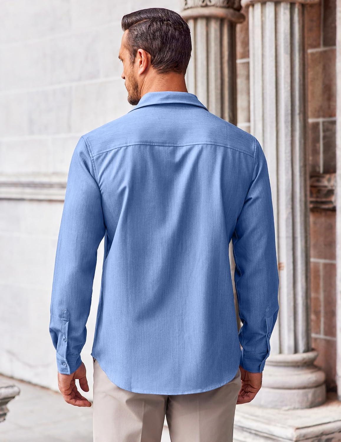 COOFANDY Men's Long Sleeve Button Down Shirt Wrinkle Free Untucked Dress Shirt Casual Denim Shirt(Light Blue)