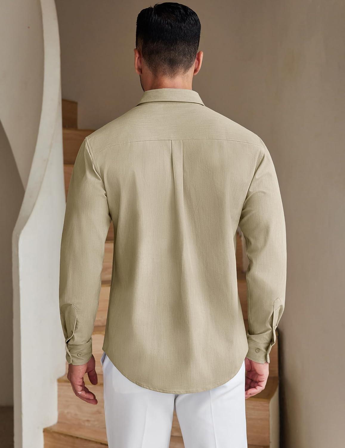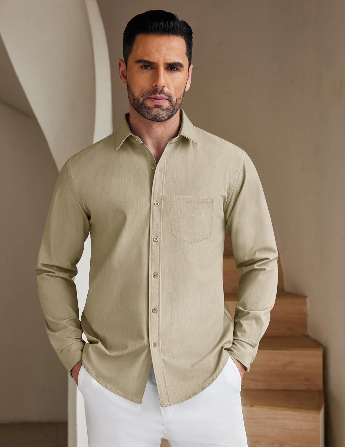 COOFANDY Men's Long Sleeve Button Down Shirt Wrinkle Free Untucked Dress Shirt Casual Denim Shirt(Light Khaki)