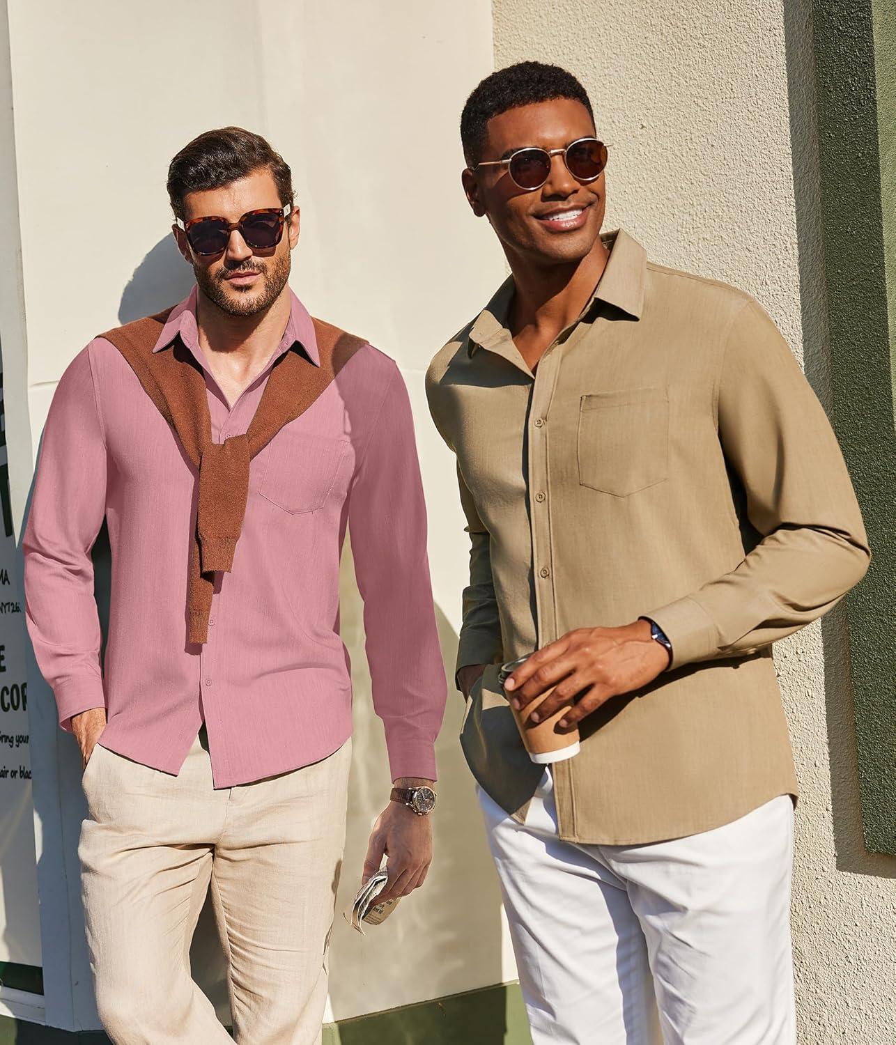 COOFANDY Men's Long Sleeve Button Down Shirt Wrinkle Free Untucked Dress Shirt Casual Denim Shirt(Purple Red)