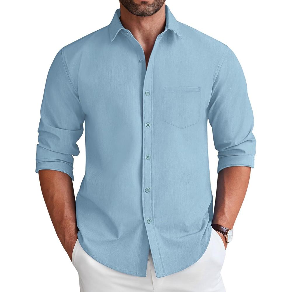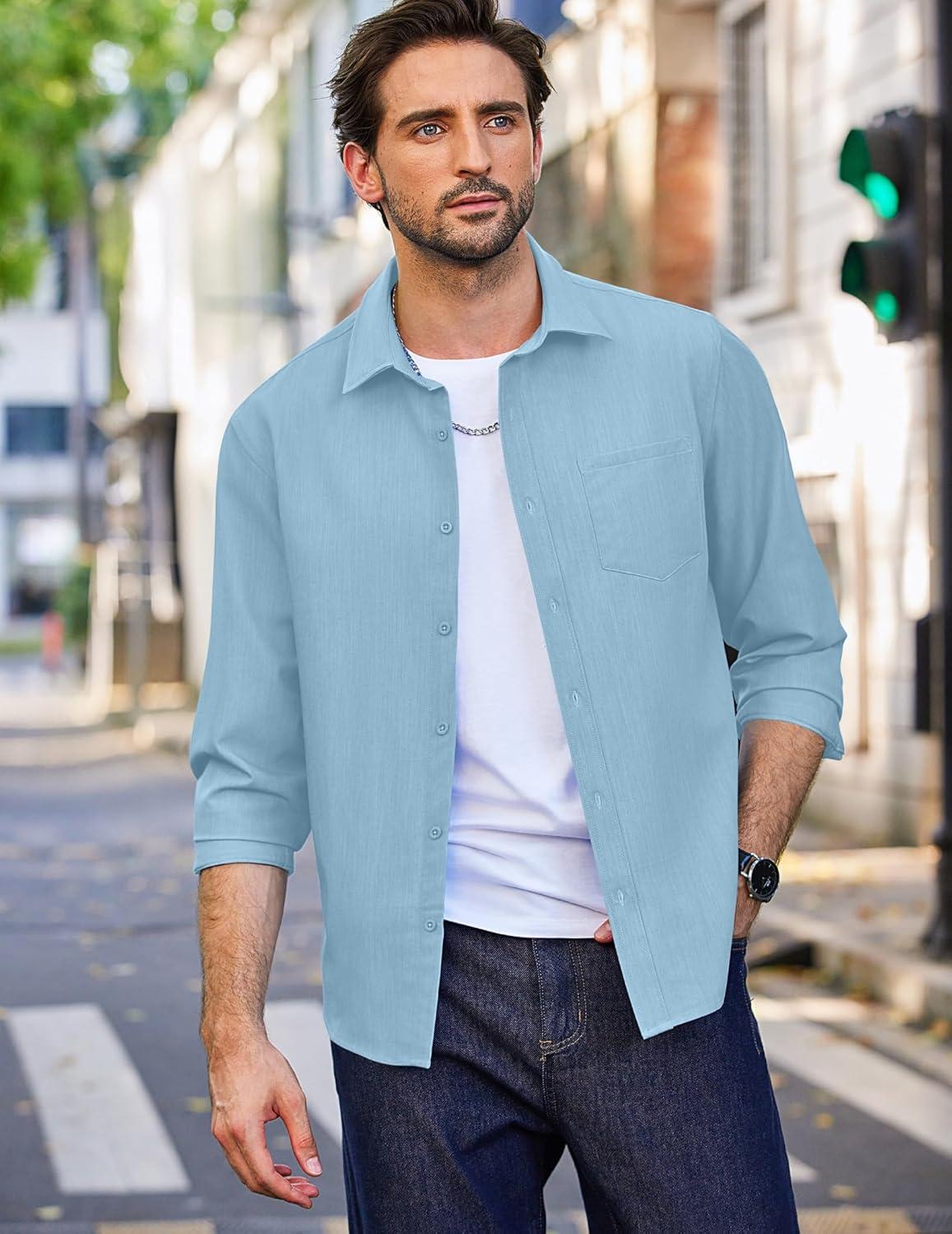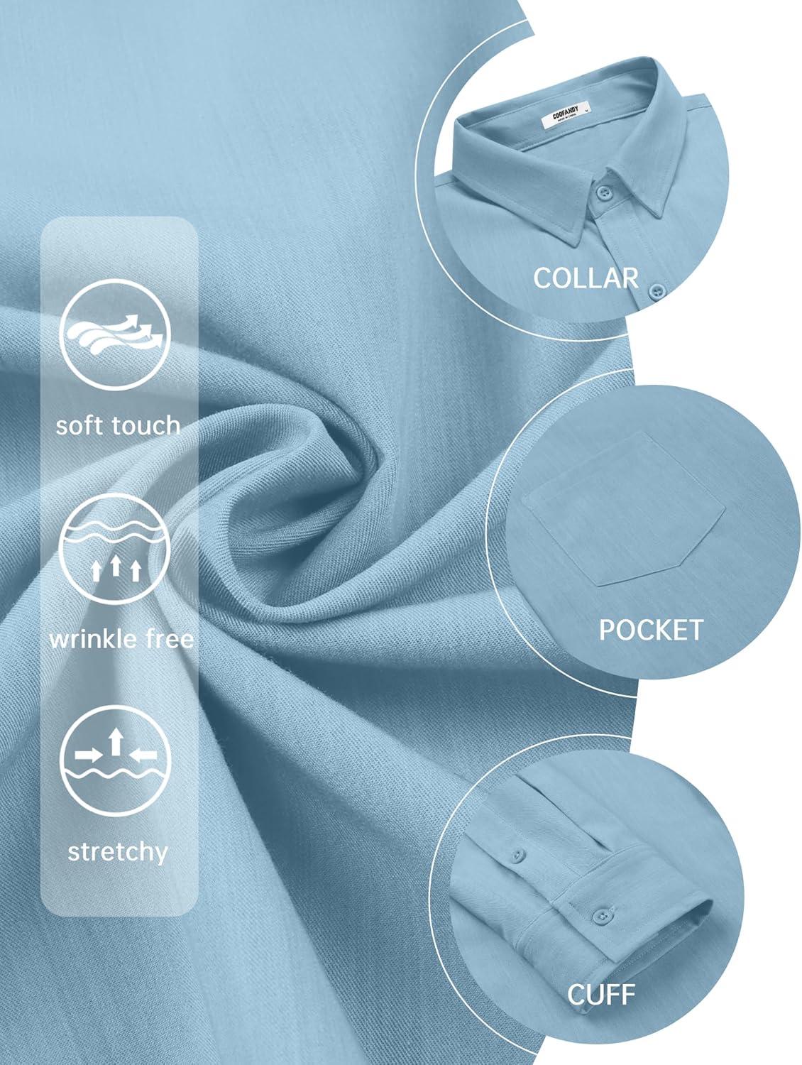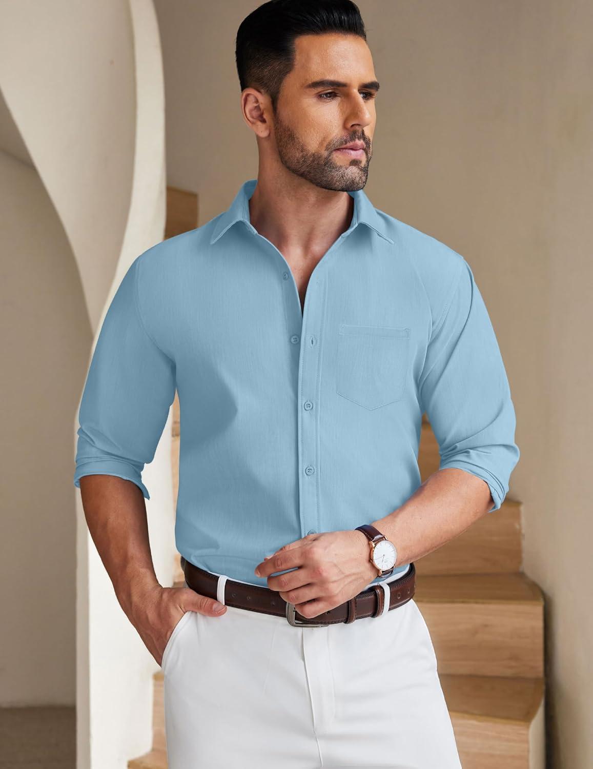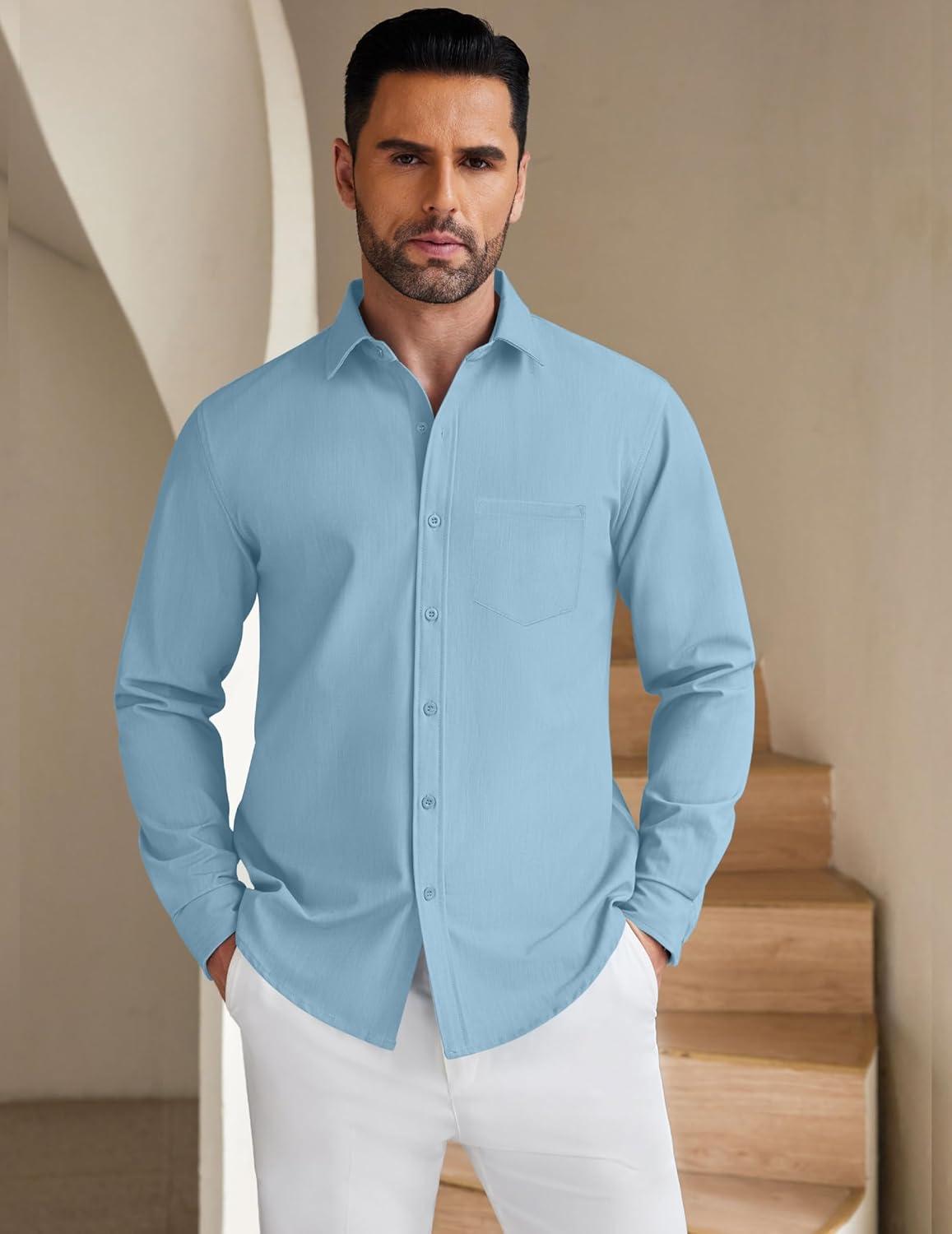 COOFANDY Men's Long Sleeve Button Down Shirt Wrinkle Free Untucked Dress Shirt Casual Denim Shirt(Sky Blue)