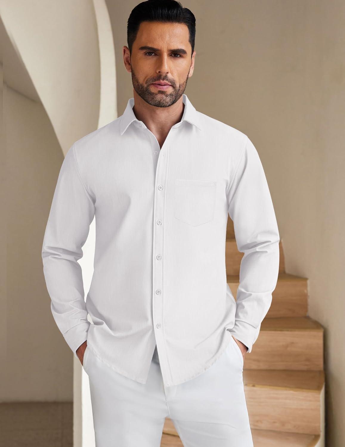 COOFANDY Men’s Long Sleeve Button Down Shirt Wrinkle Free Untucked Dress Shirt Casual Denim Shirt(White)