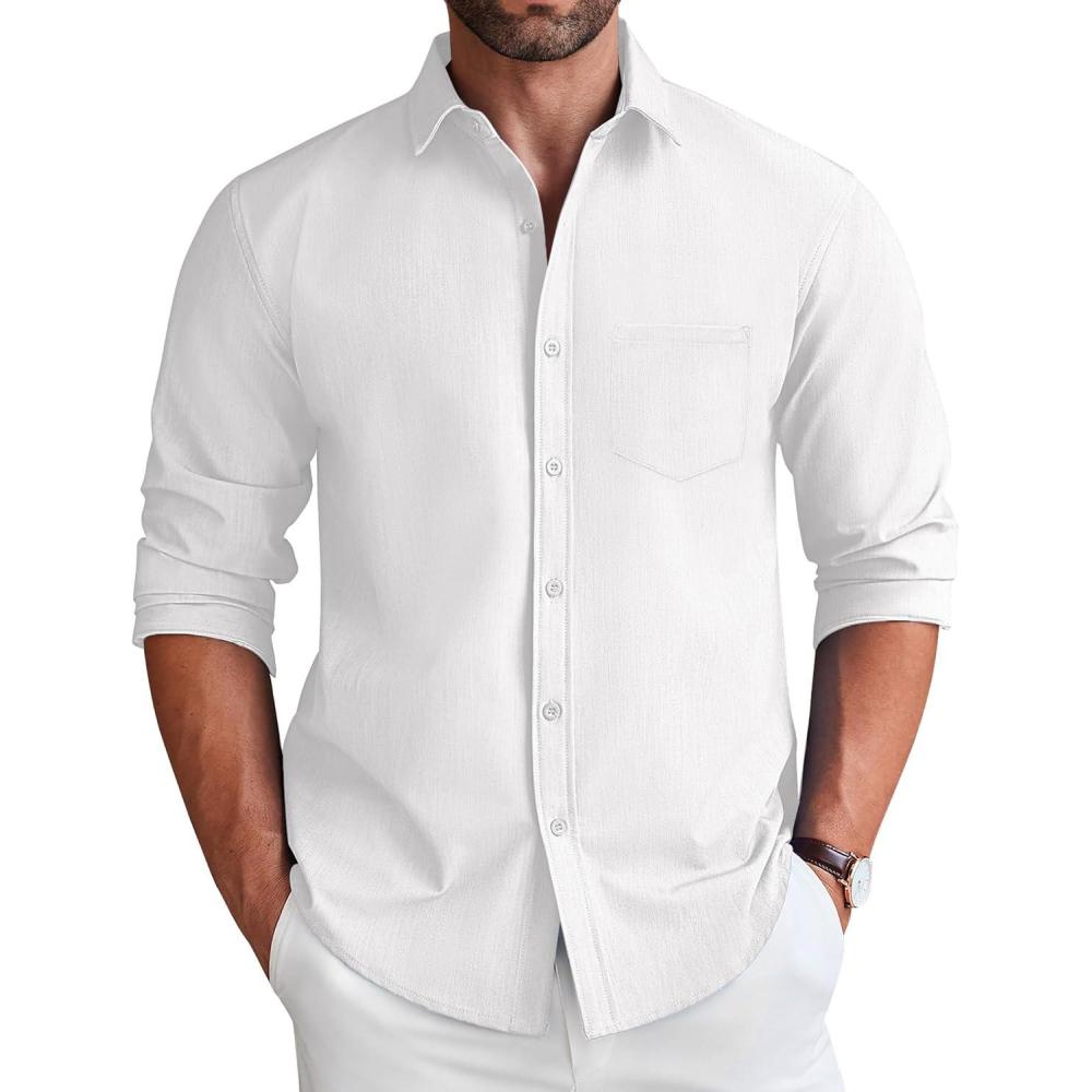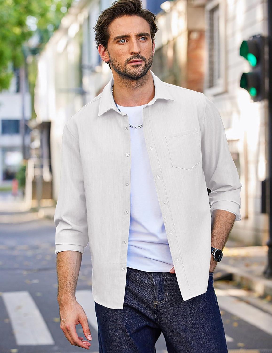 COOFANDY Men's Long Sleeve Button Down Shirt Wrinkle Free Untucked Dress Shirt Casual Denim Shirt(White)
