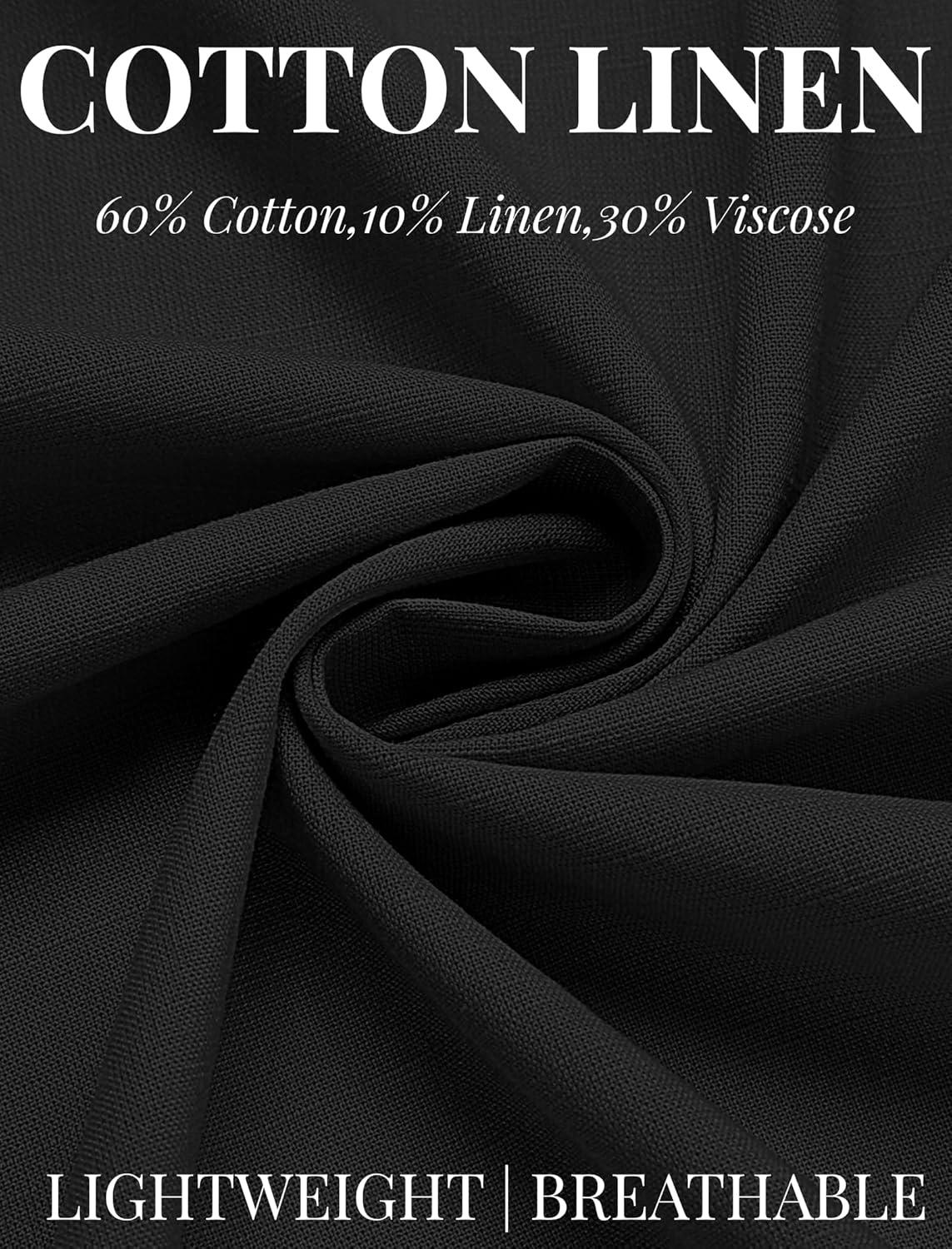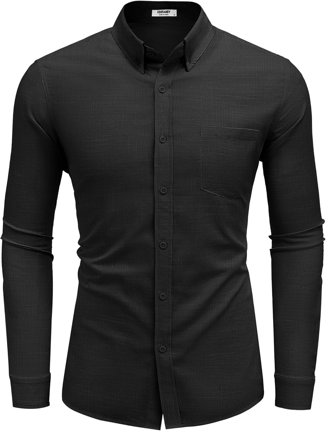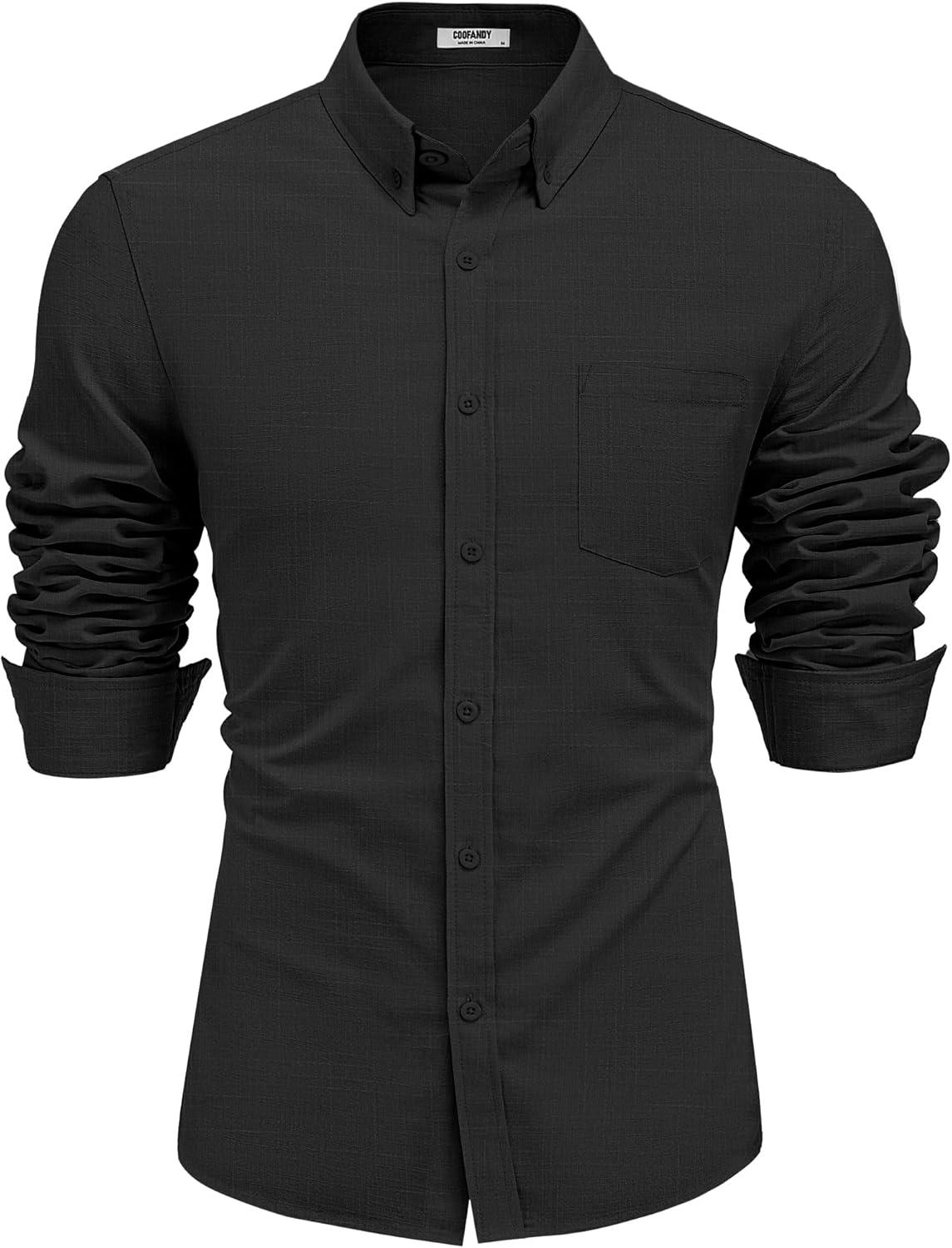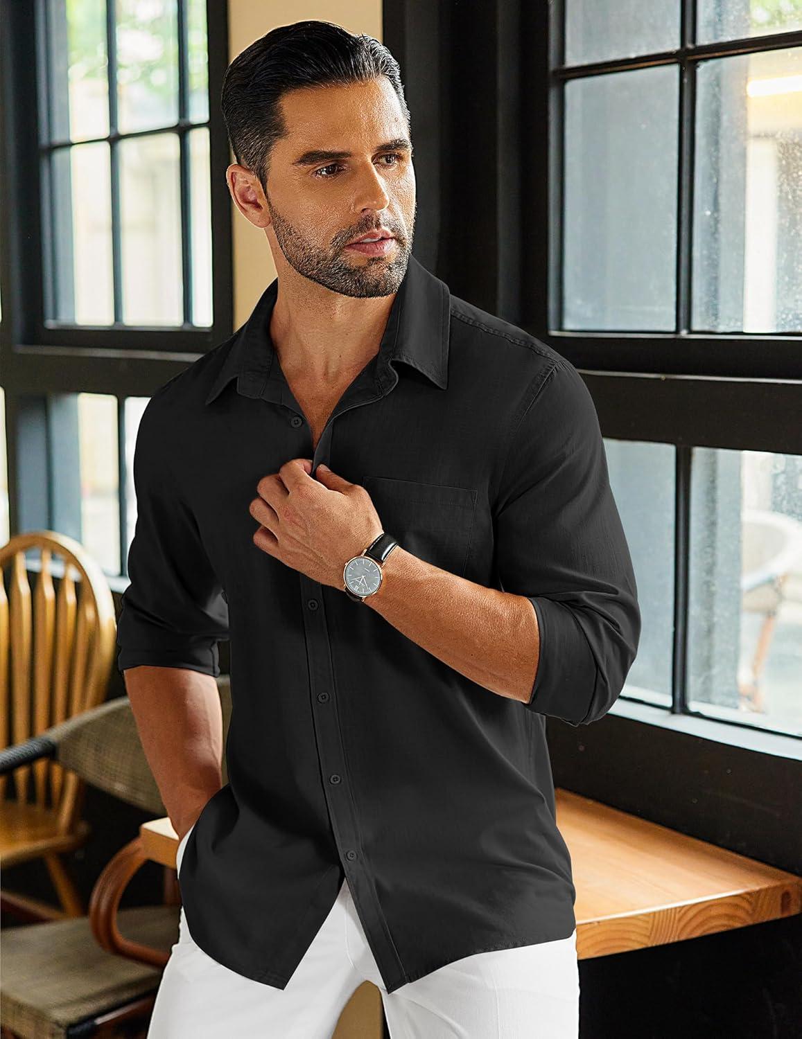 COOFANDY Men's Long Sleeve Button Down Shirts Casual Cotton Linen Shirts Summer Beach Shirt with Pocket(Black)