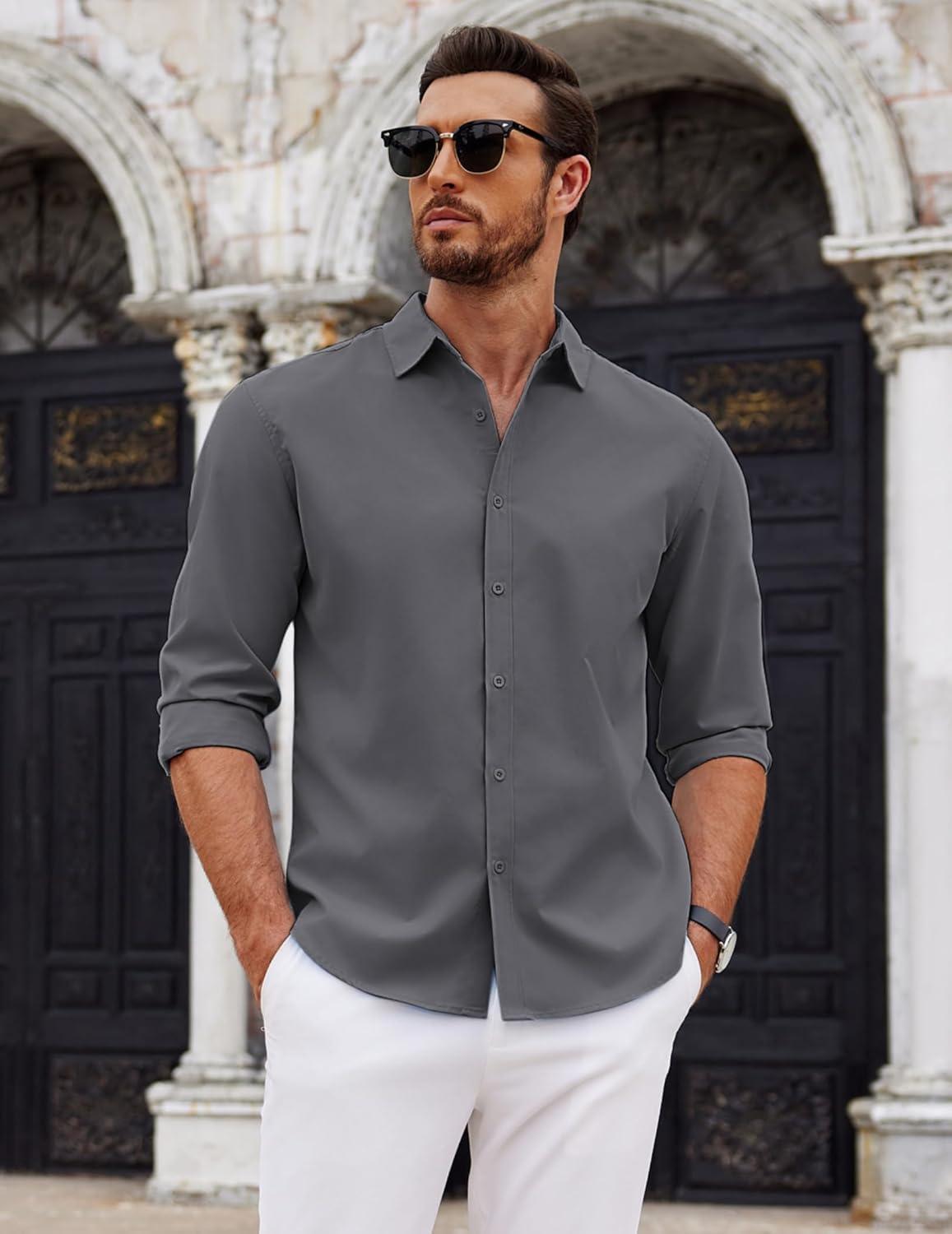 Discover the latest COOFANDY Men’s Long Sleeve Button Down Shirts Casual Untucked Dress Shirt Beach Wedding Shirts(Dark Gray) from and take advantage of our limited-time introductory offer.