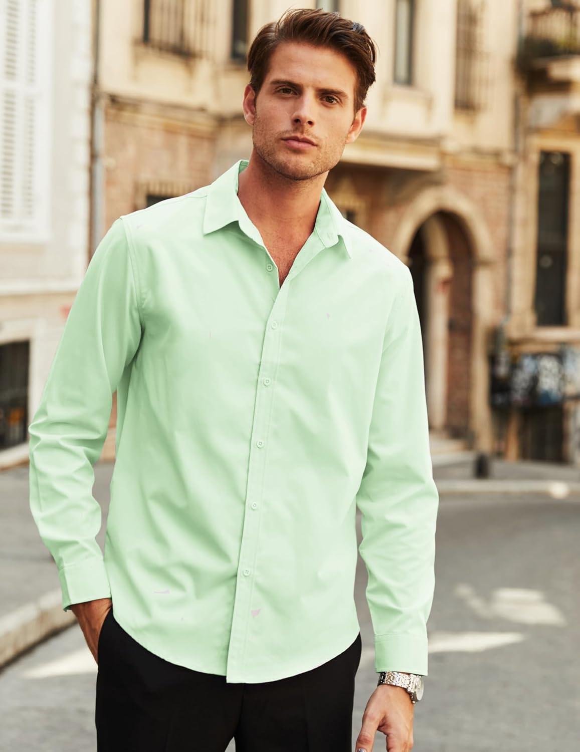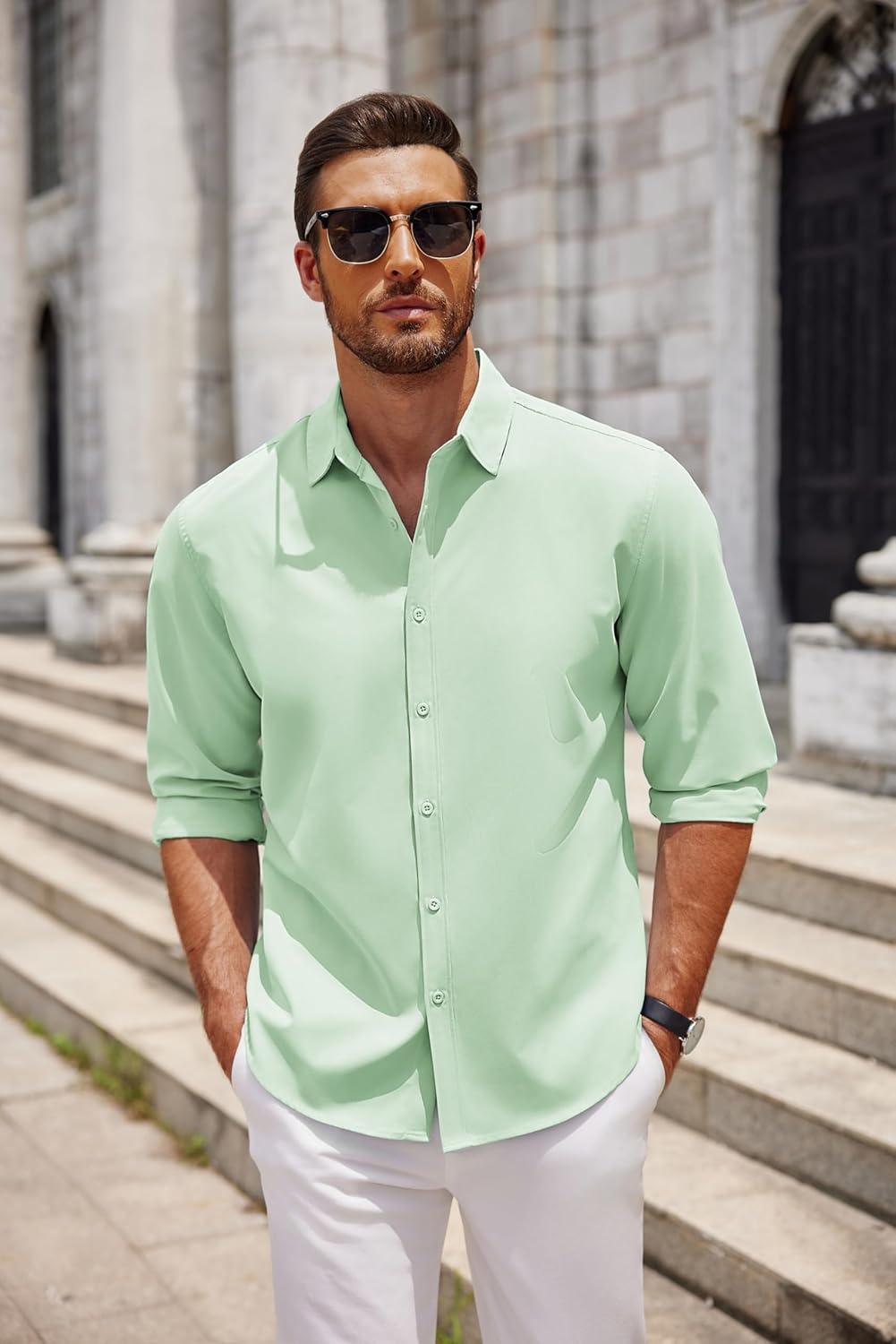 COOFANDY Men's Long Sleeve Button Down Shirts Casual Untucked Dress Shirt Beach Wedding Shirts(Light Green)