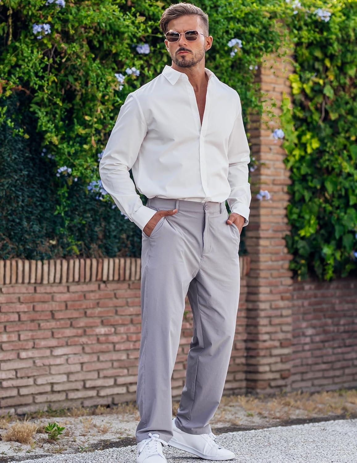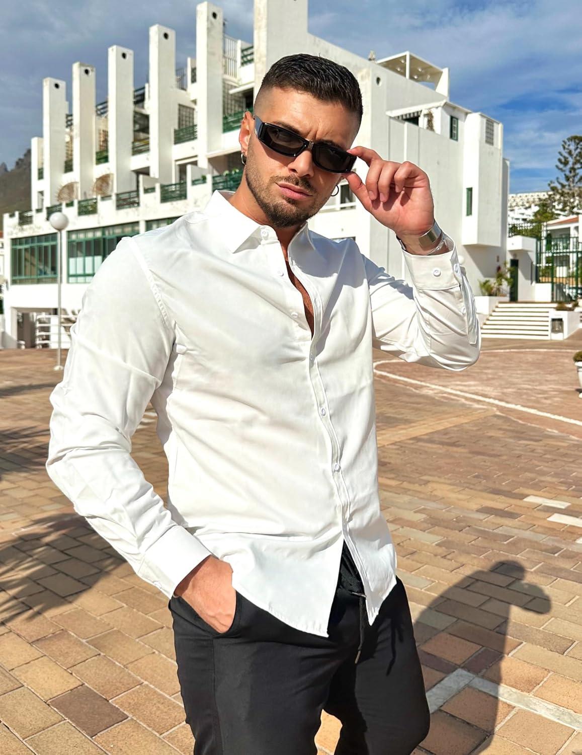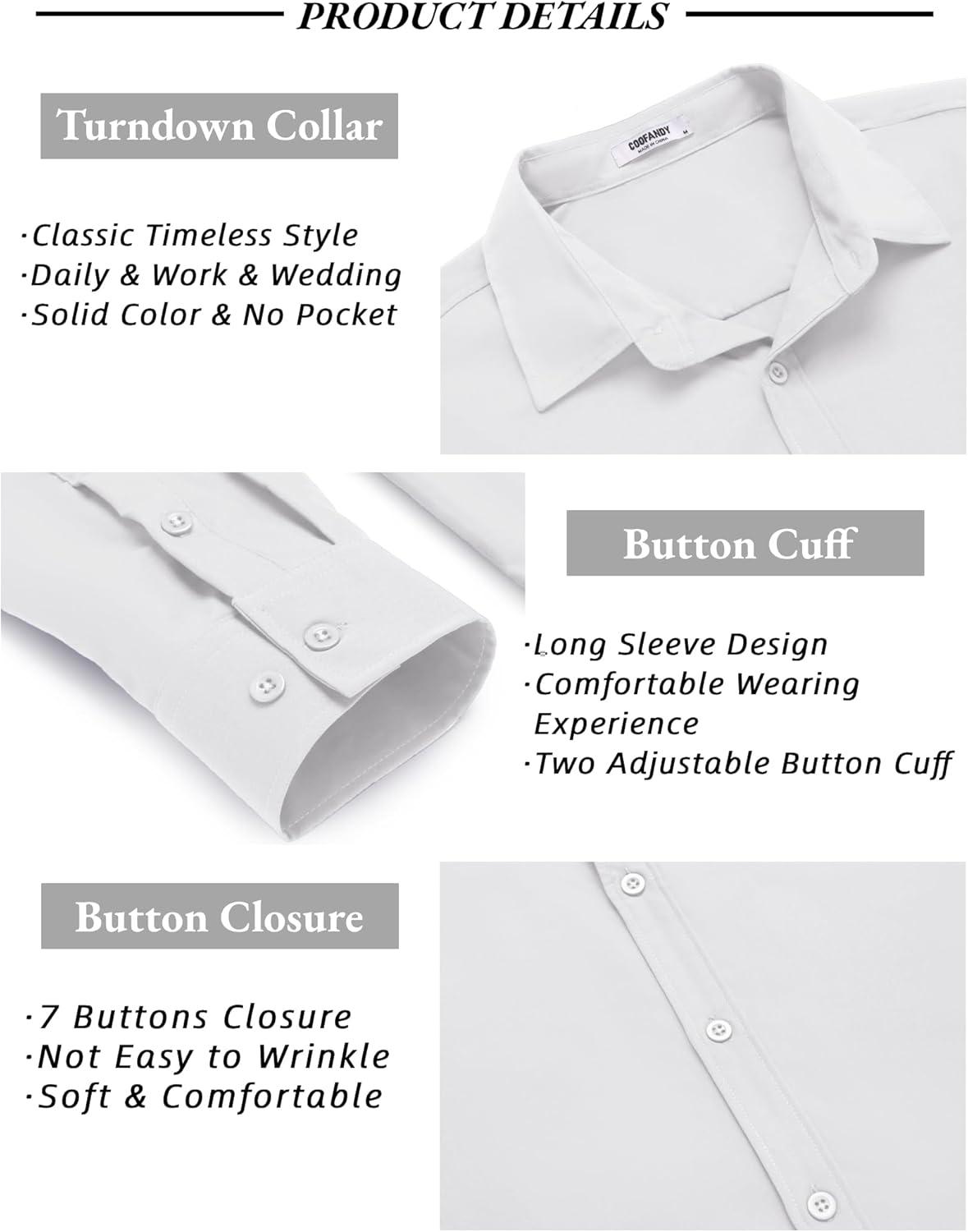 COOFANDY Men’s Long Sleeve Button Down Shirts Casual Untucked Dress Shirt Beach Wedding Shirts(White)