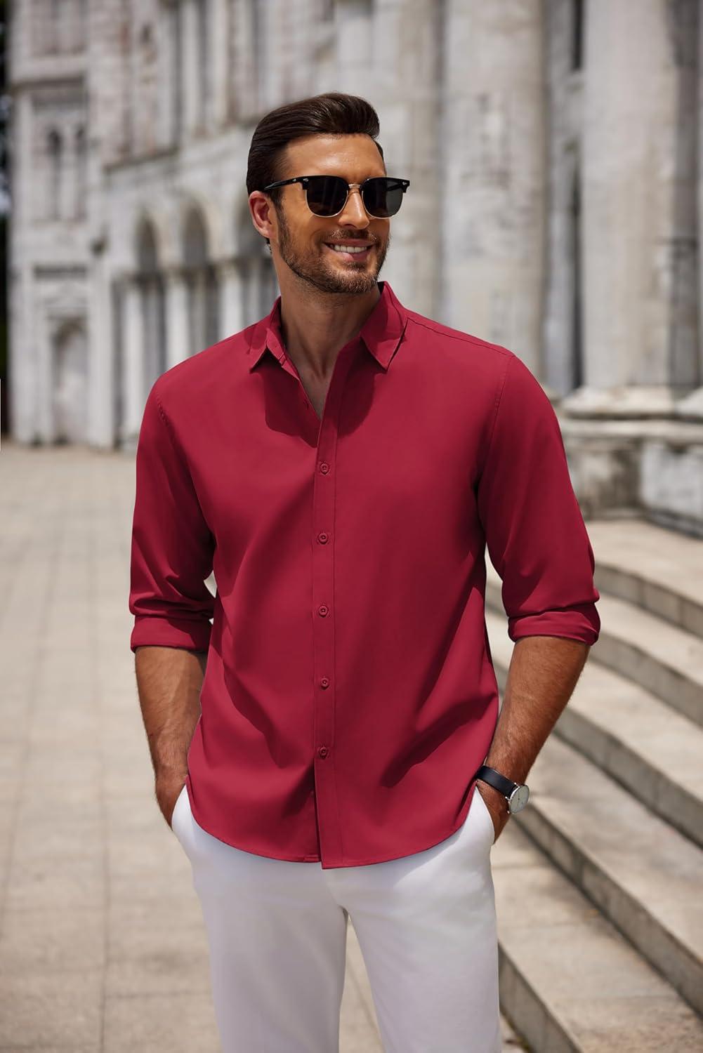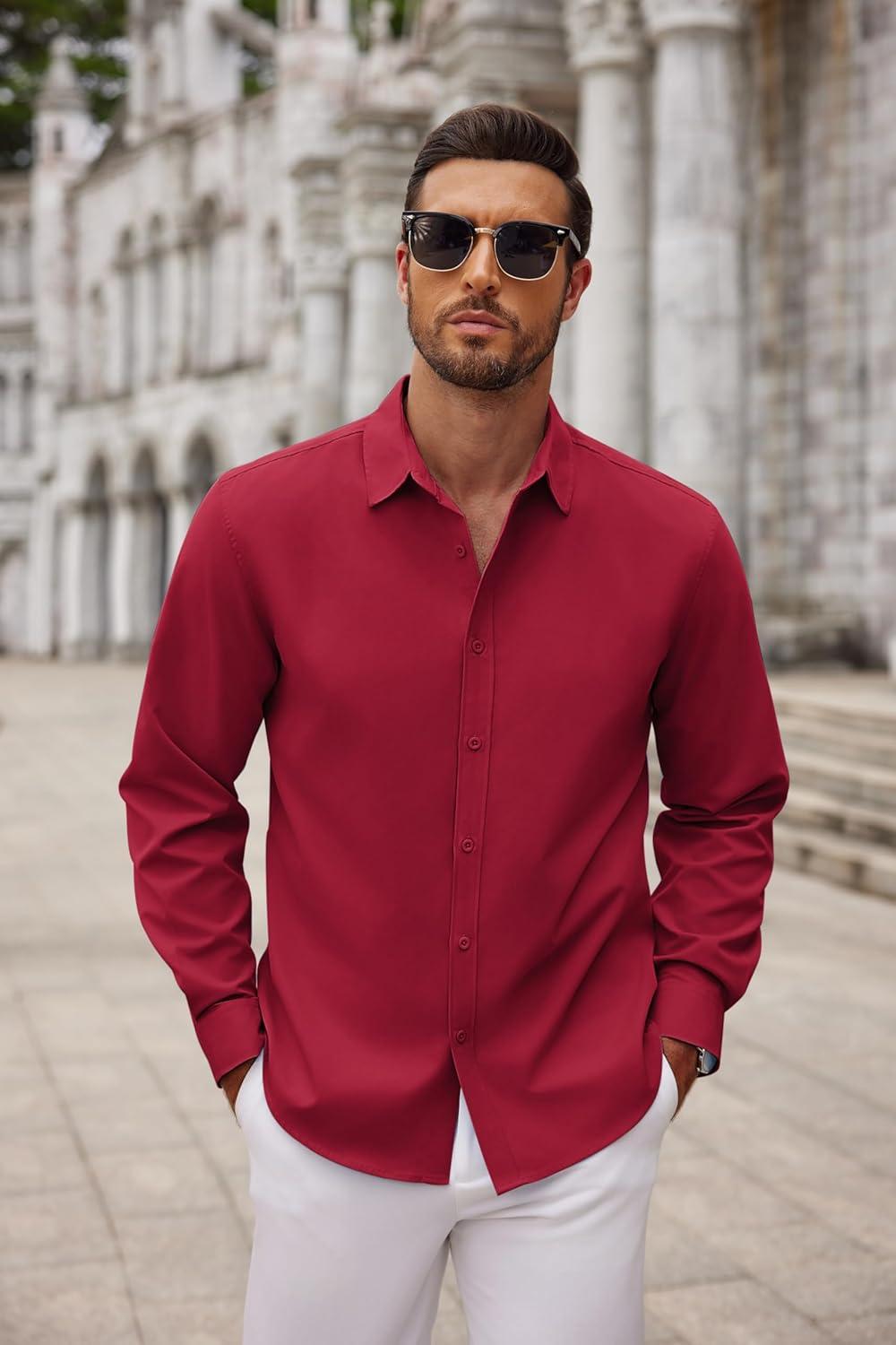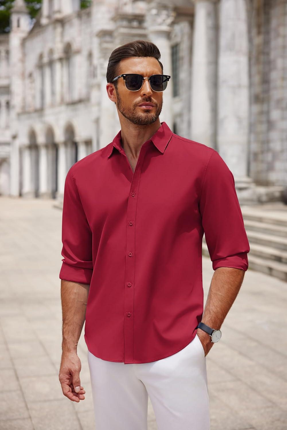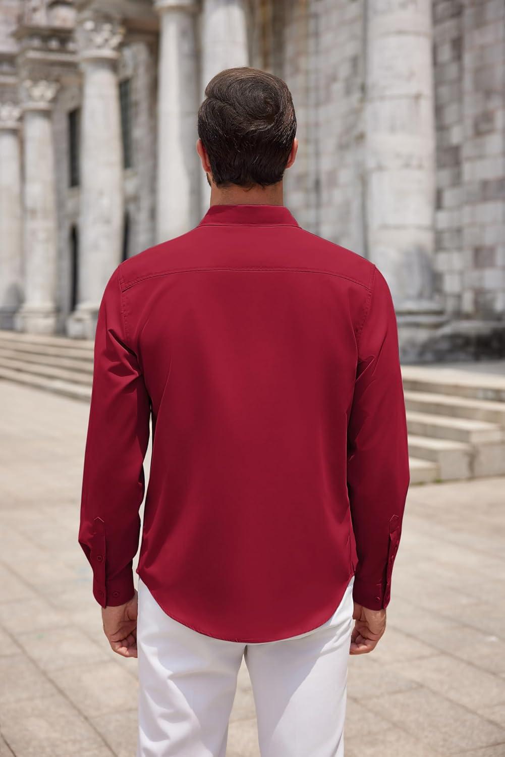 COOFANDY Men's Long Sleeve Button Down Shirts Casual Untucked Dress Shirt Beach Wedding Shirts(Wine Red)