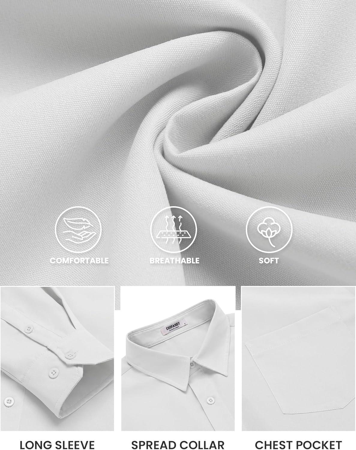 COOFANDY Mens Long Sleeve Button Down Shirts Casual Untucked Shirts for Men Dress Shirts Wedding Shirts(A White)