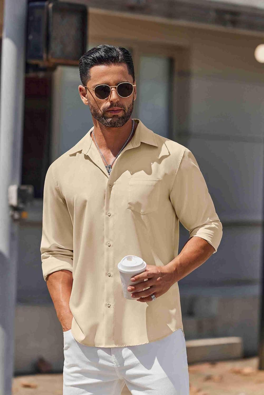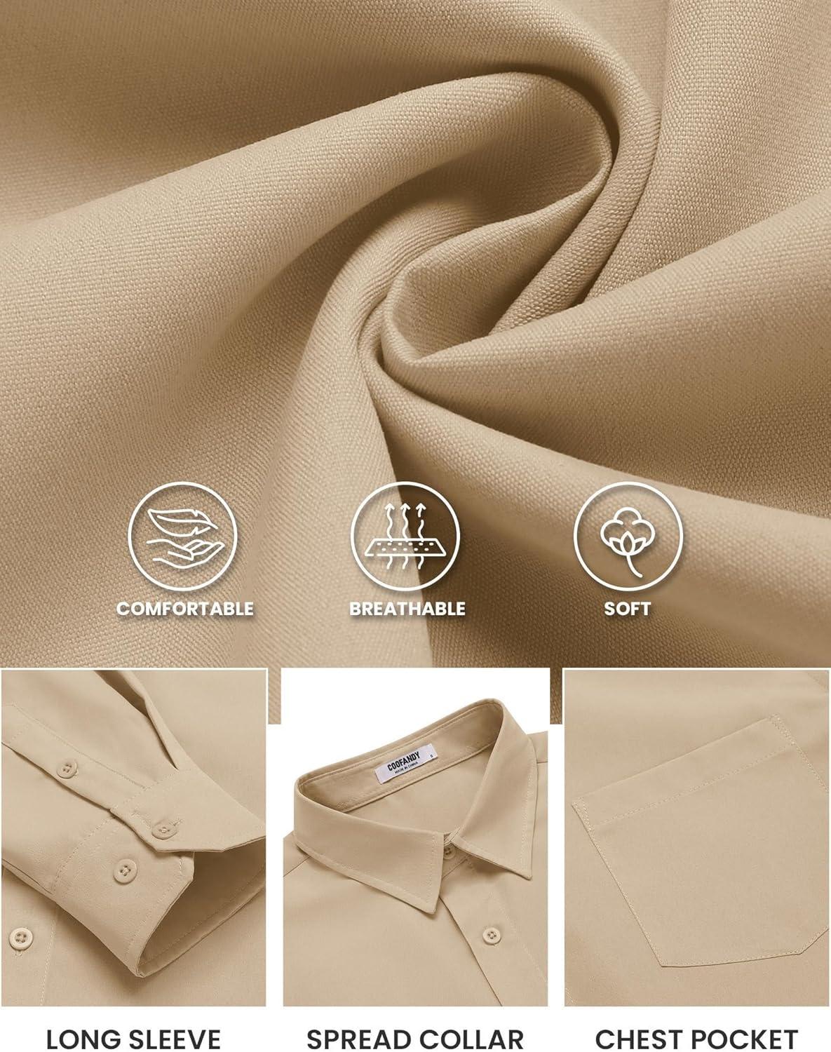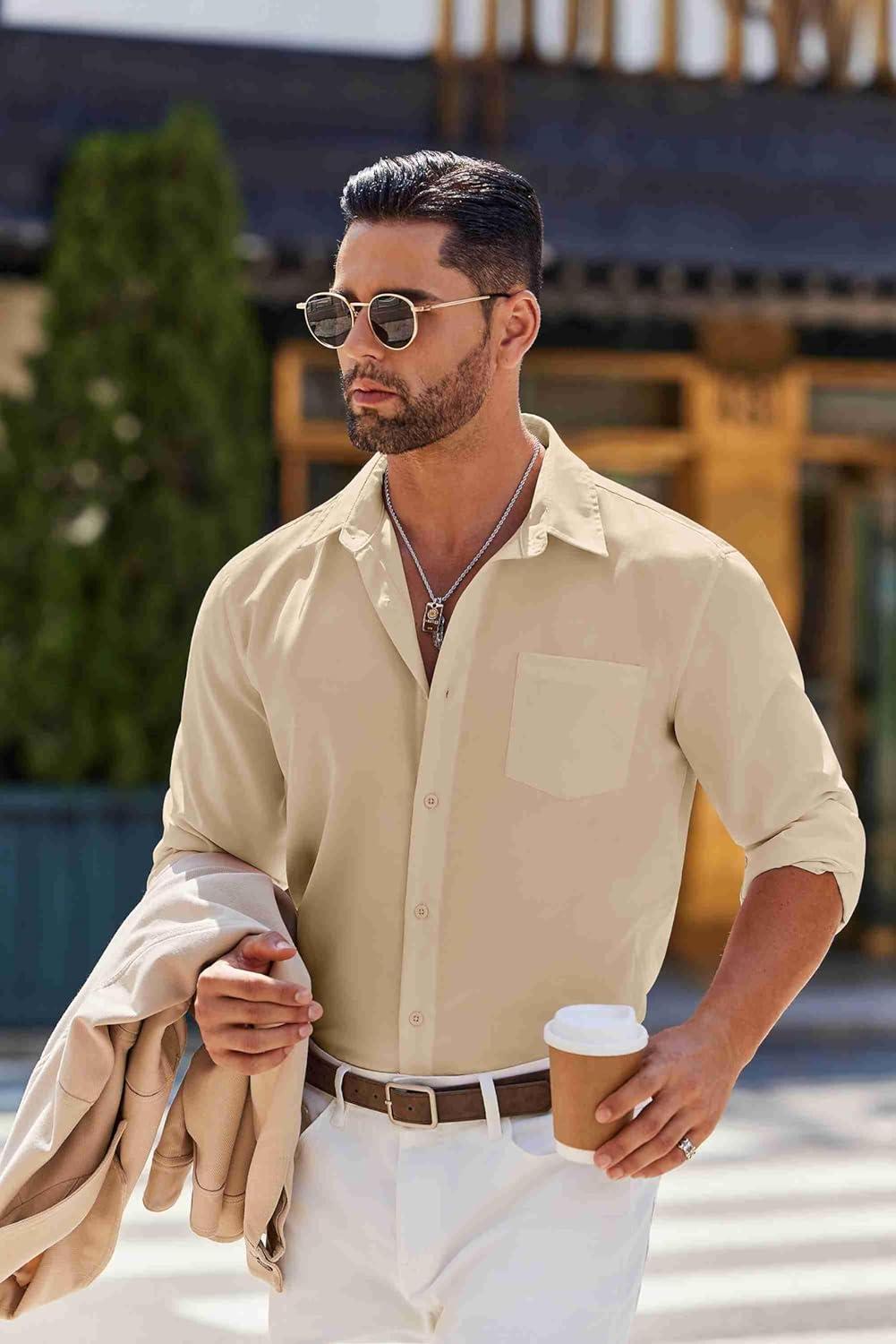 COOFANDY Mens Long Sleeve Button Down Shirts Casual Untucked Shirts for Men Dress Shirts Wedding Shirts(Beige)