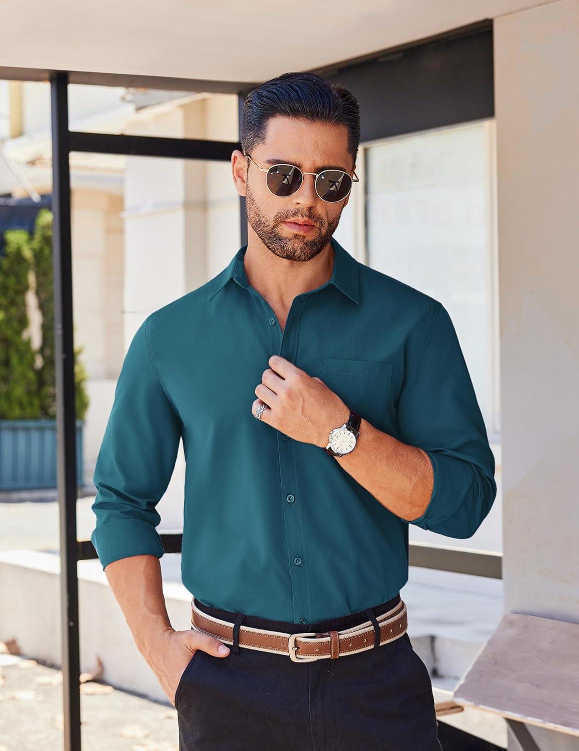 COOFANDY Mens Long Sleeve Button Down Shirts Casual Untucked Shirts for Men Dress Shirts Wedding Shirts(Dark Green)