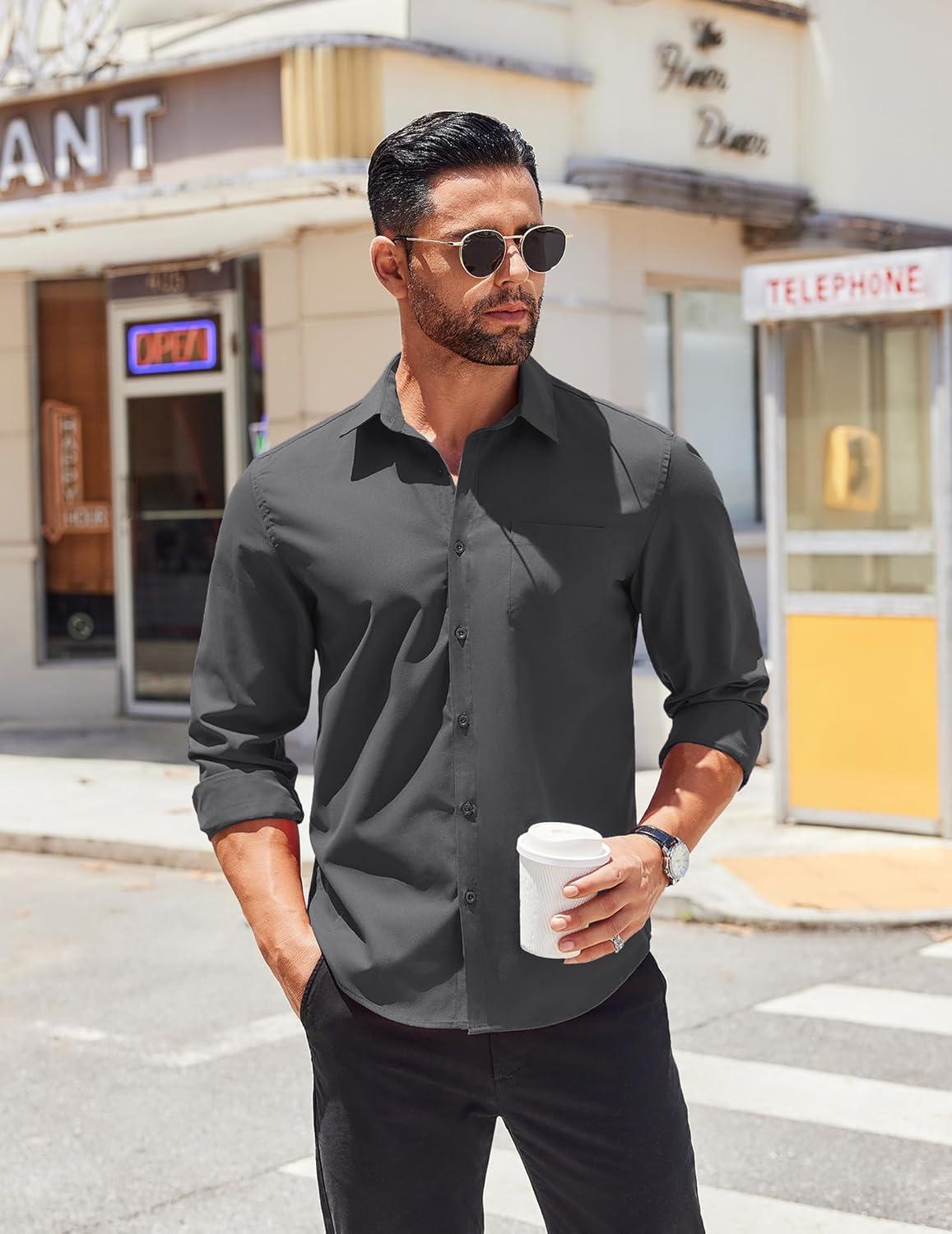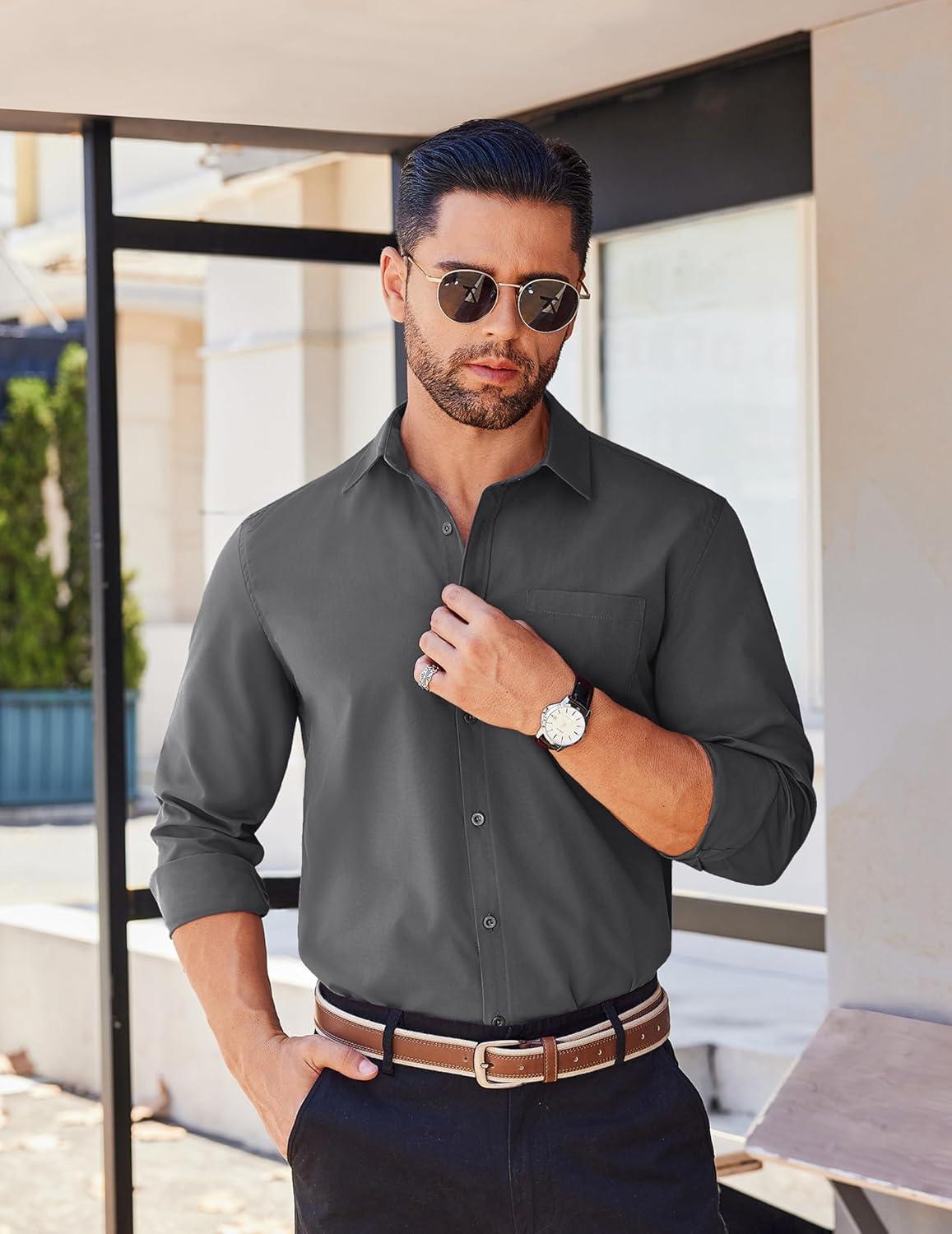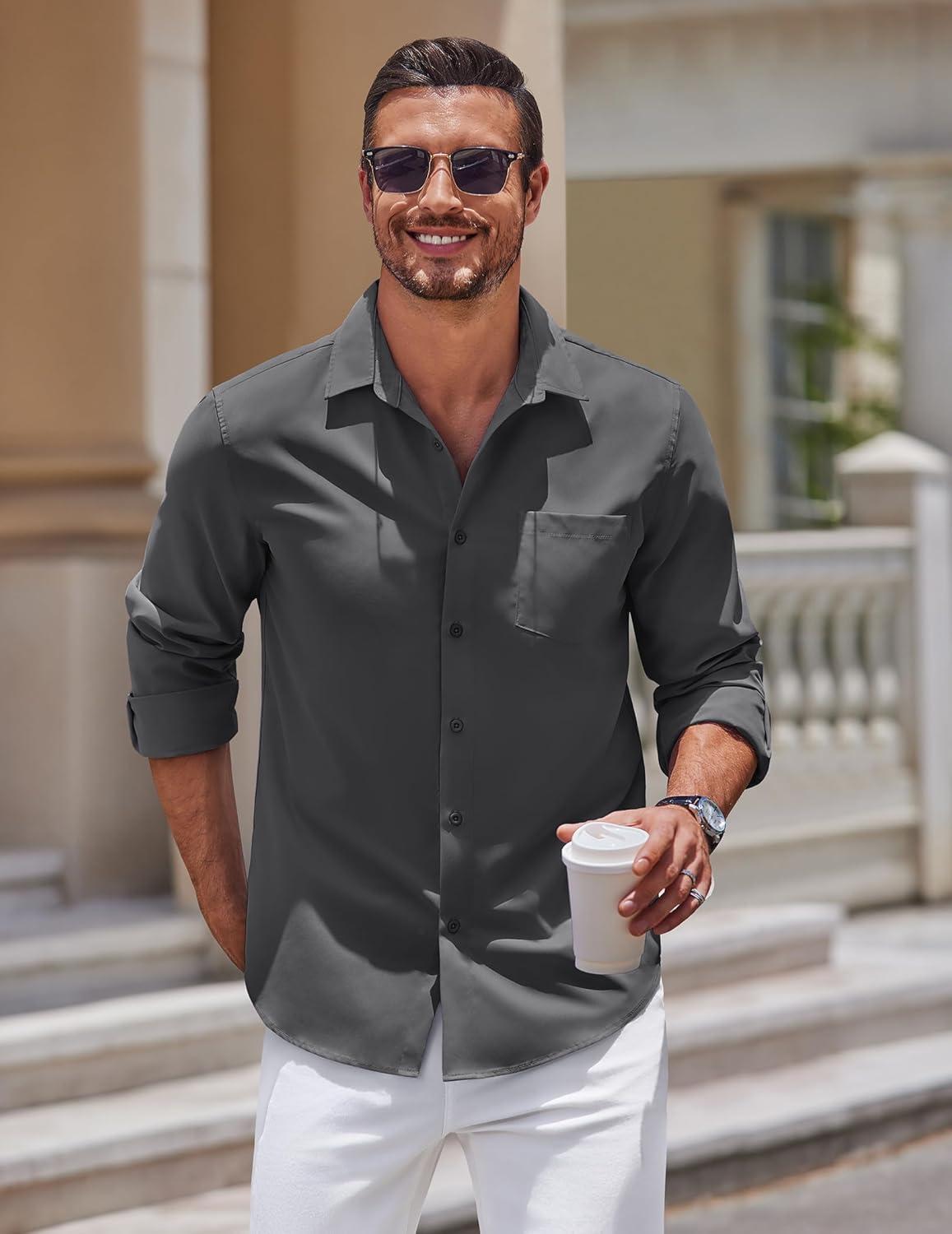 COOFANDY Mens Long Sleeve Button Down Shirts Casual Untucked Shirts for Men Dress Shirts Wedding Shirts(Dark Grey)