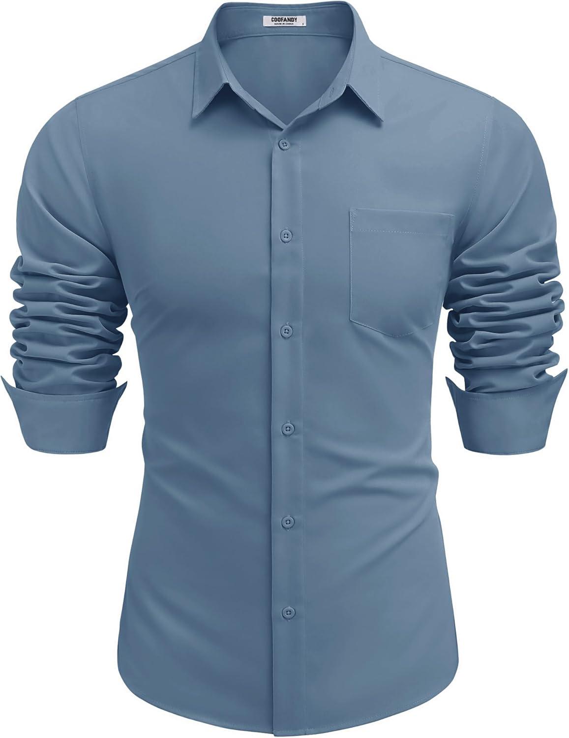Be the first to review “COOFANDY Mens Long Sleeve Button Down Shirts Casual Untucked Shirts for Men Dress Shirts Wedding Shirts(Grey Blue)”