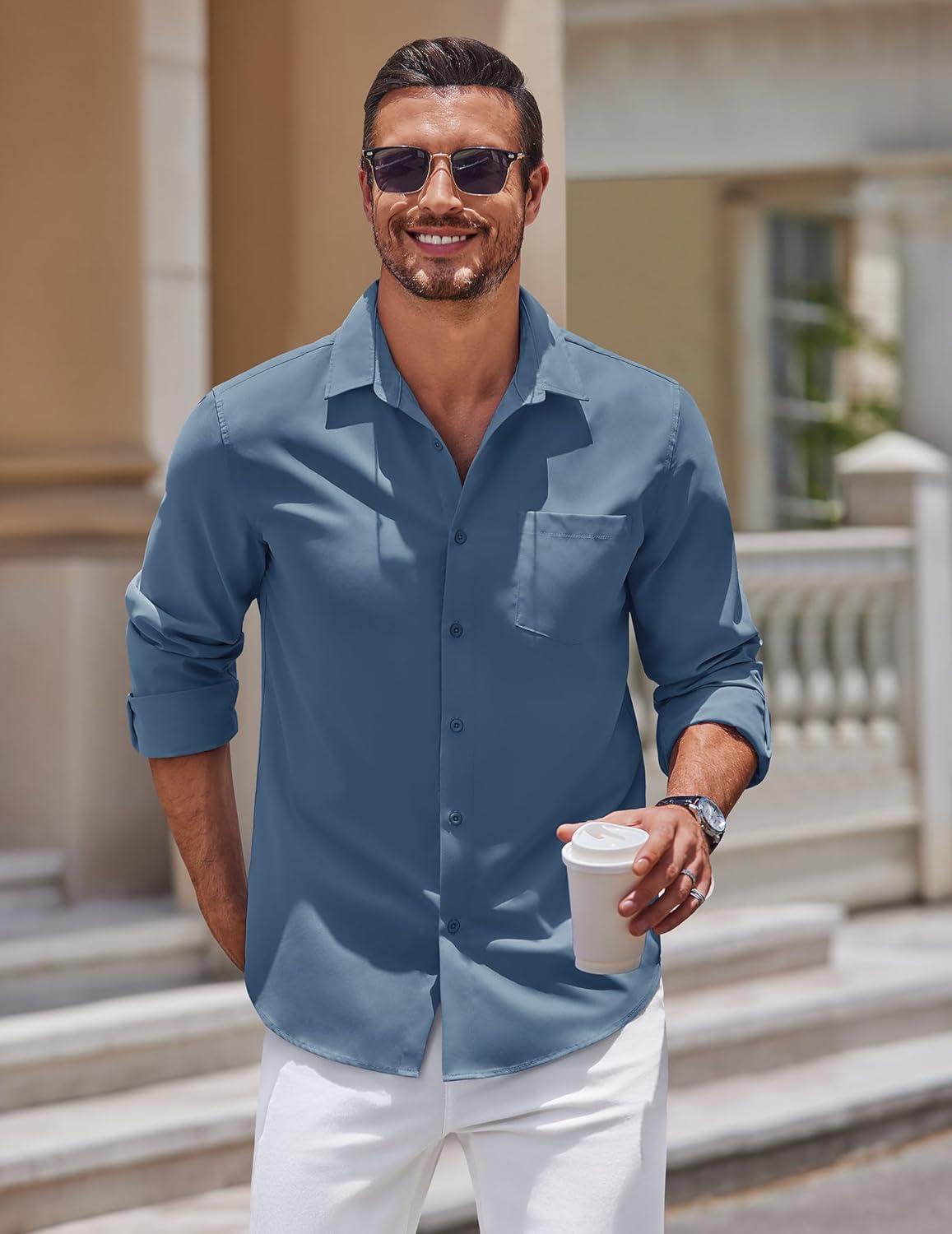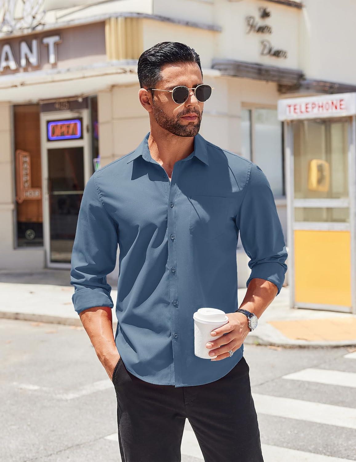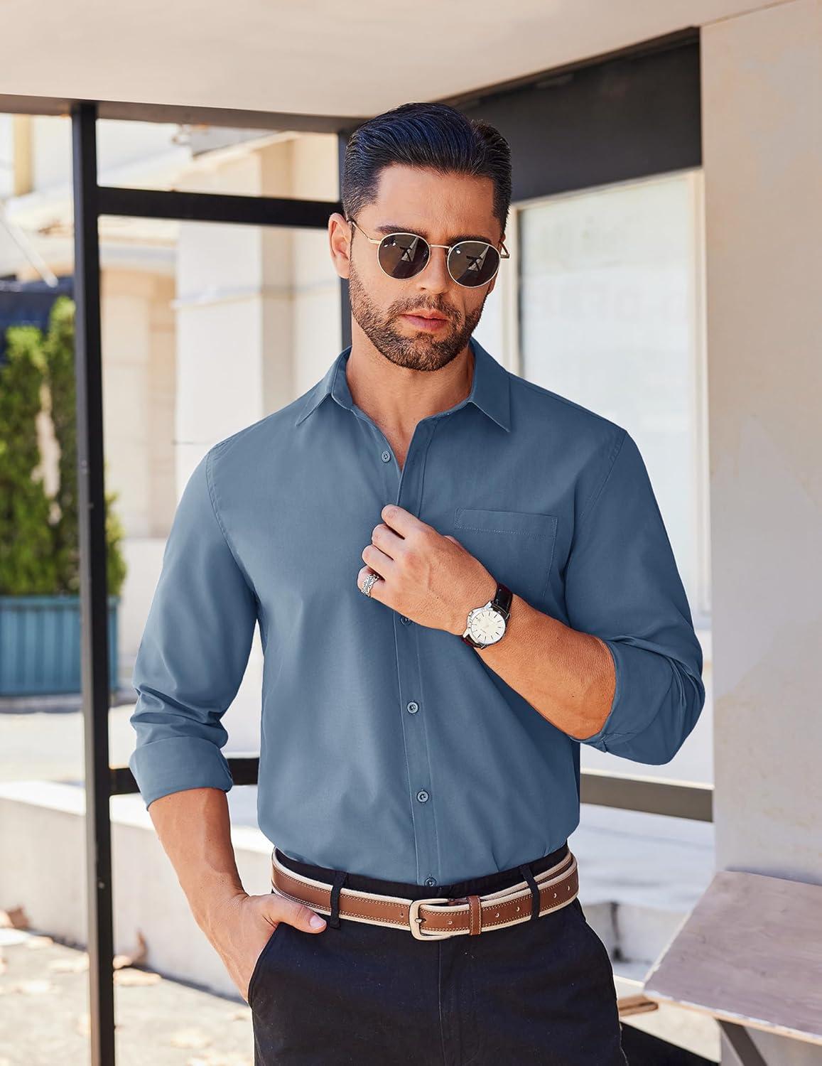 COOFANDY Mens Long Sleeve Button Down Shirts Casual Untucked Shirts for Men Dress Shirts Wedding Shirts(Grey Blue)