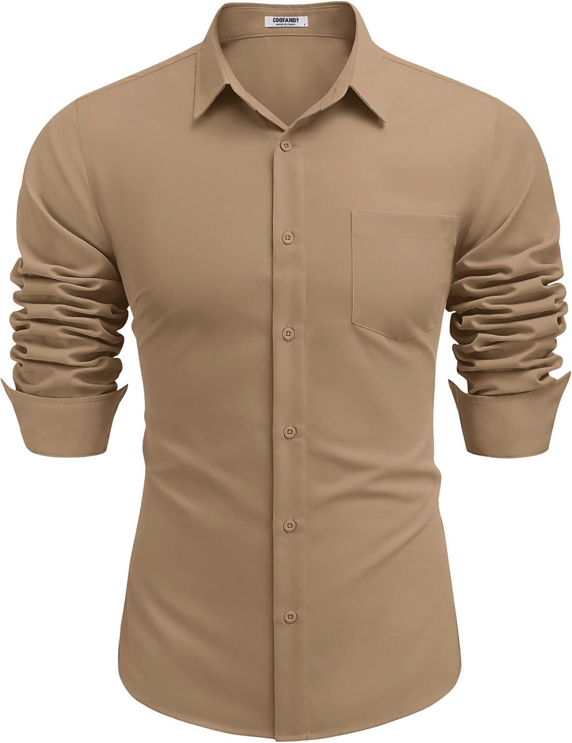 imageCOOFANDY Mens Long Sleeve Button Down Shirts Casual Untucked Shirts for Men Dress Shirts Wedding ShirtsKhaki