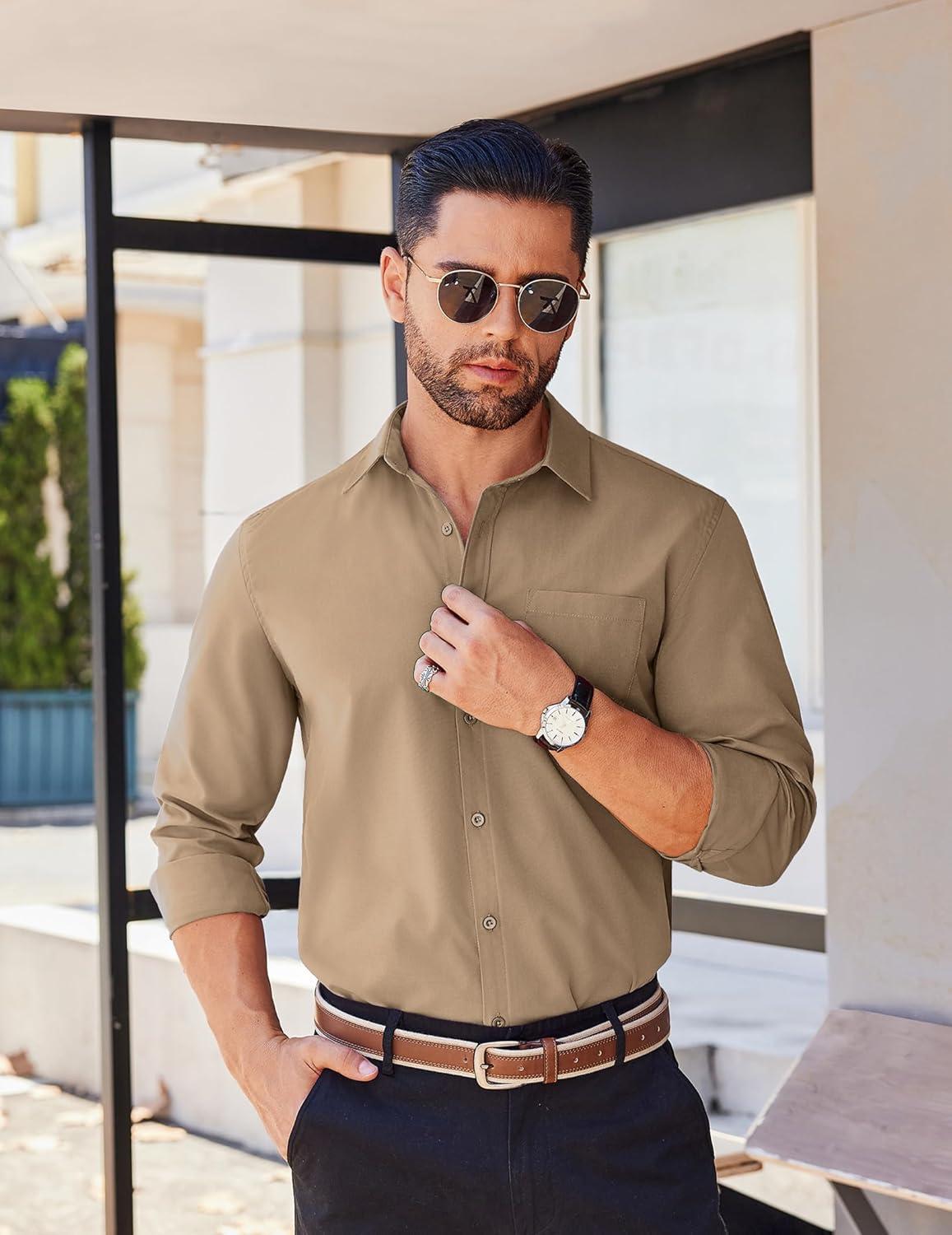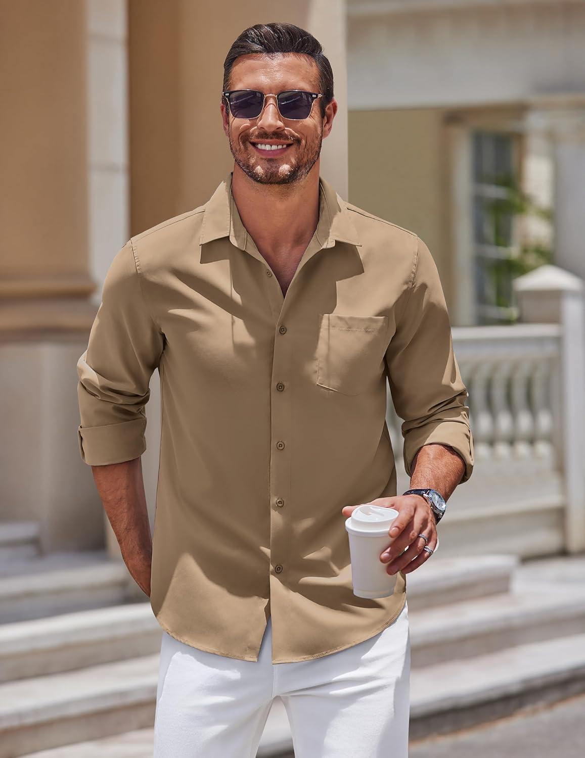 COOFANDY Mens Long Sleeve Button Down Shirts Casual Untucked Shirts for Men Dress Shirts Wedding Shirts(Khaki)