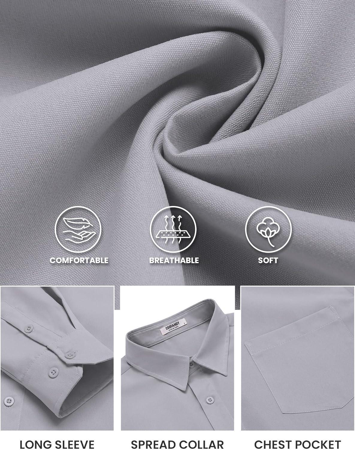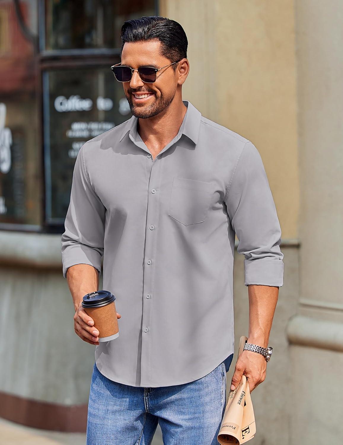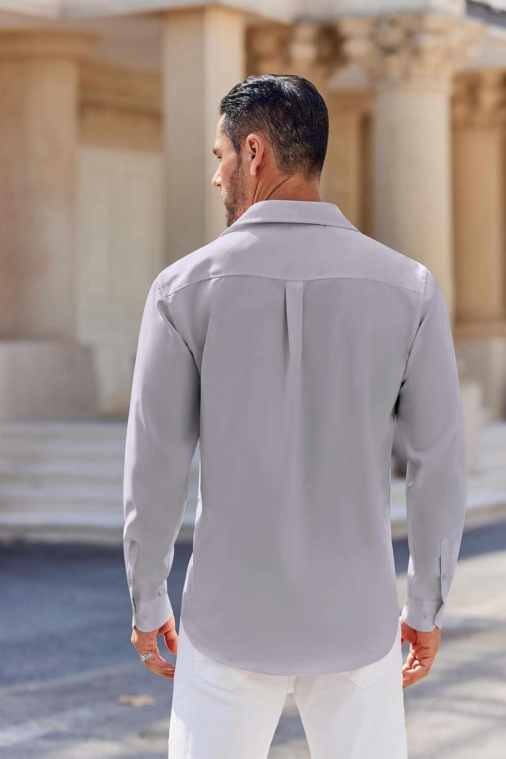 COOFANDY Mens Long Sleeve Button Down Shirts Casual Untucked Shirts for Men Dress Shirts Wedding Shirts(Light Grey)