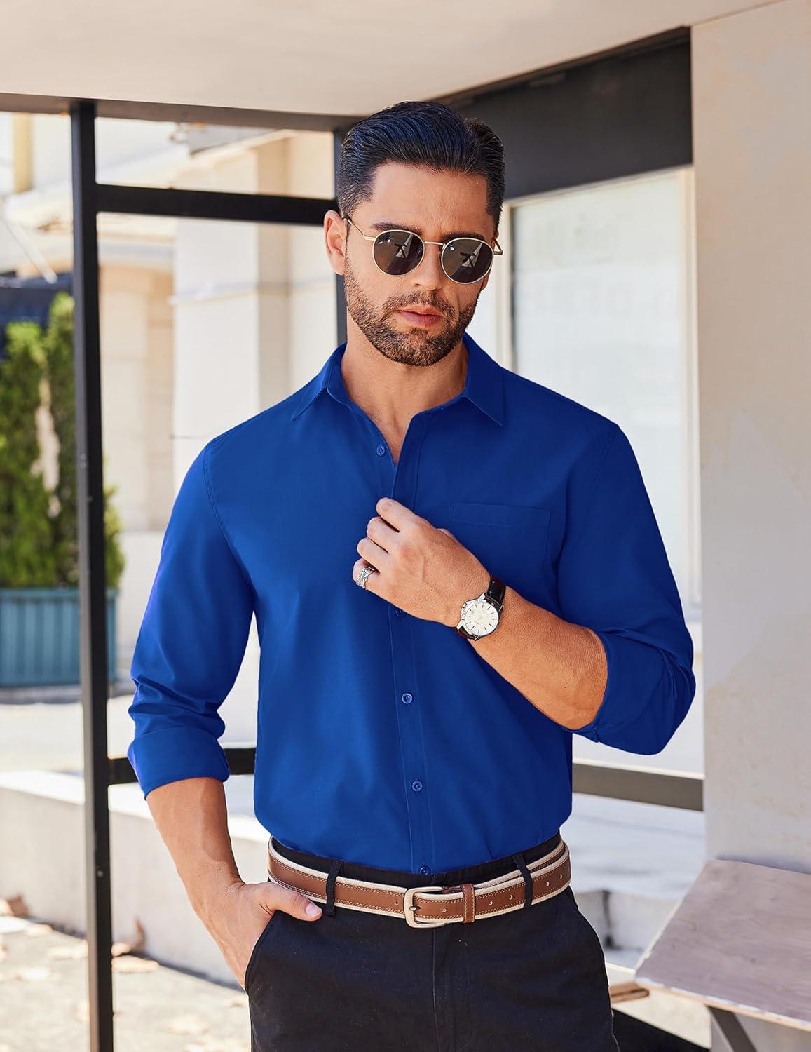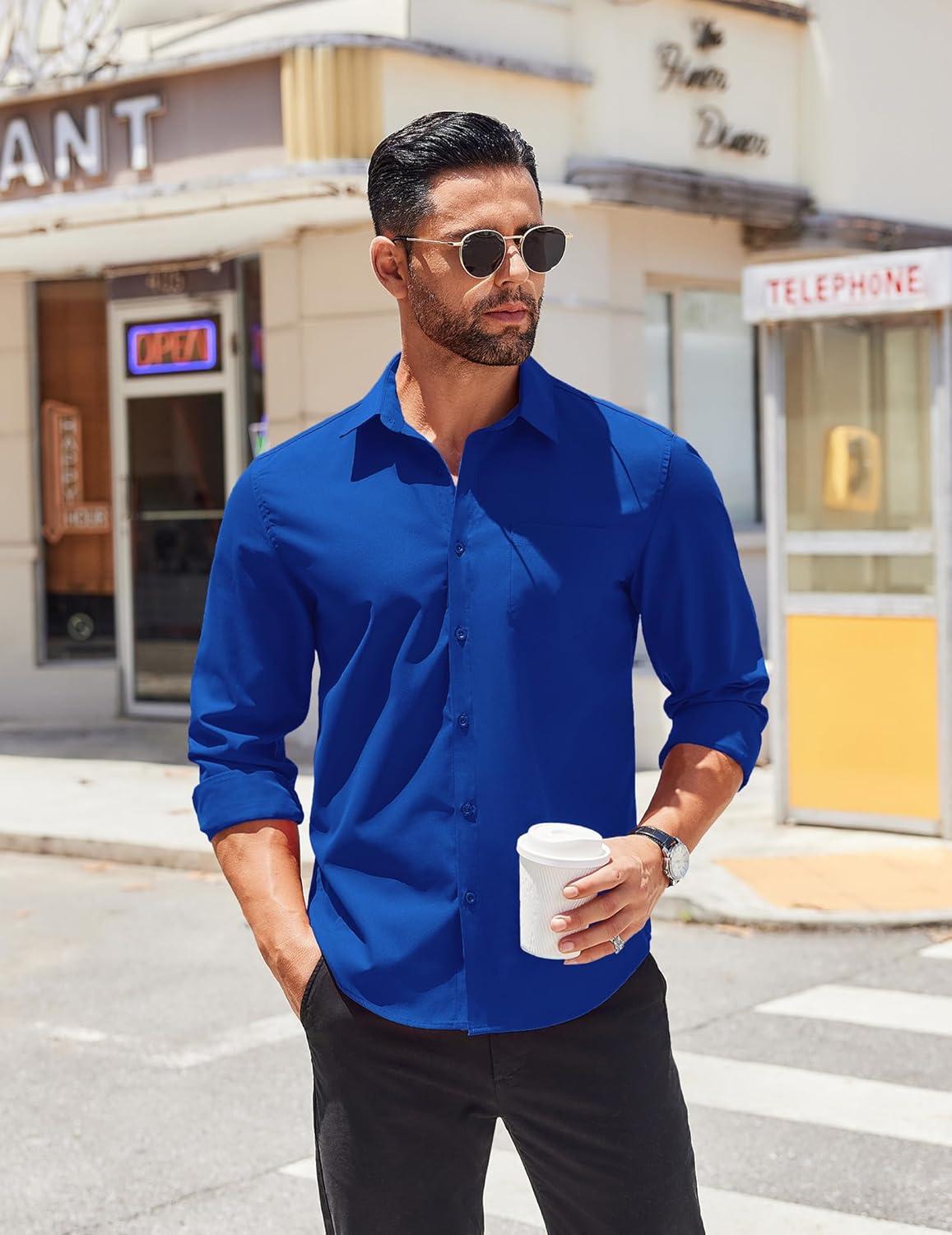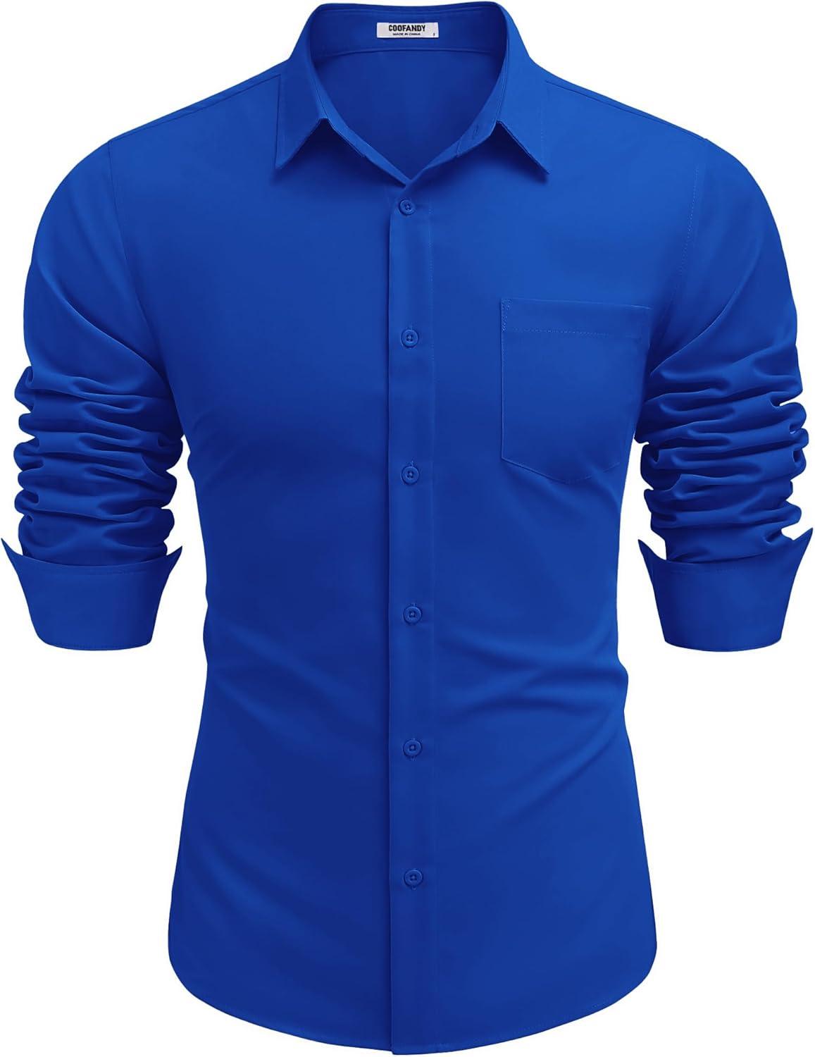 COOFANDY Mens Long Sleeve Button Down Shirts Casual Untucked Shirts for Men Dress Shirts Wedding Shirts(Royal Blue)