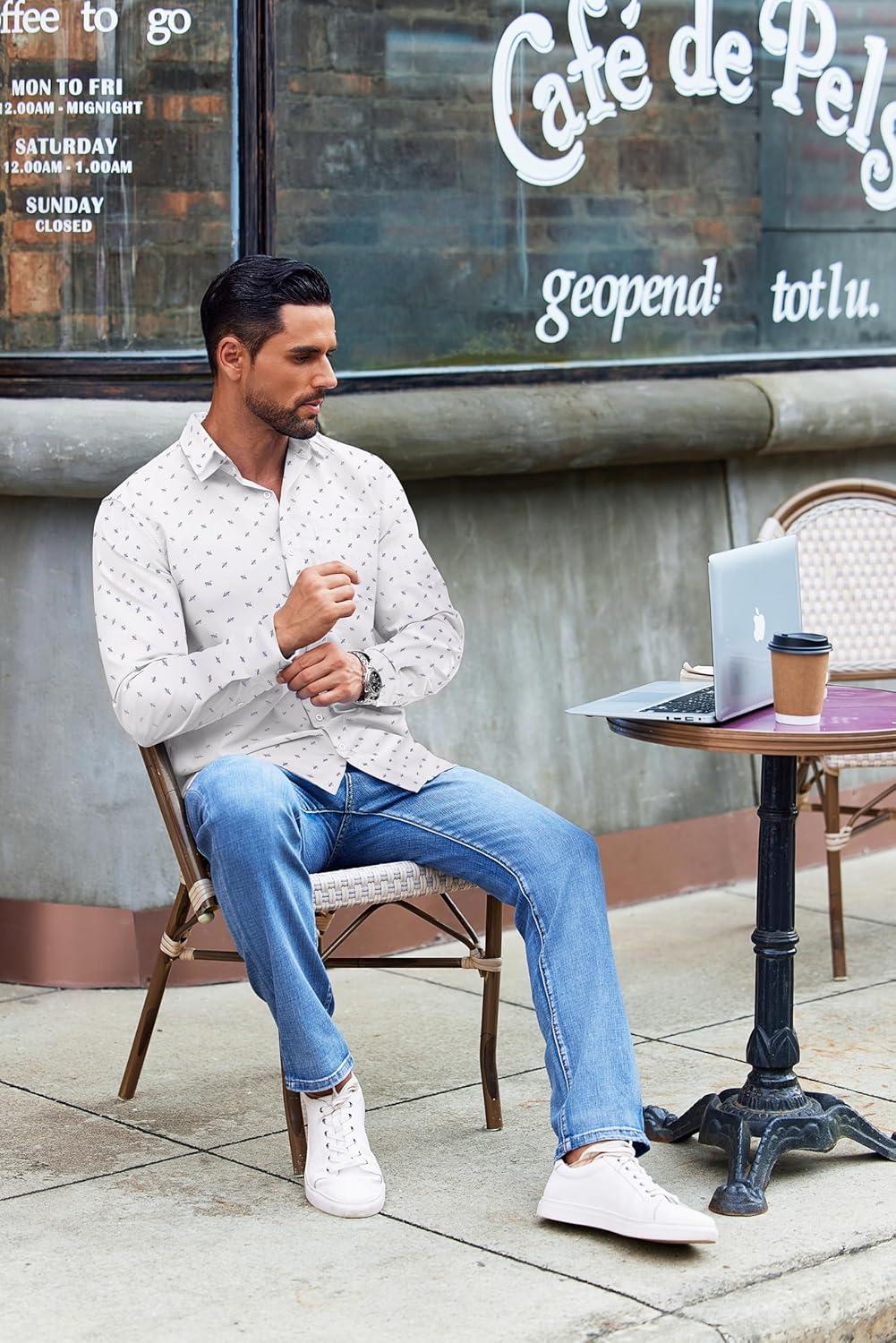 COOFANDY Mens Long Sleeve Button Down Shirts Casual Untucked Shirts for Men Dress Shirts Wedding Shirts(Shark-white)