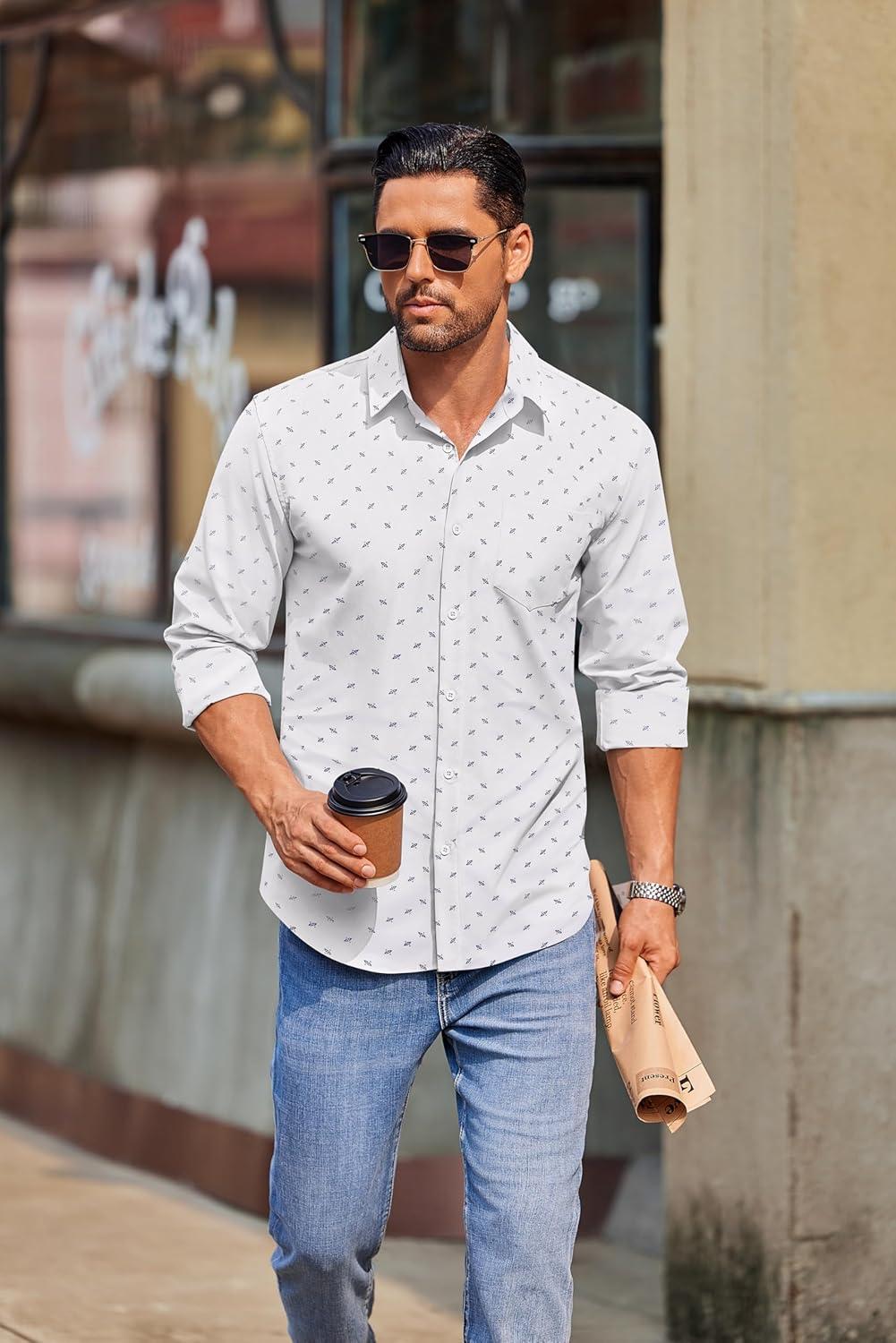 Get more for your money with our exclusive bundle deals on COOFANDY Mens Long Sleeve Button Down Shirts Casual Untucked Shirts for Men Dress Shirts Wedding Shirts(Triangle-white) and accessories.