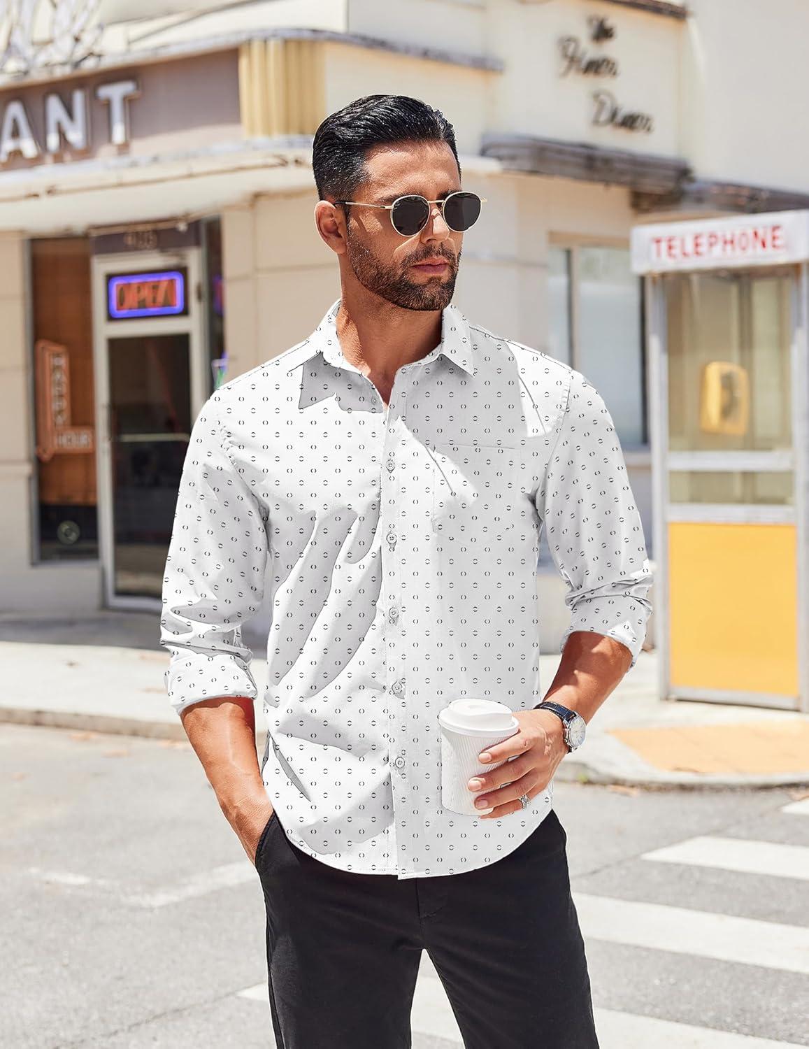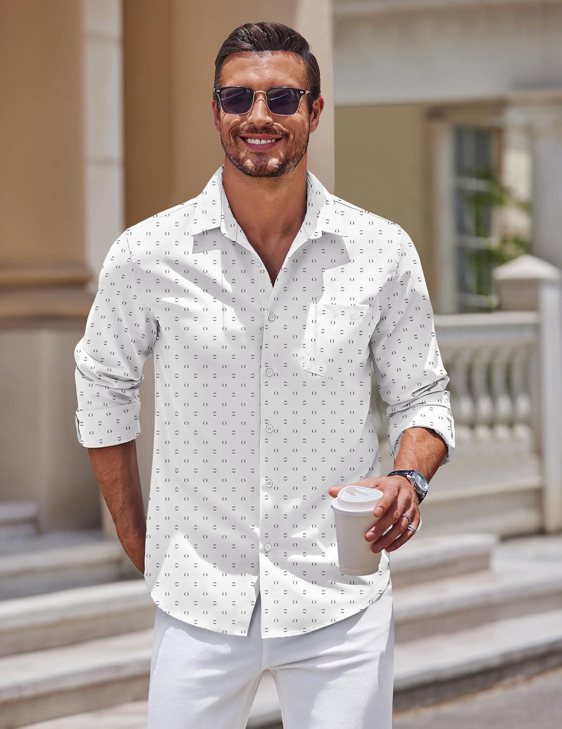 Don’t miss out on our limited-time offer: buy COOFANDY Mens Long Sleeve Button Down Shirts Casual Untucked Shirts for Men Dress Shirts Wedding Shirts(White -Semicircle), get a free {accessory}!