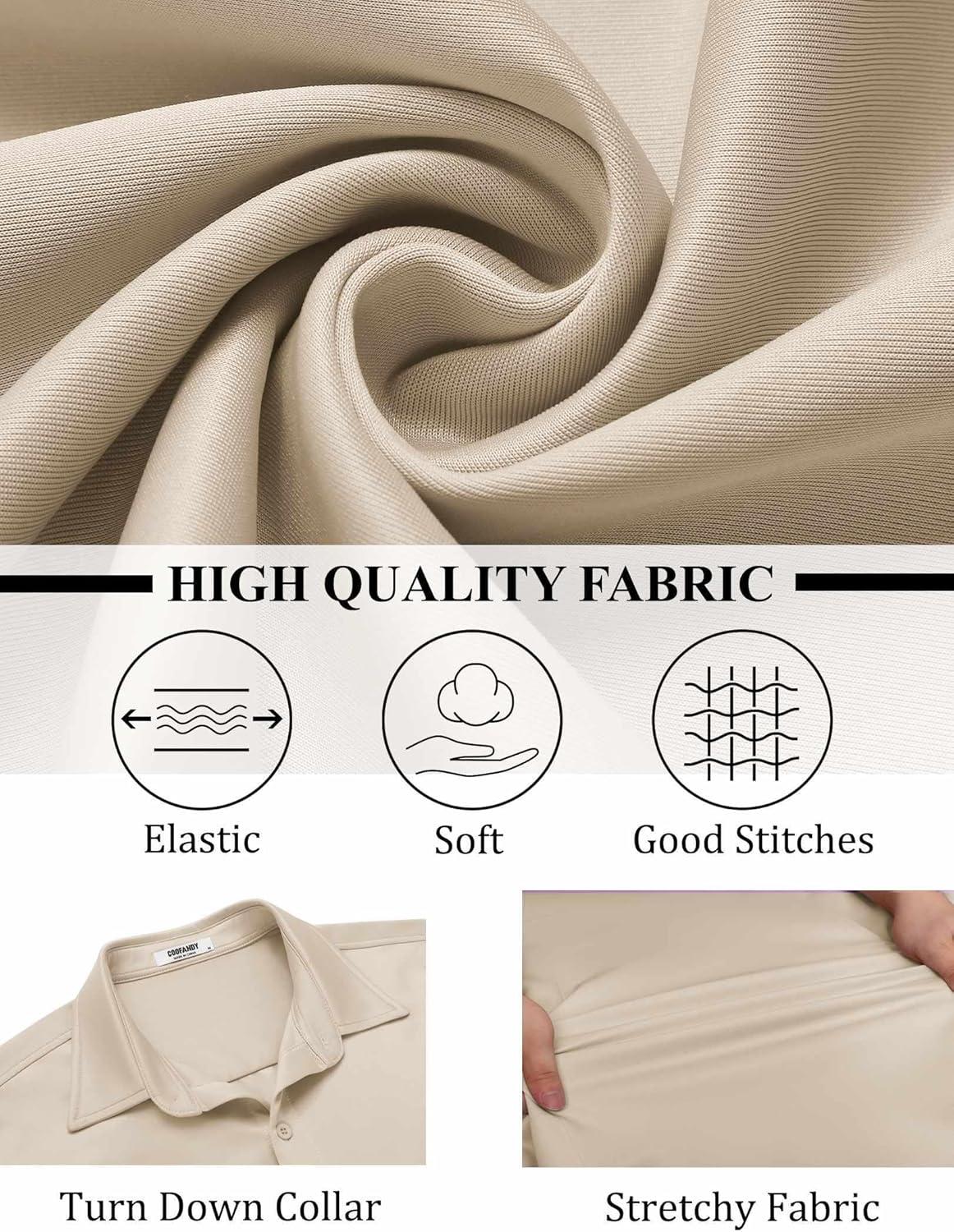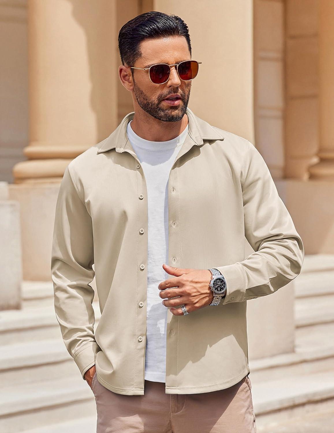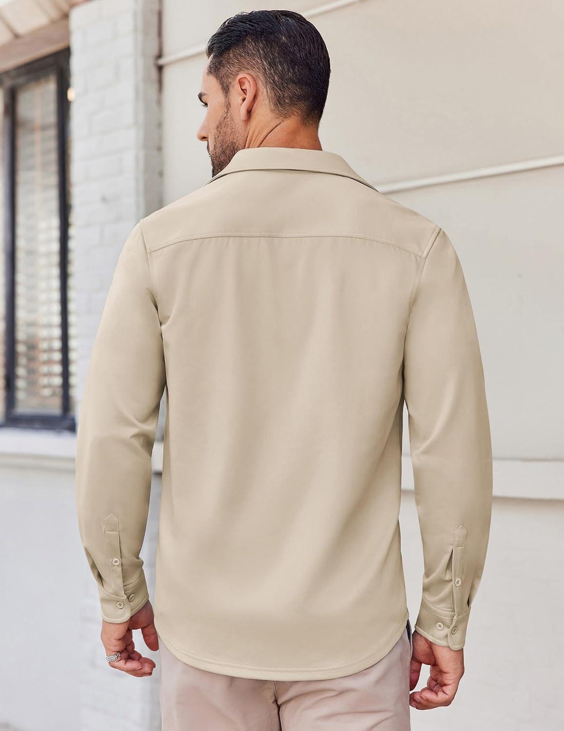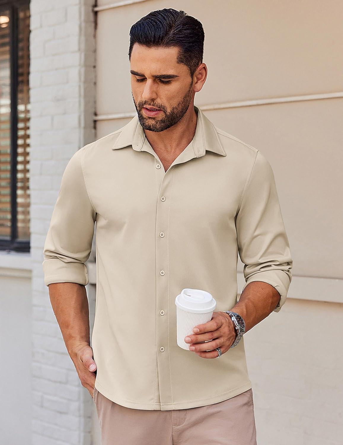 COOFANDY Mens Long Sleeve Button Down Shirts Casual Untucked Shirts Stretch Shirts(Khaki)