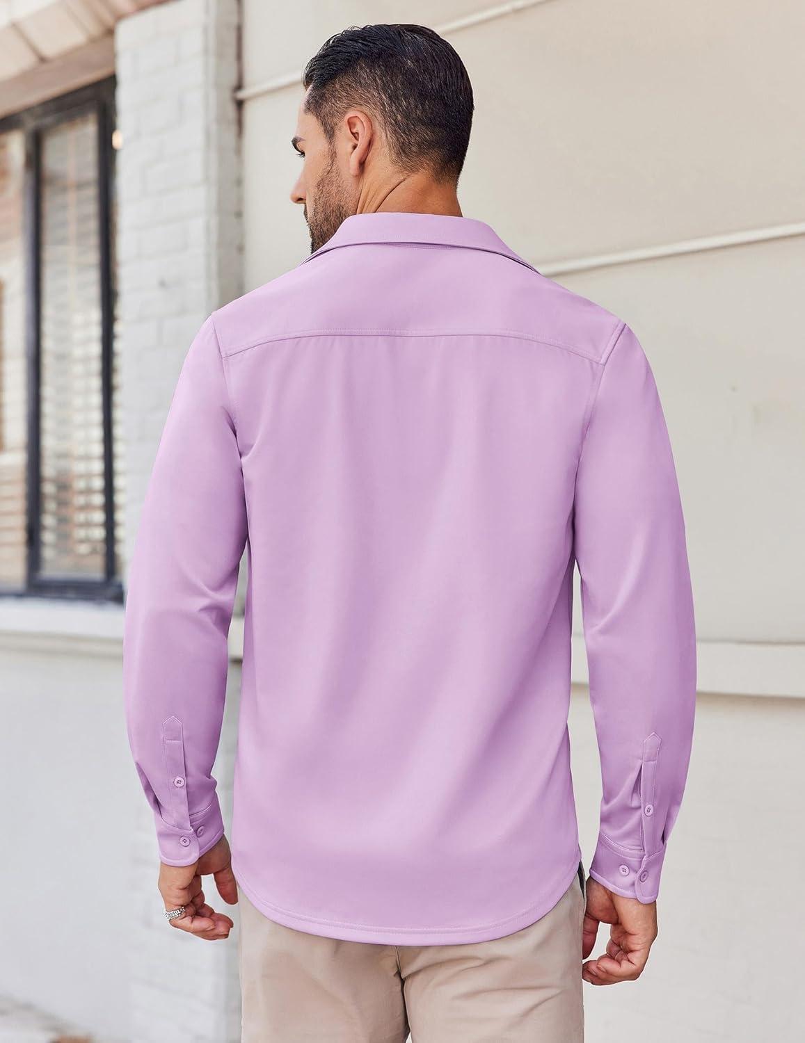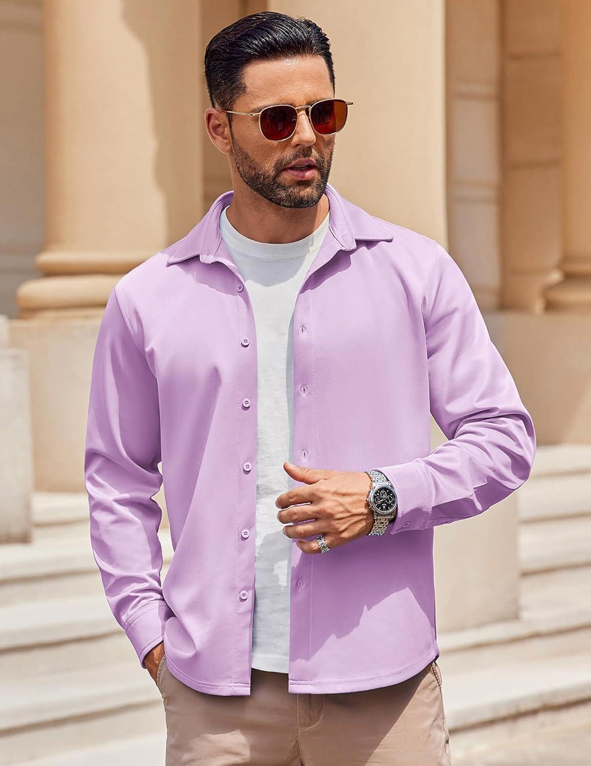 COOFANDY Mens Long Sleeve Button Down Shirts Casual Untucked Shirts Stretch Shirts(Light Purple)