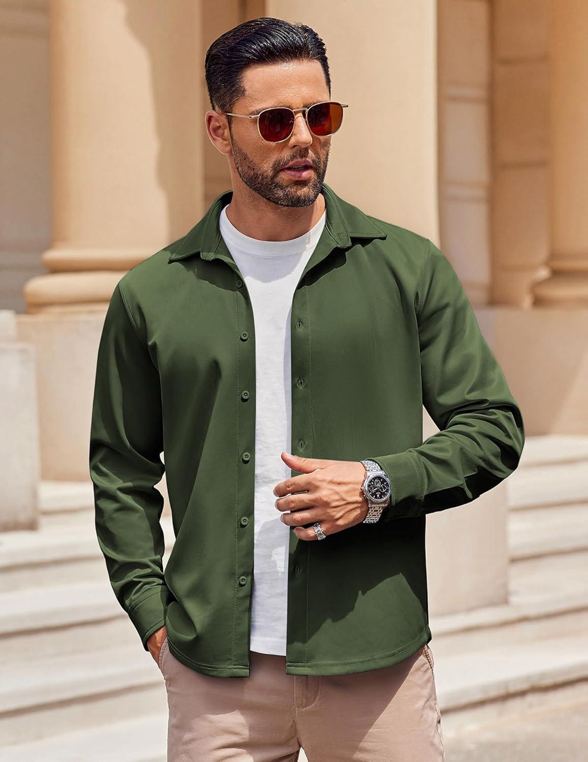 COOFANDY Mens Long Sleeve Button Down Shirts Casual Untucked Shirts Stretch Shirts(Olive Green)