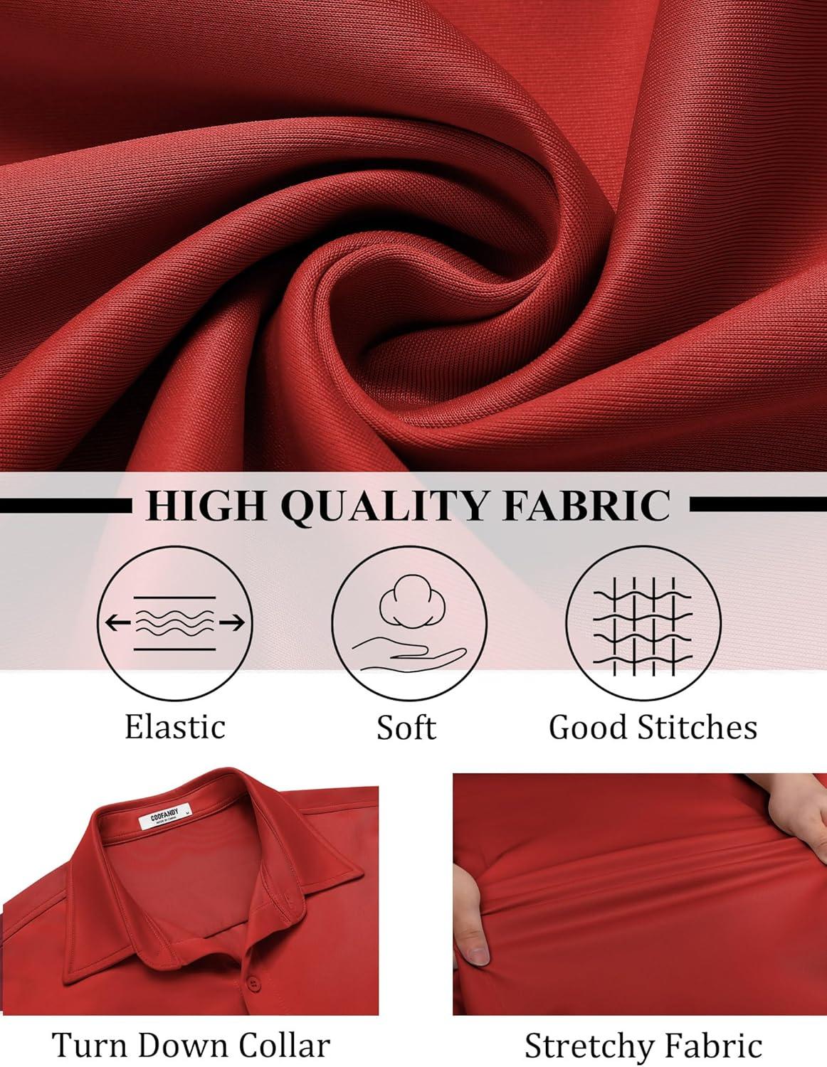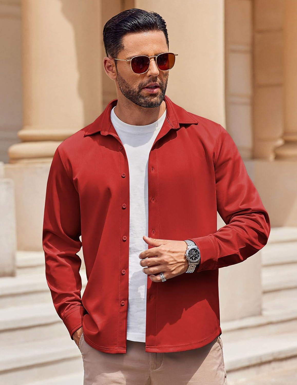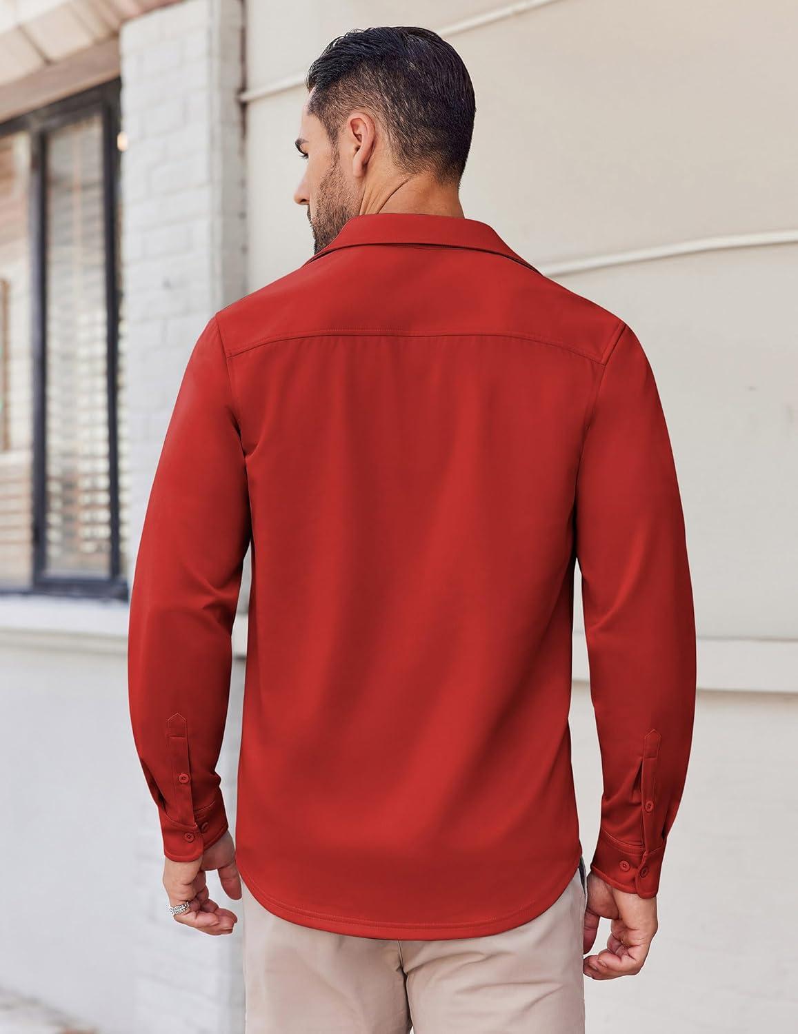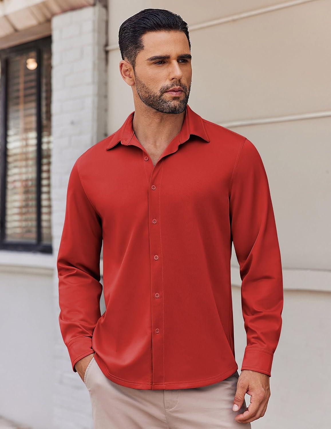 COOFANDY Mens Long Sleeve Button Down Shirts Casual Untucked Shirts Stretch Shirts(Red)